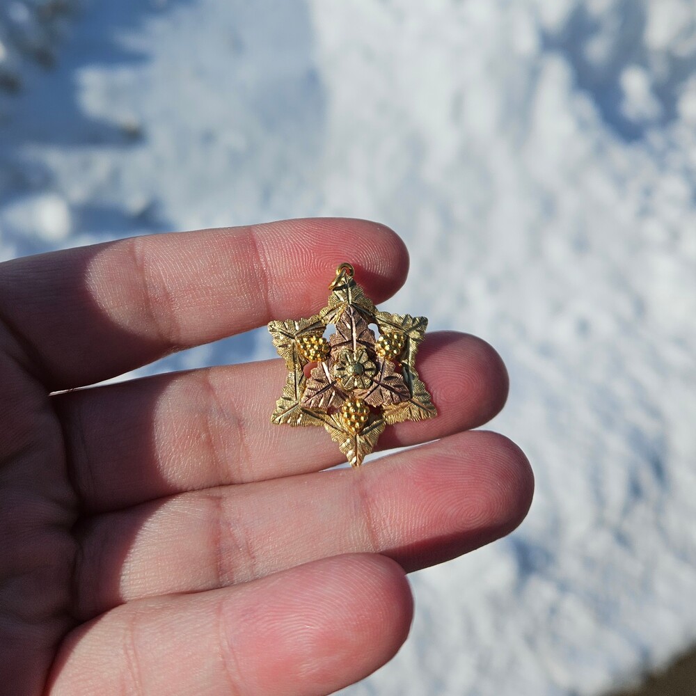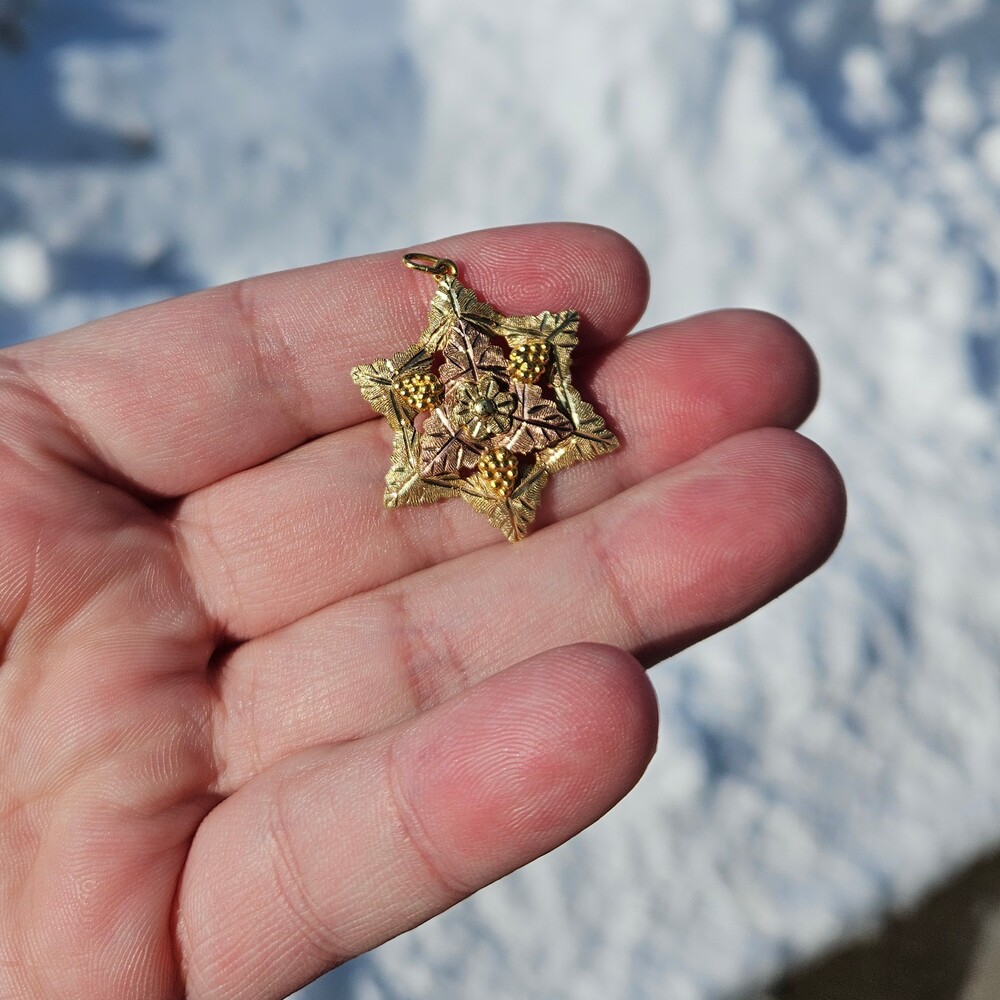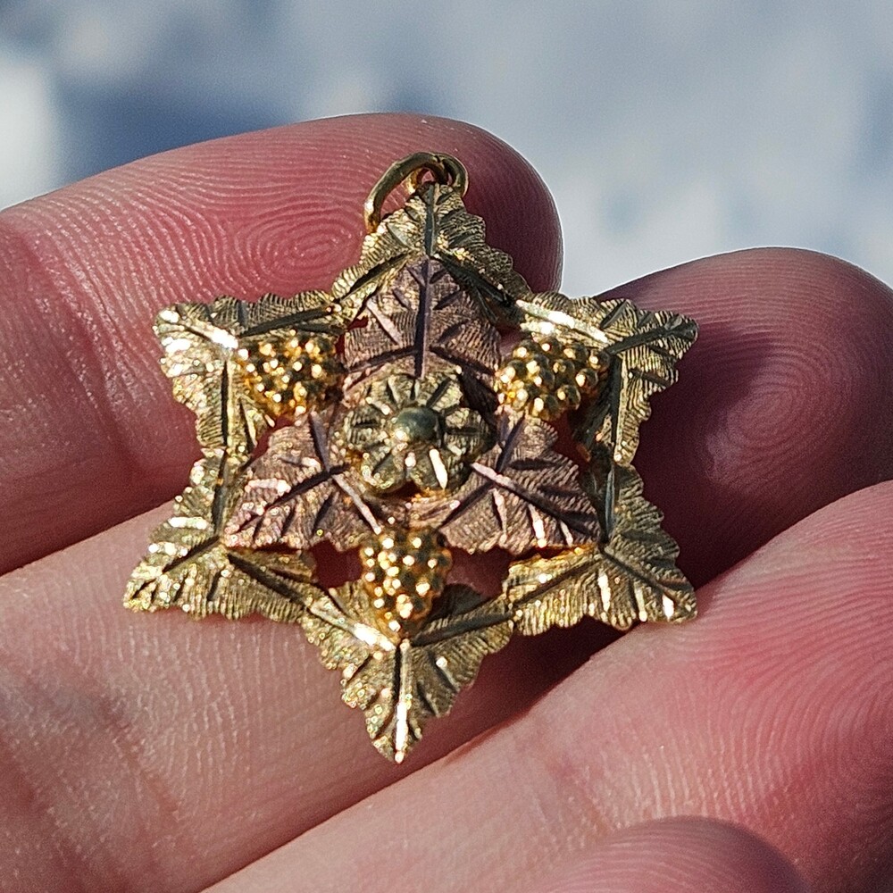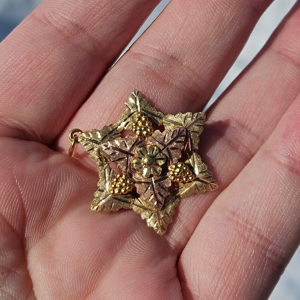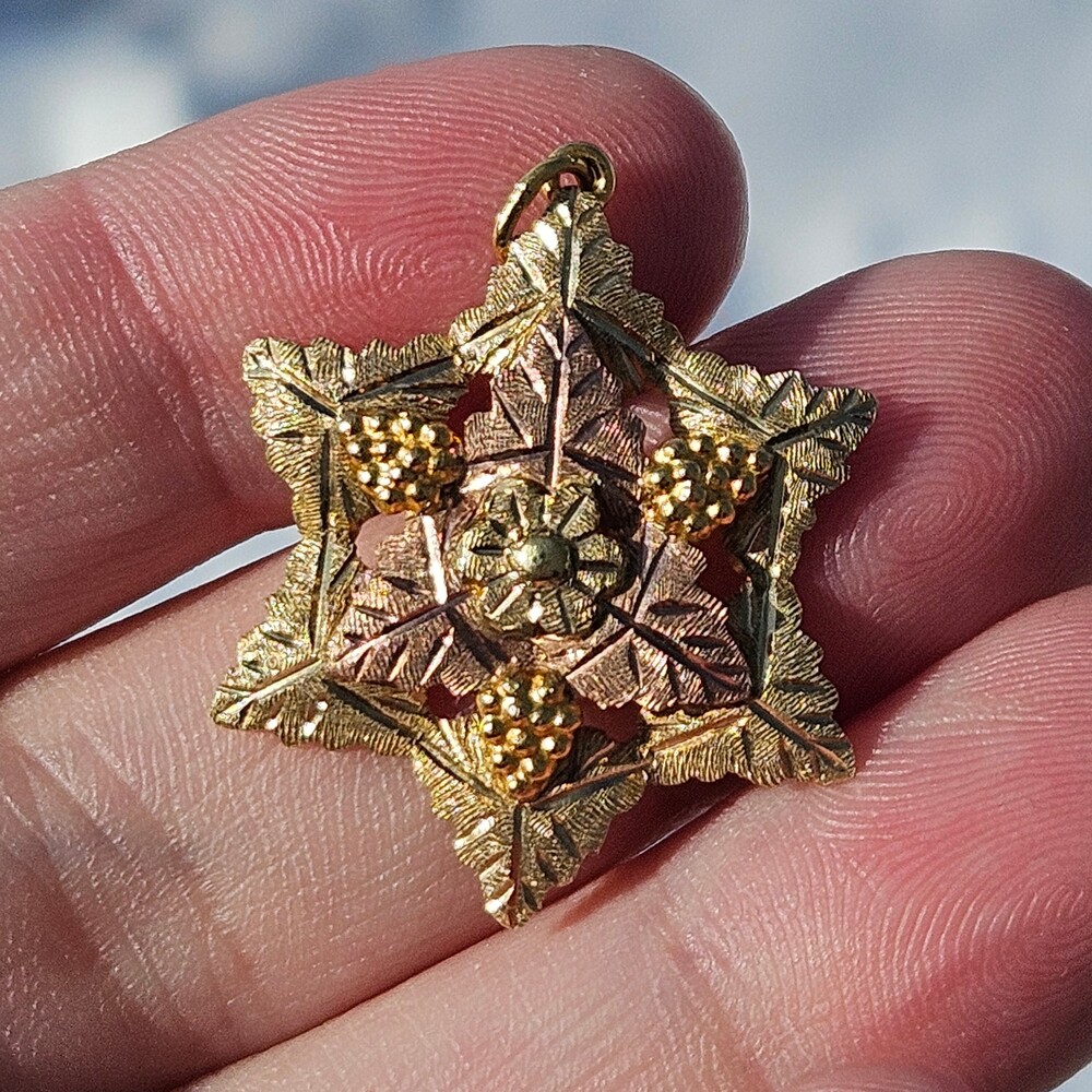 10K Black Hills Gold Grape Cluster 6 Point Star Leaf Pendant Charm 25x30mm
