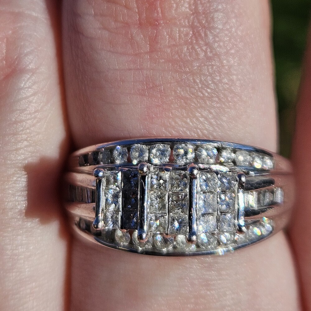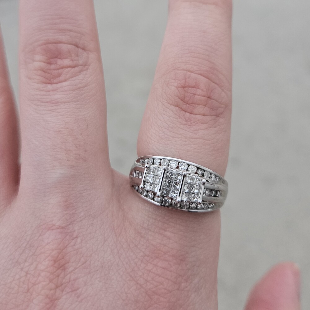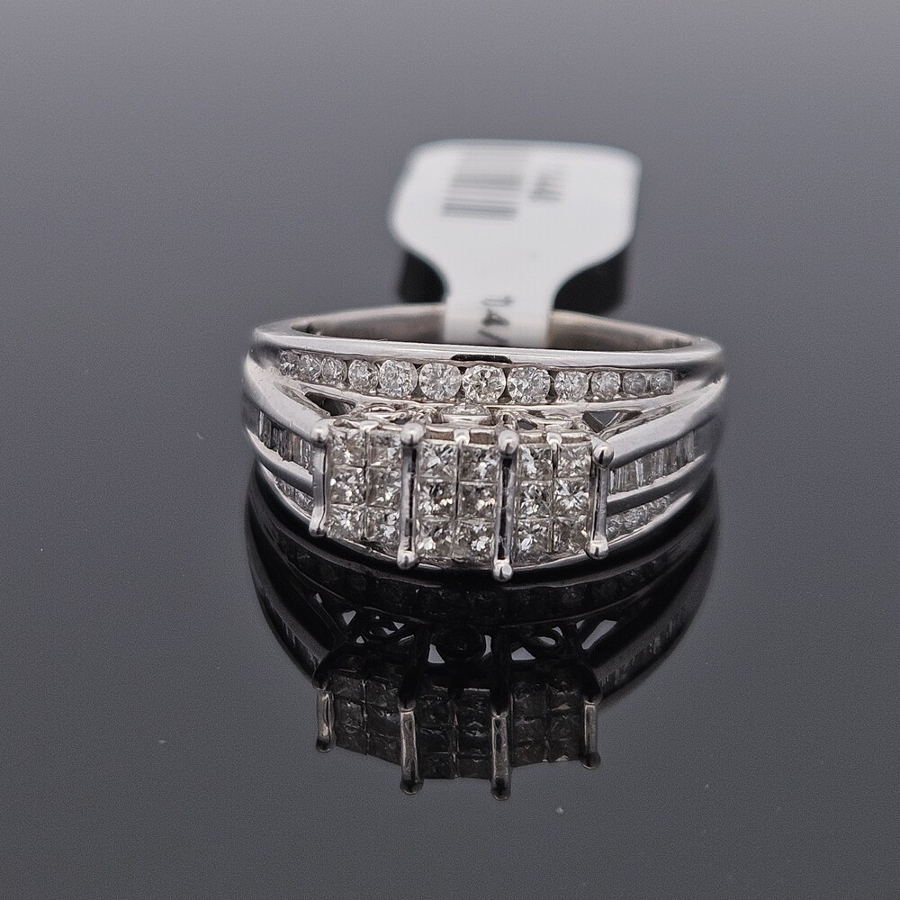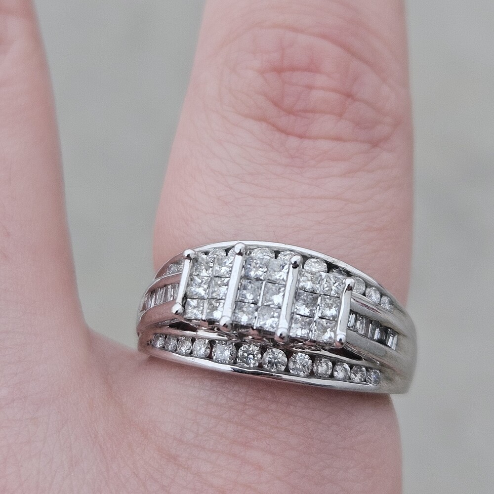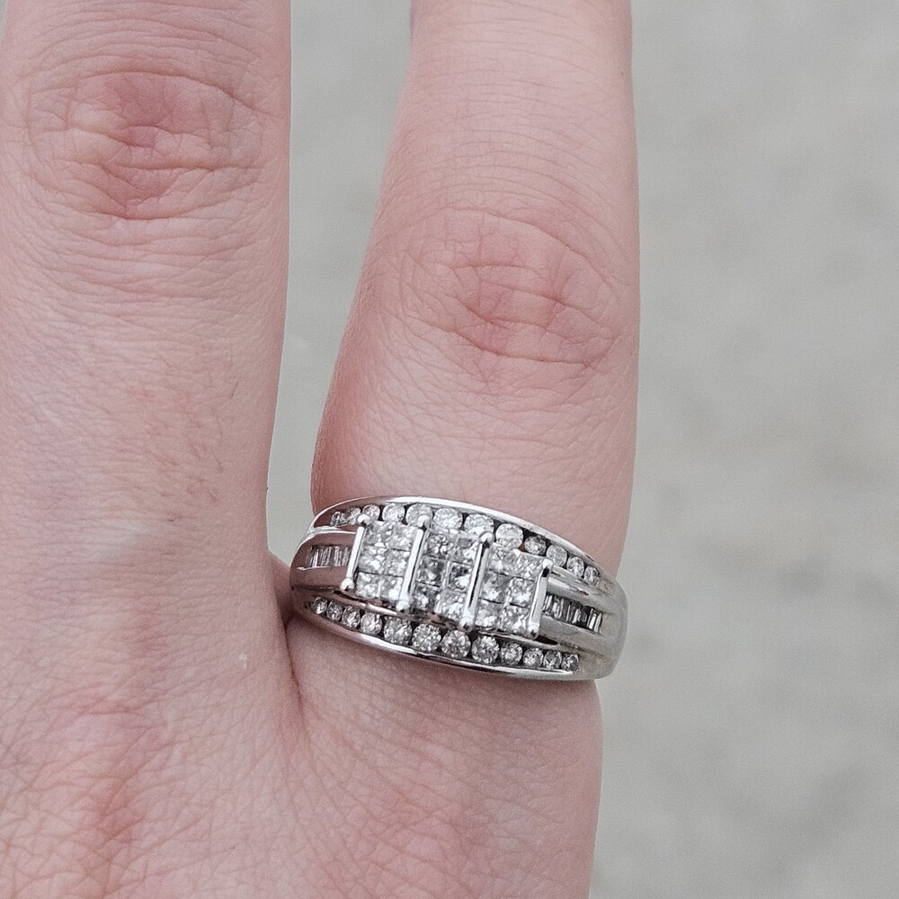 10K White Gold Diamond 3 Row Staircase Cocktail Ring Size 8.5