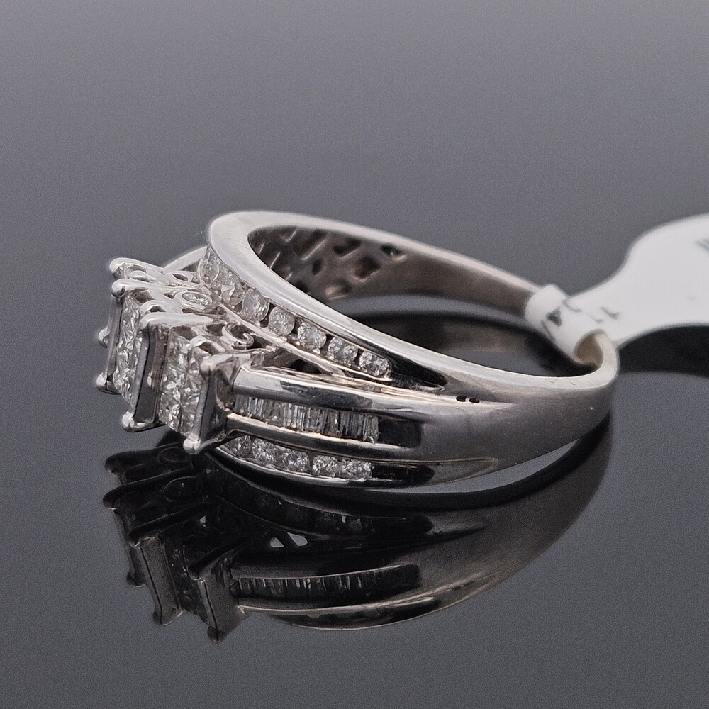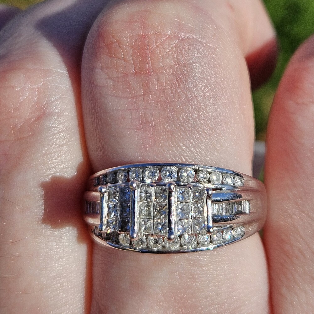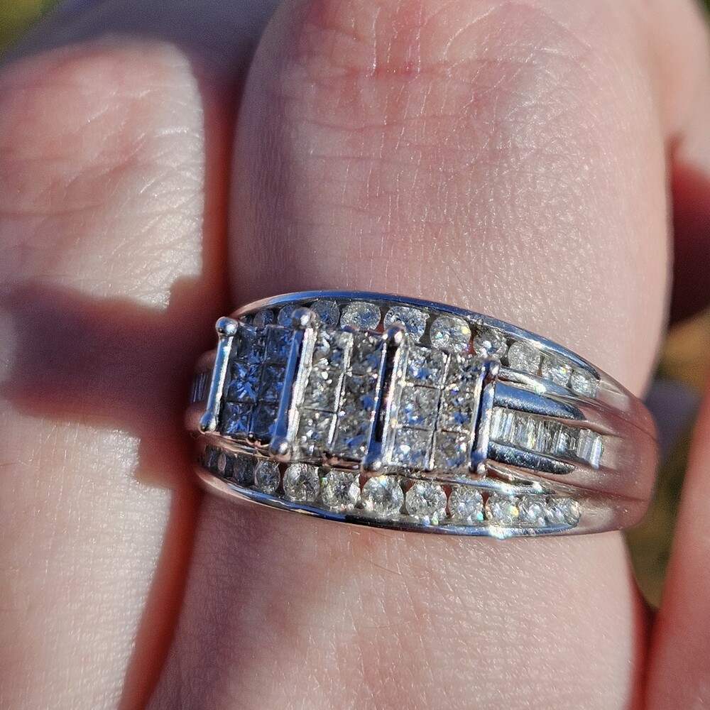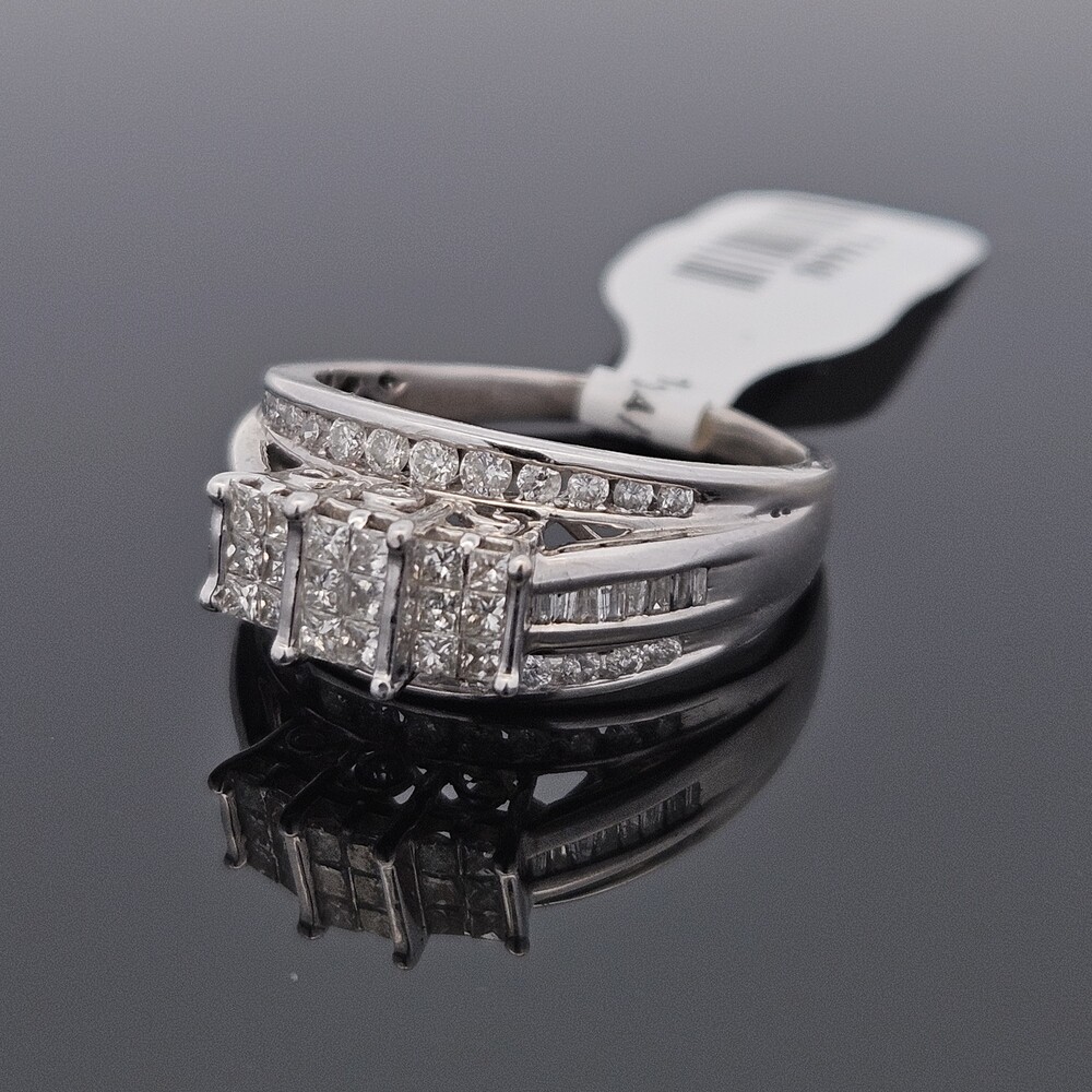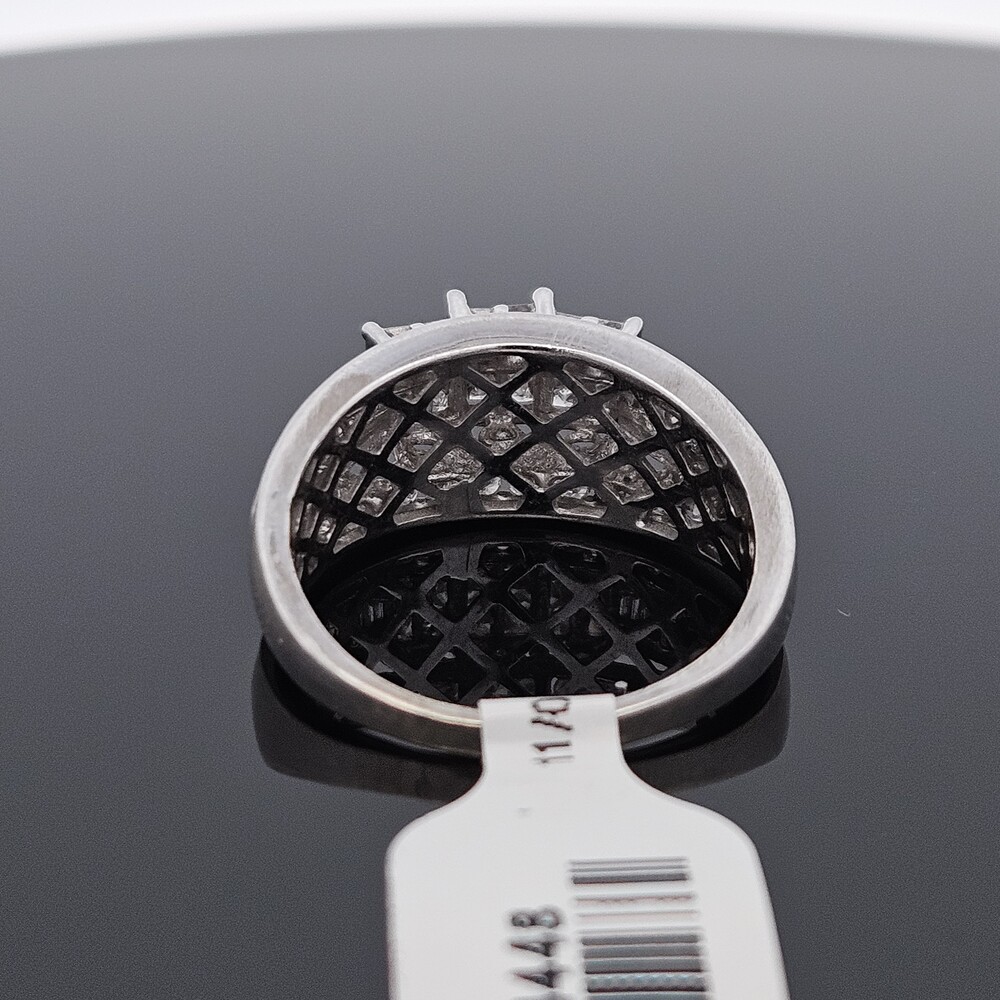 10K White Gold Diamond 3 Row Staircase Cocktail Ring Size 8.5