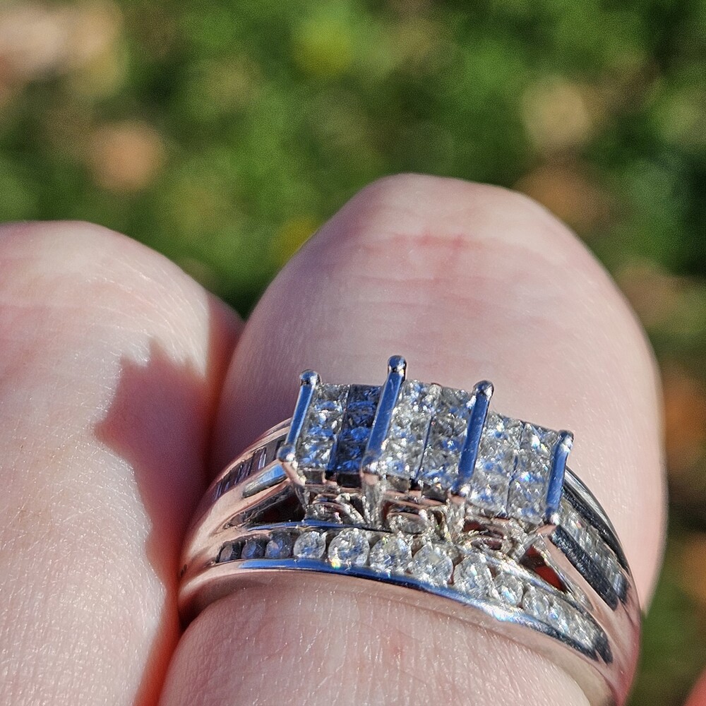 - Center Stone Shape/Size: Princess diamonds