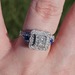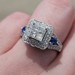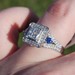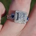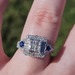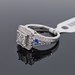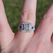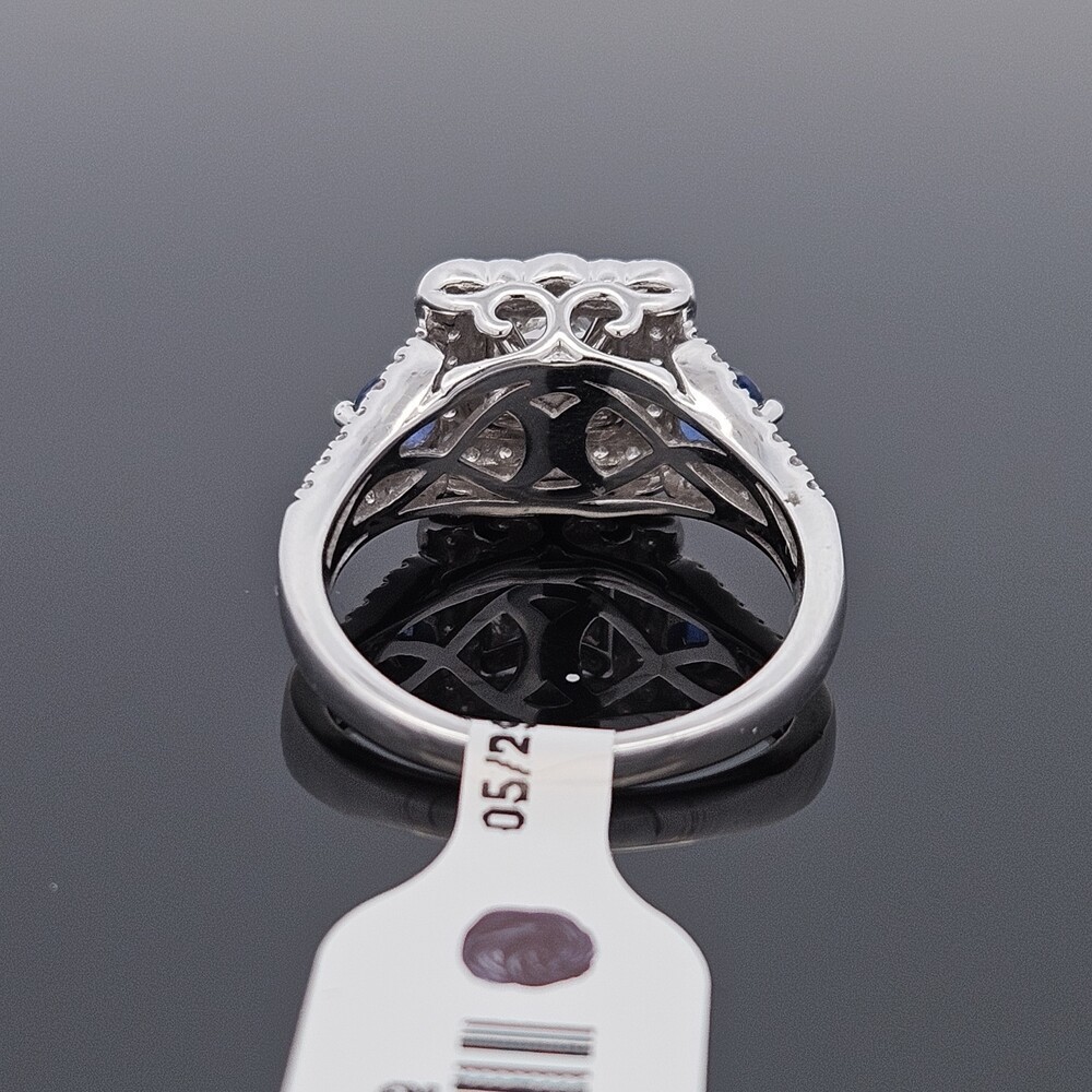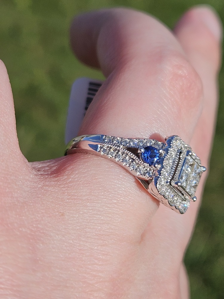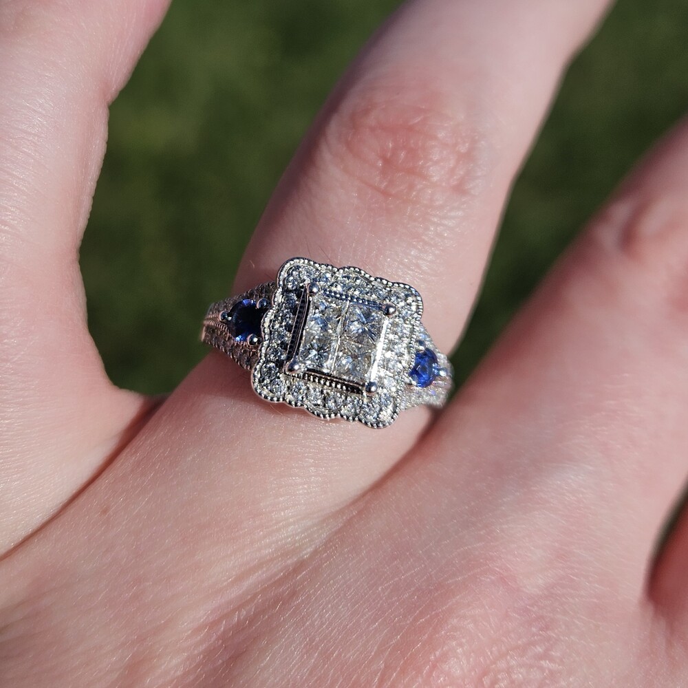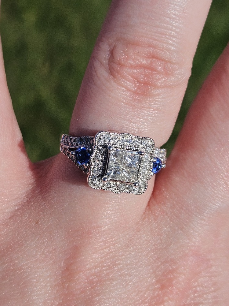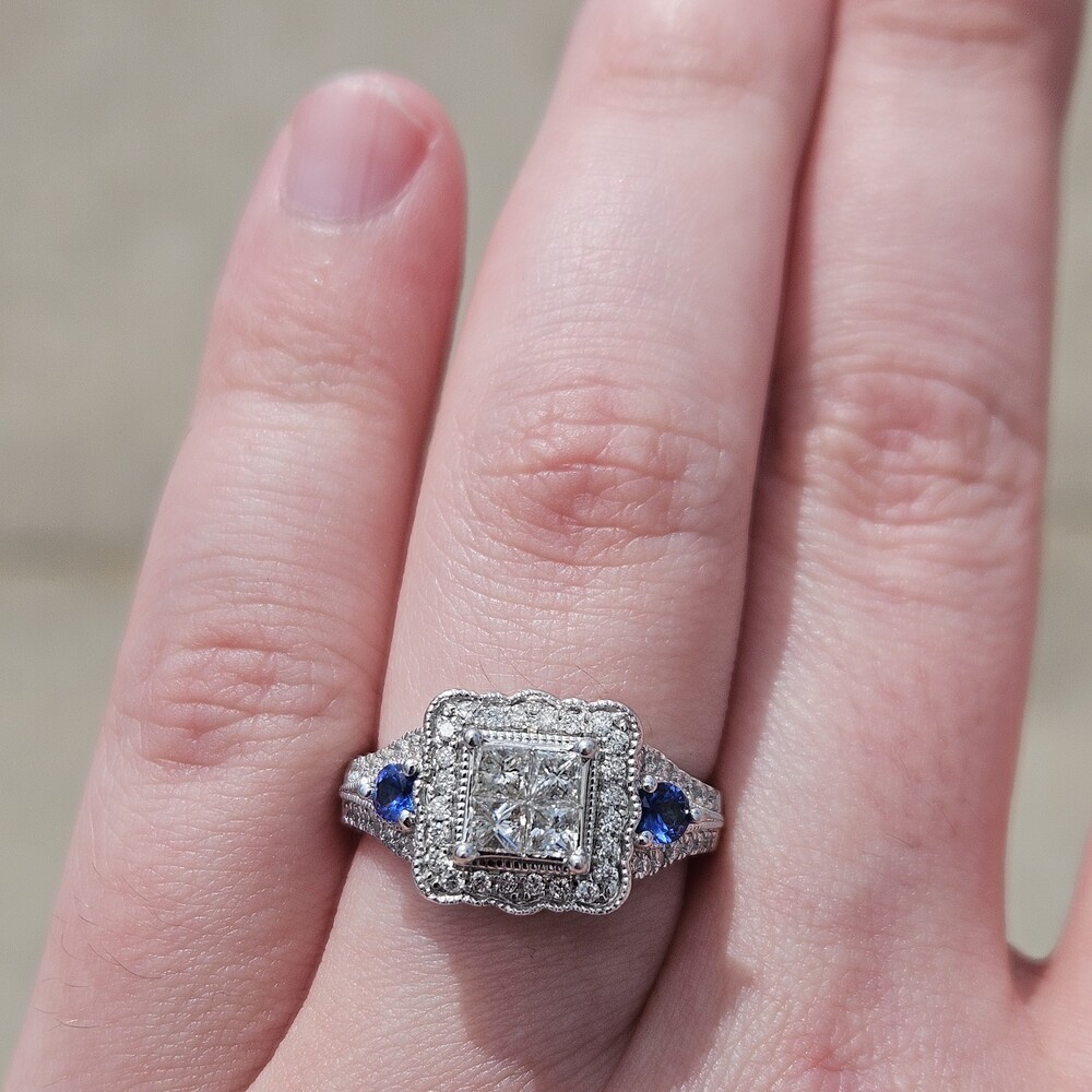 One 14KT White Gold Diamond & Natural Blue Sapphire Halo Style Engagement Ring