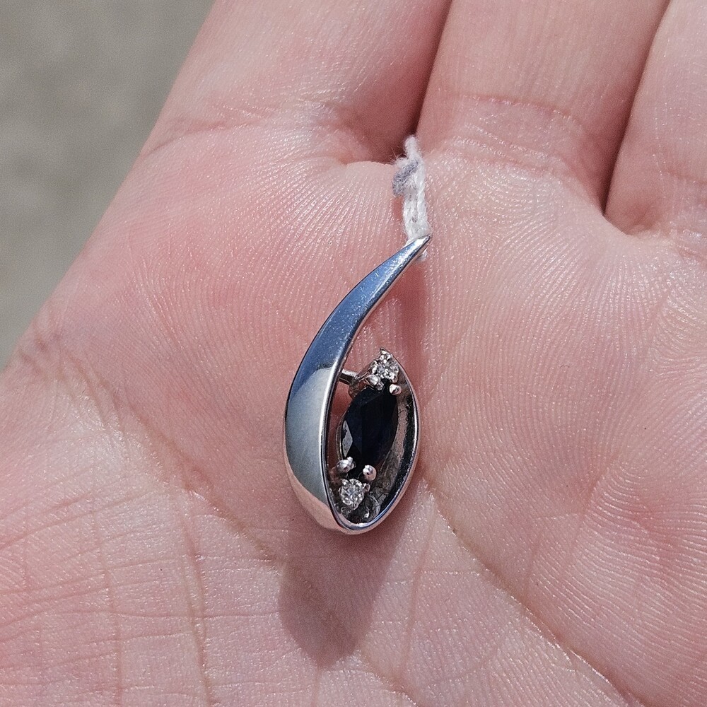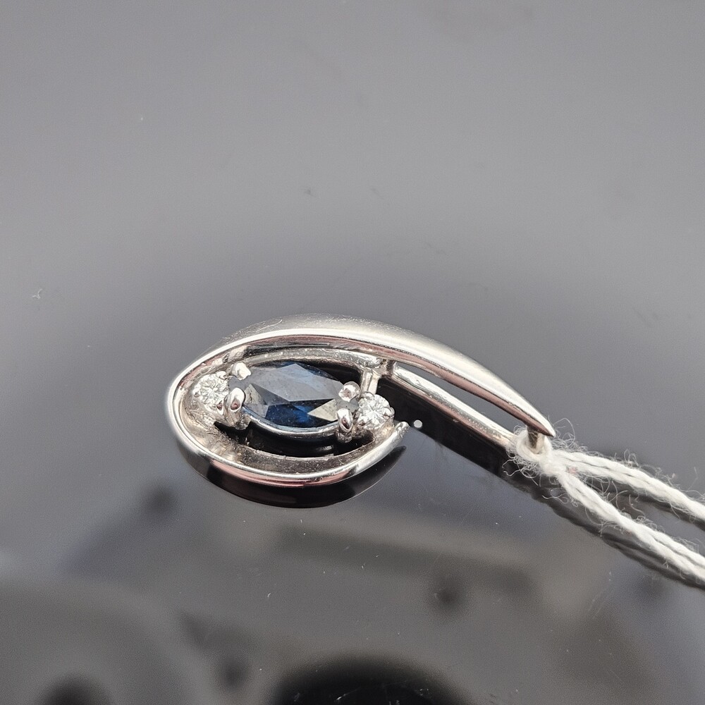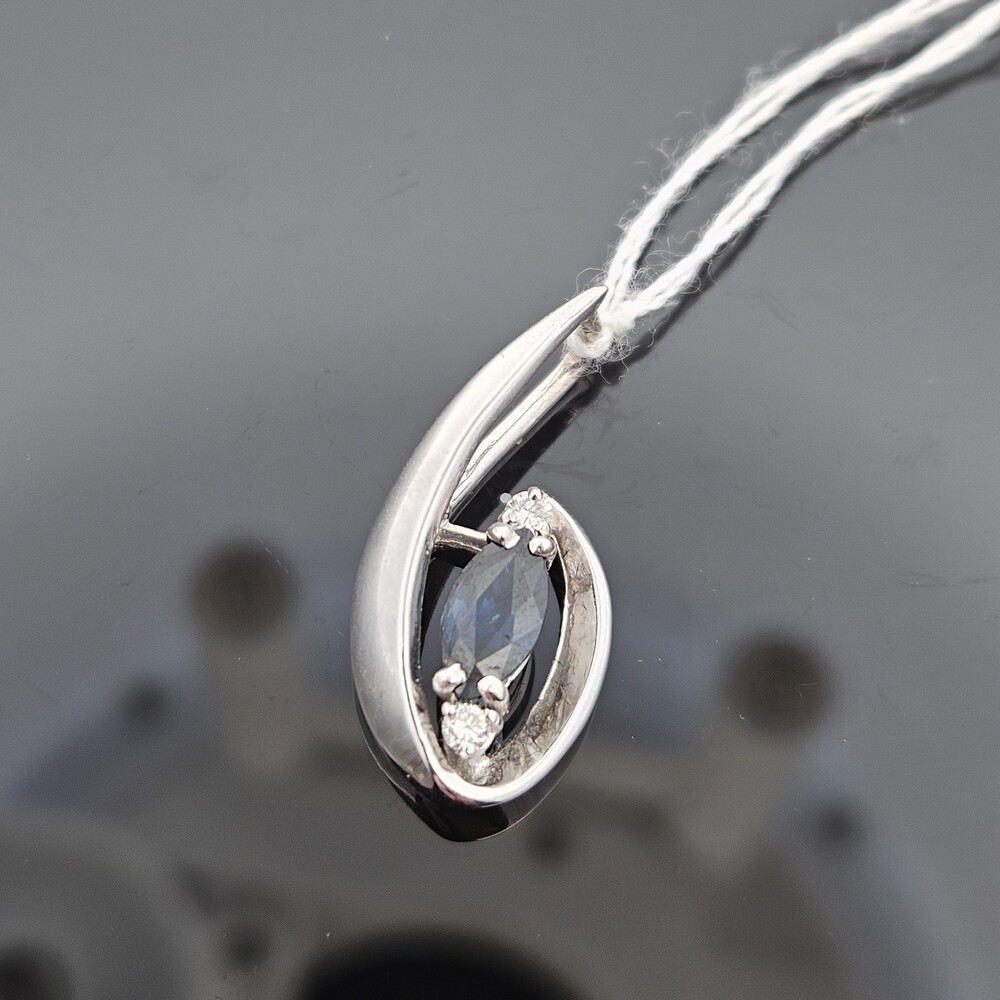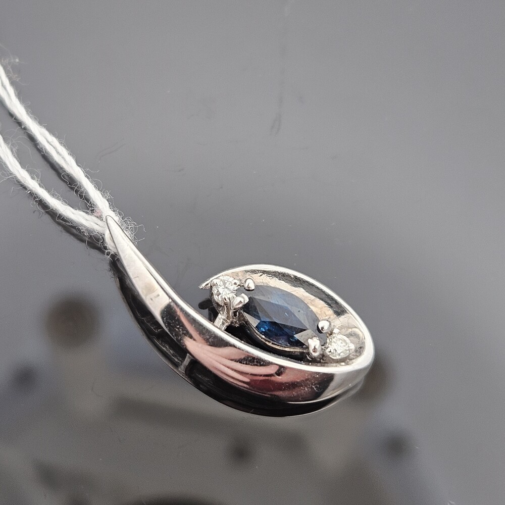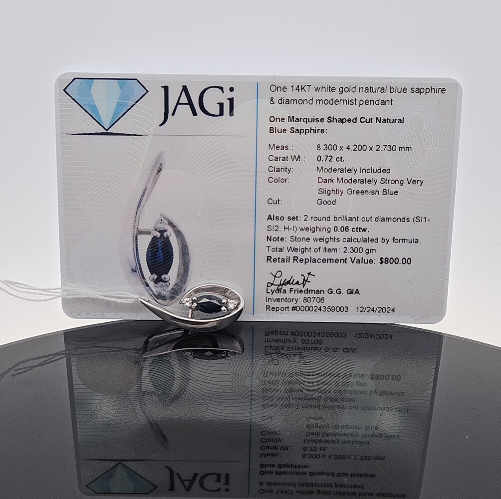 One 14KT White Gold Natural Blue Sapphire & Diamond Modernist Pendant: