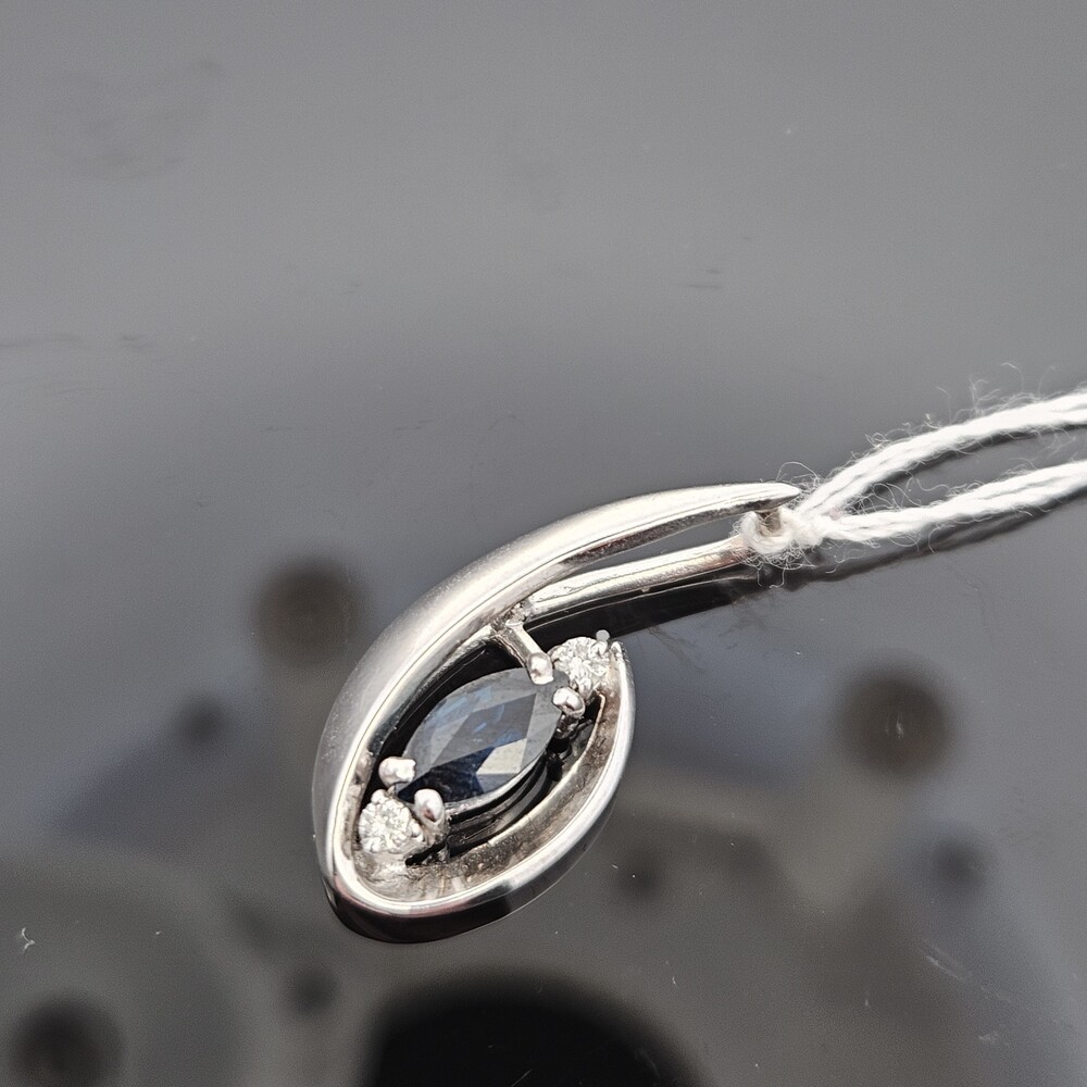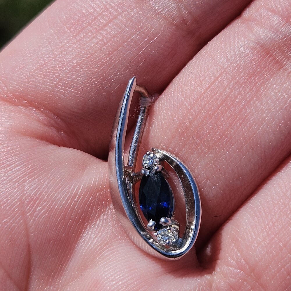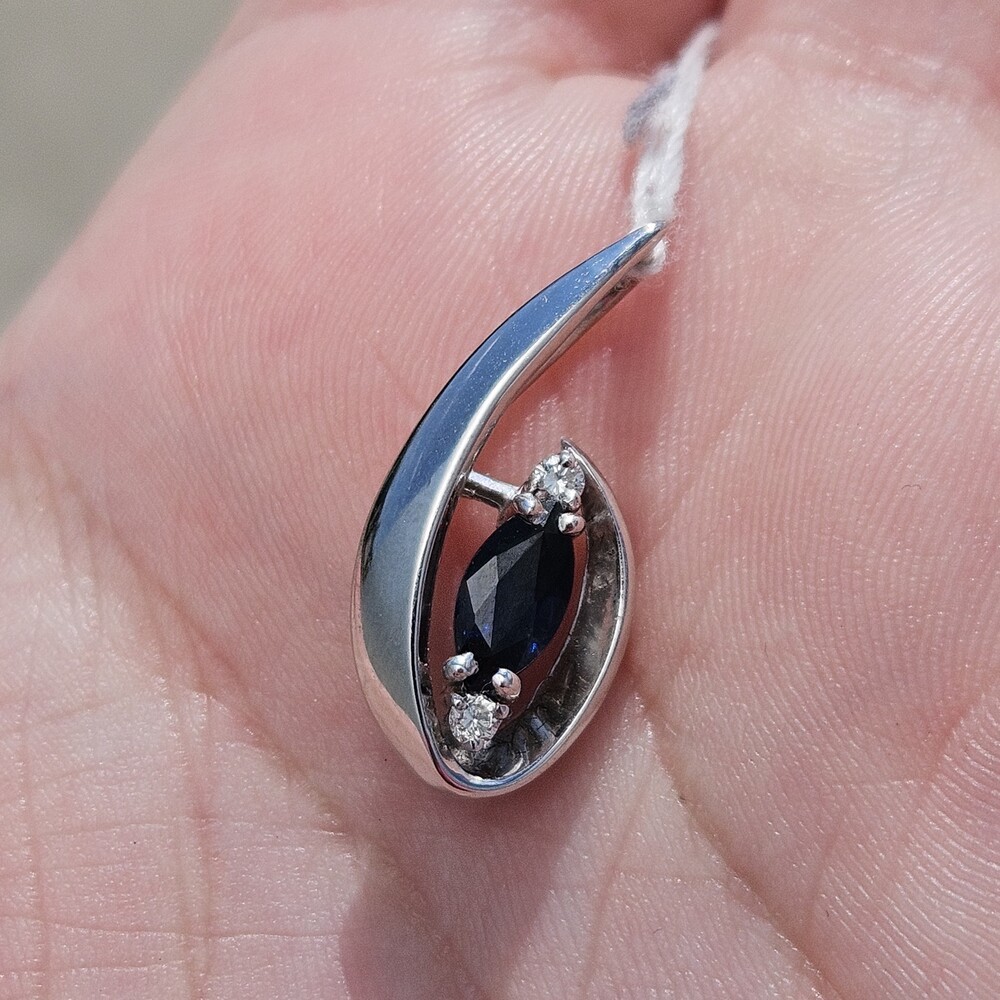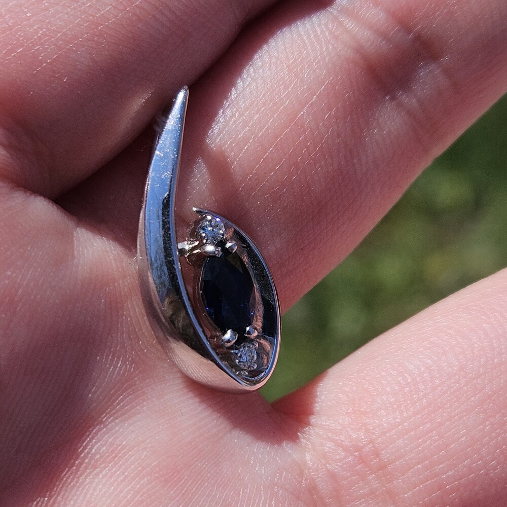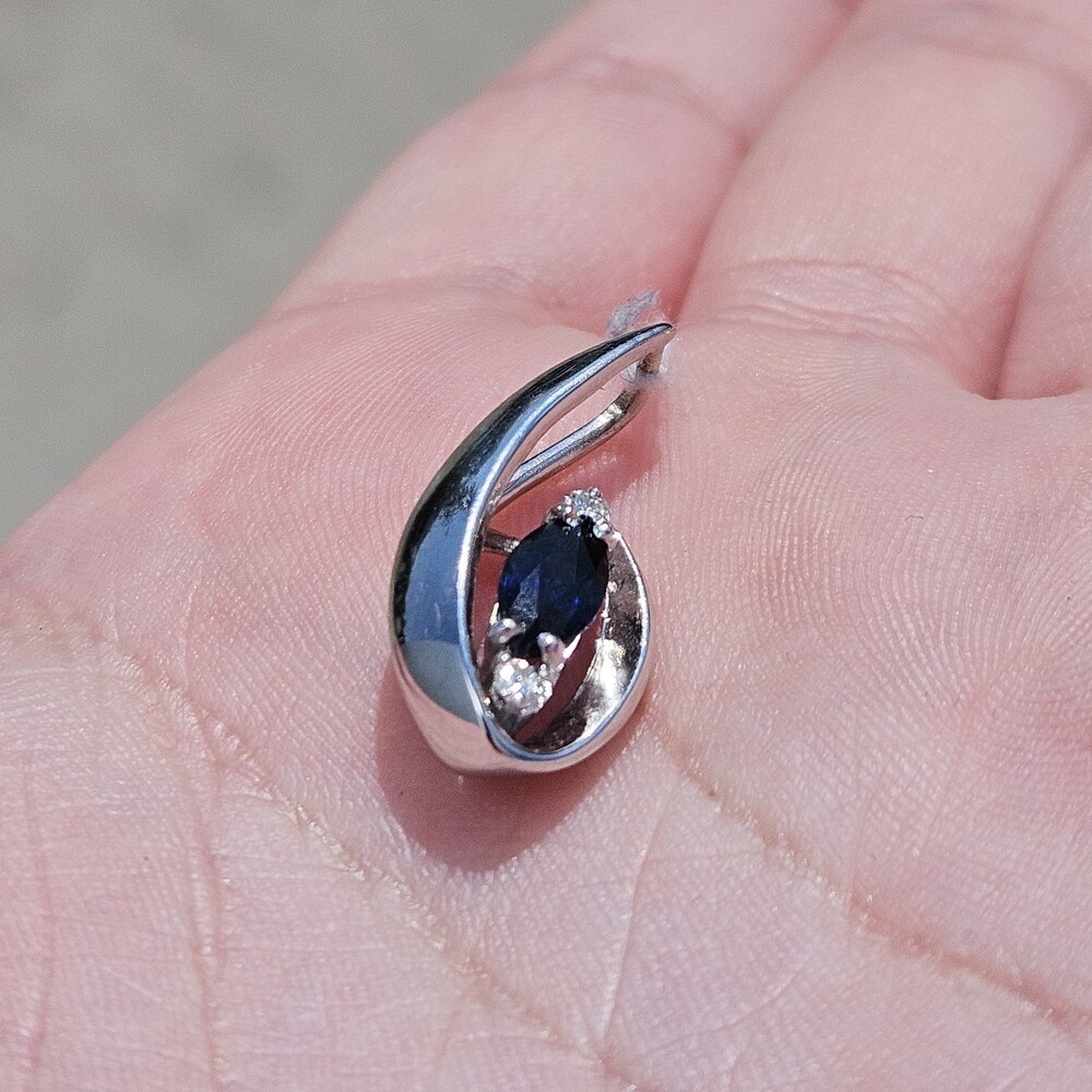 One 14KT White Gold Natural Blue Sapphire & Diamond Modernist Pendant: