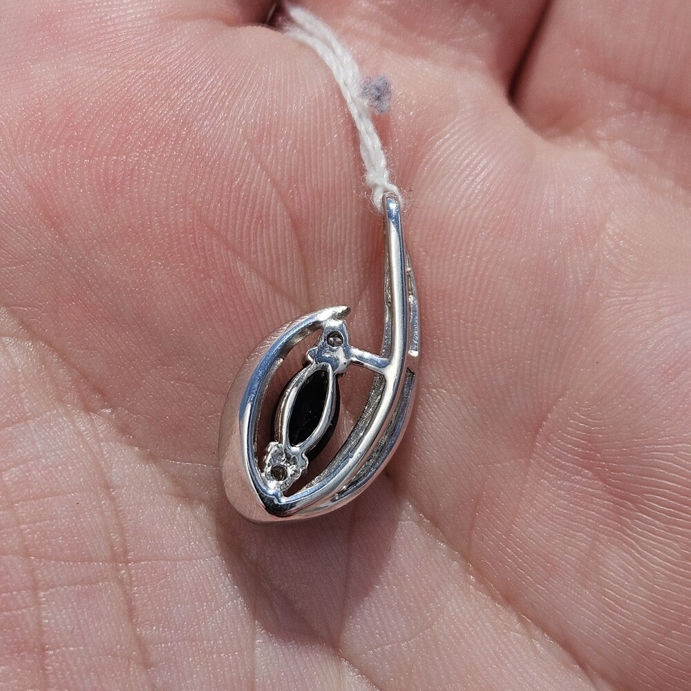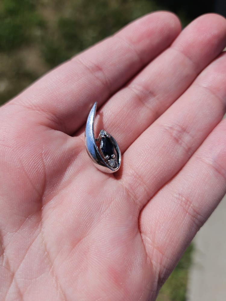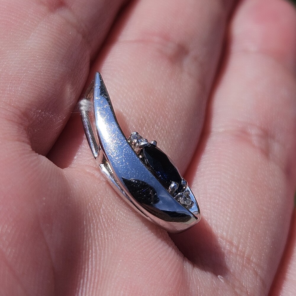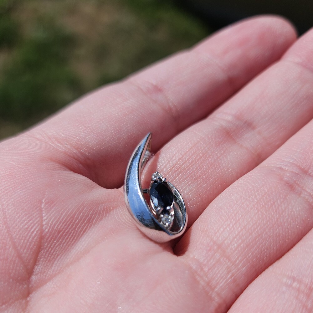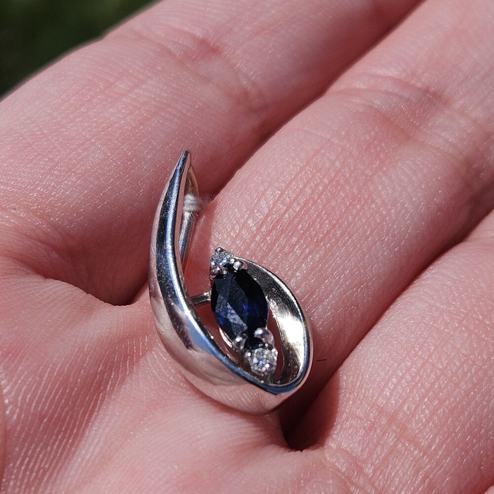One 14KT White Gold Natural Blue Sapphire & Diamond Modernist Pendant: