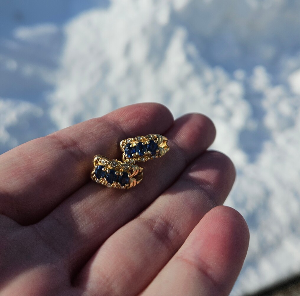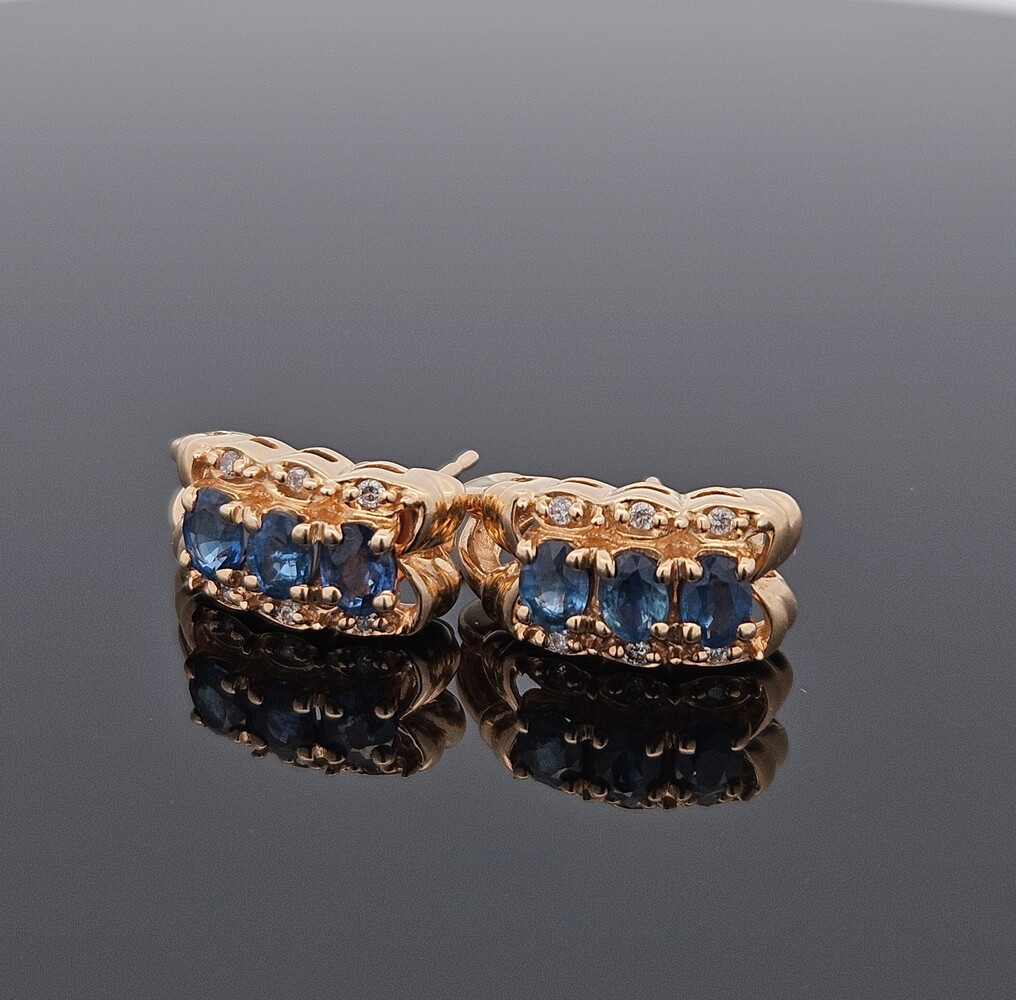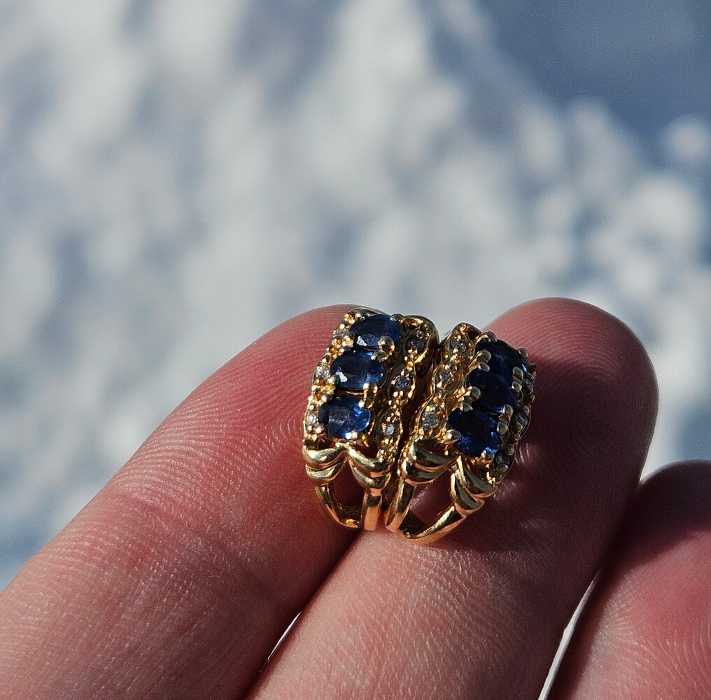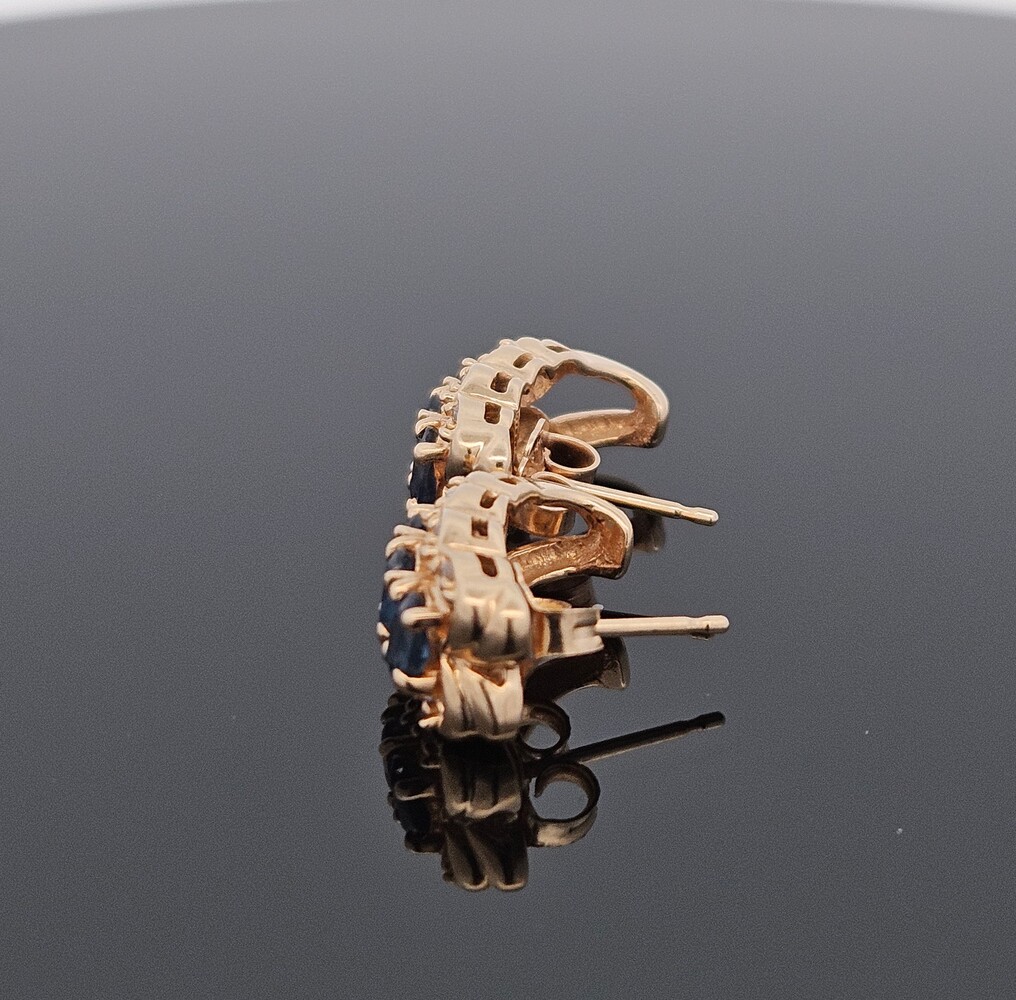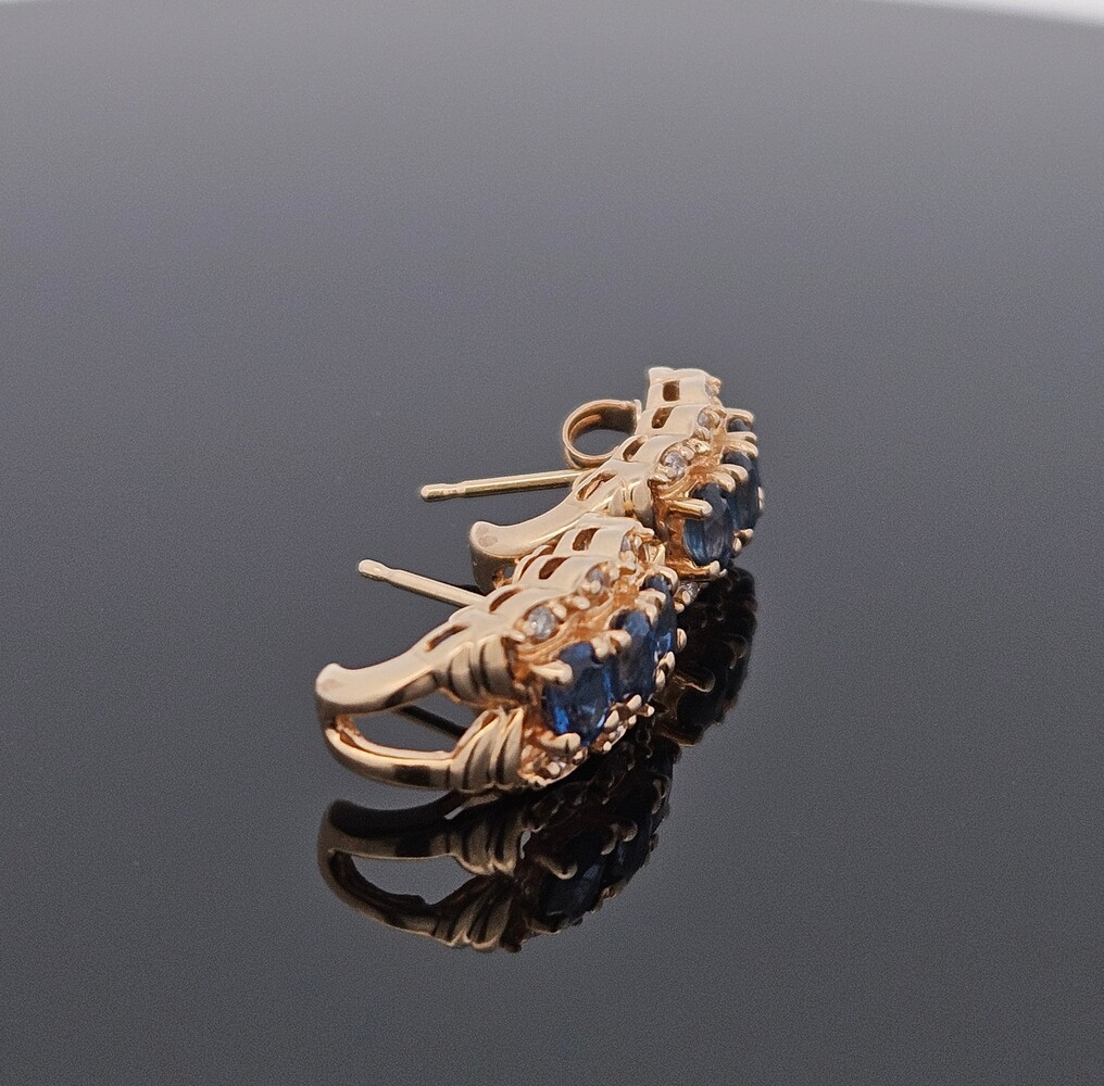 14K Yellow Gold 3 Stone Sapphire Cluster Drop Earrings 14x7mm