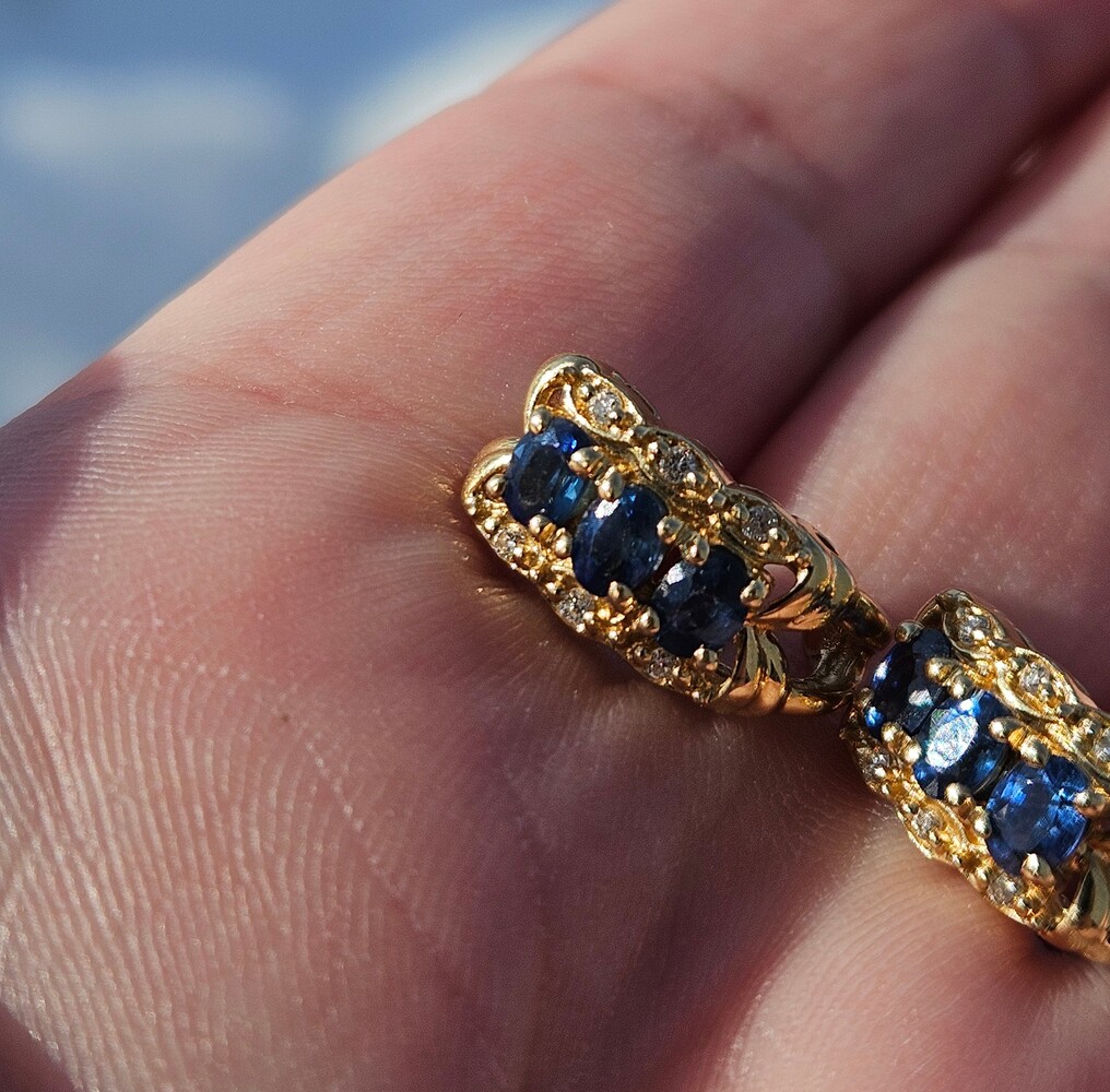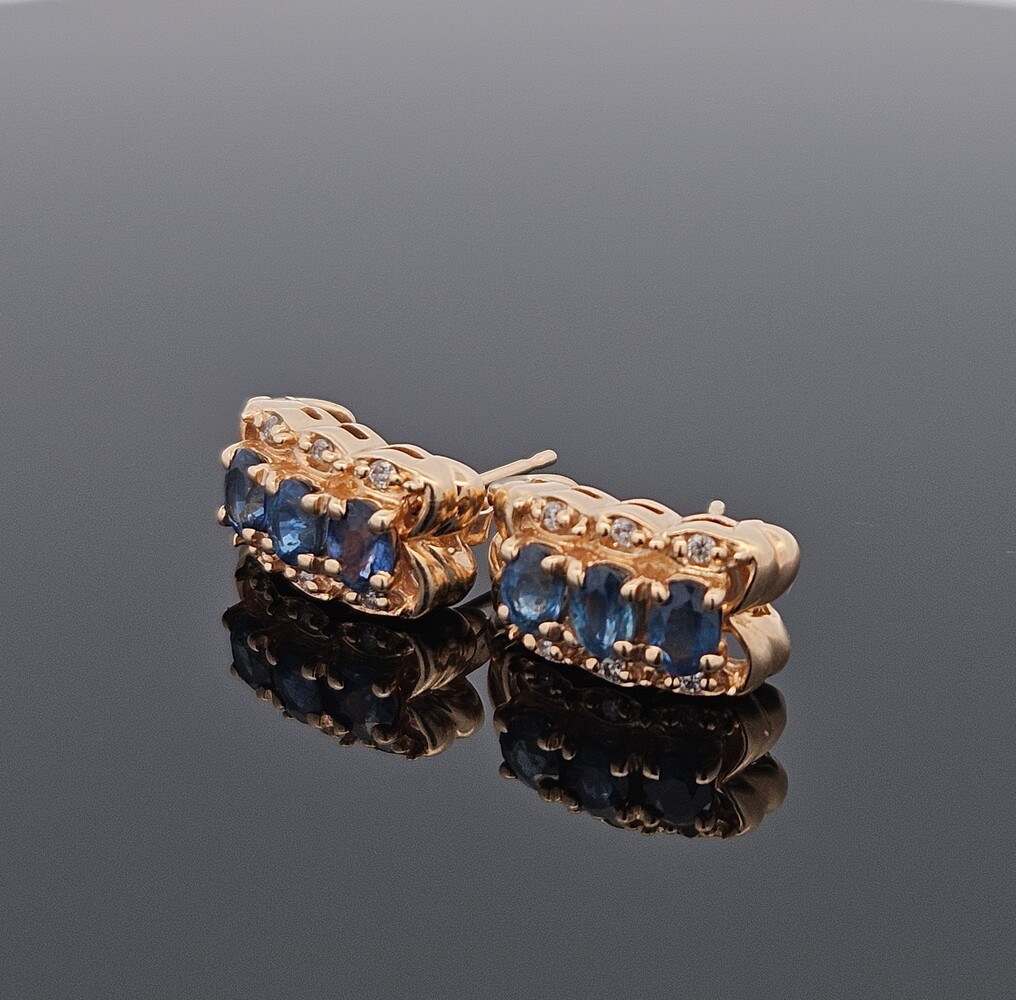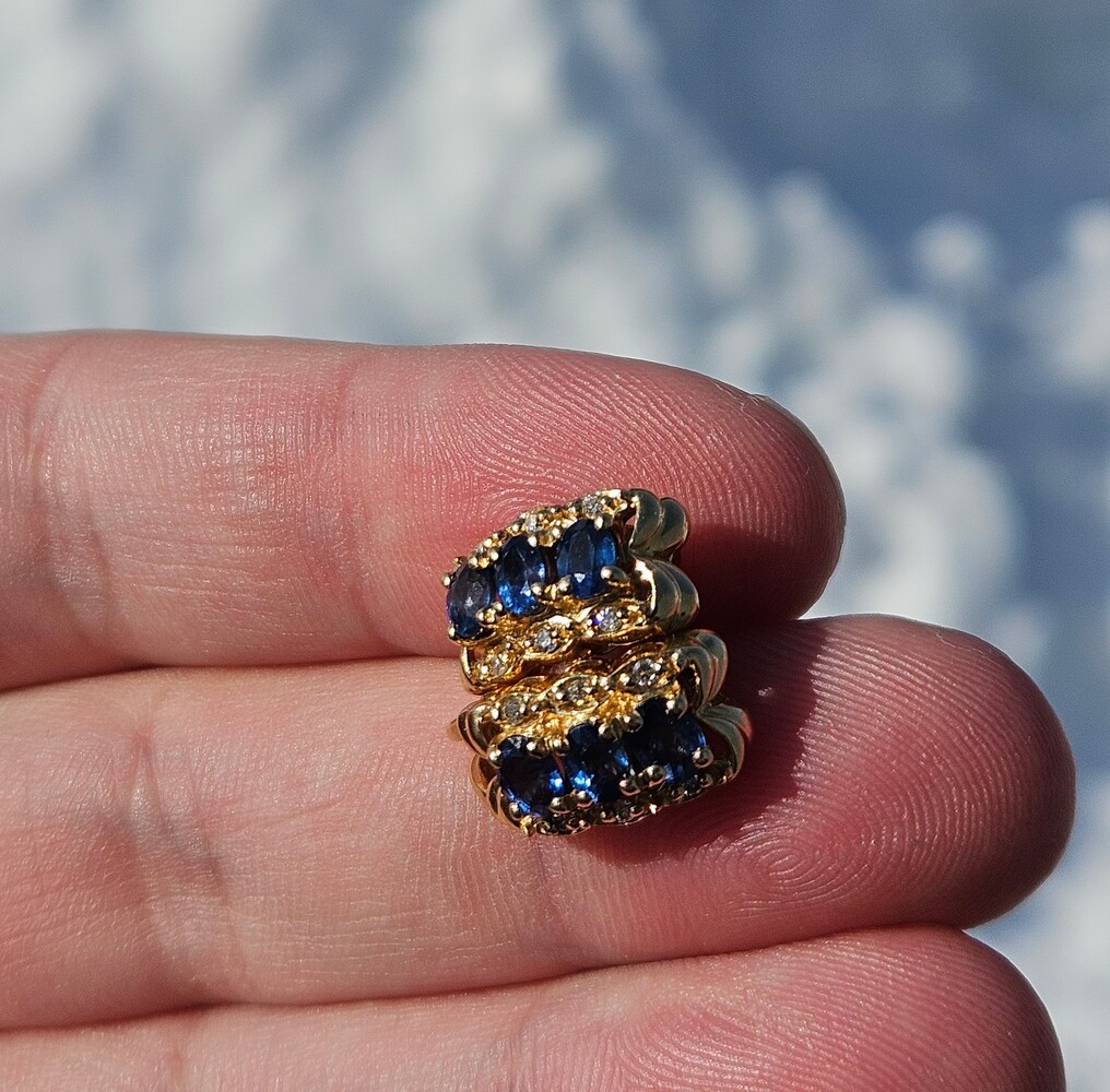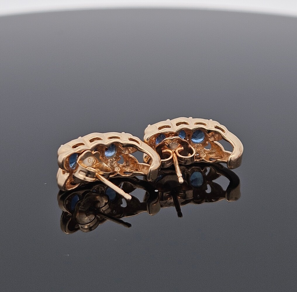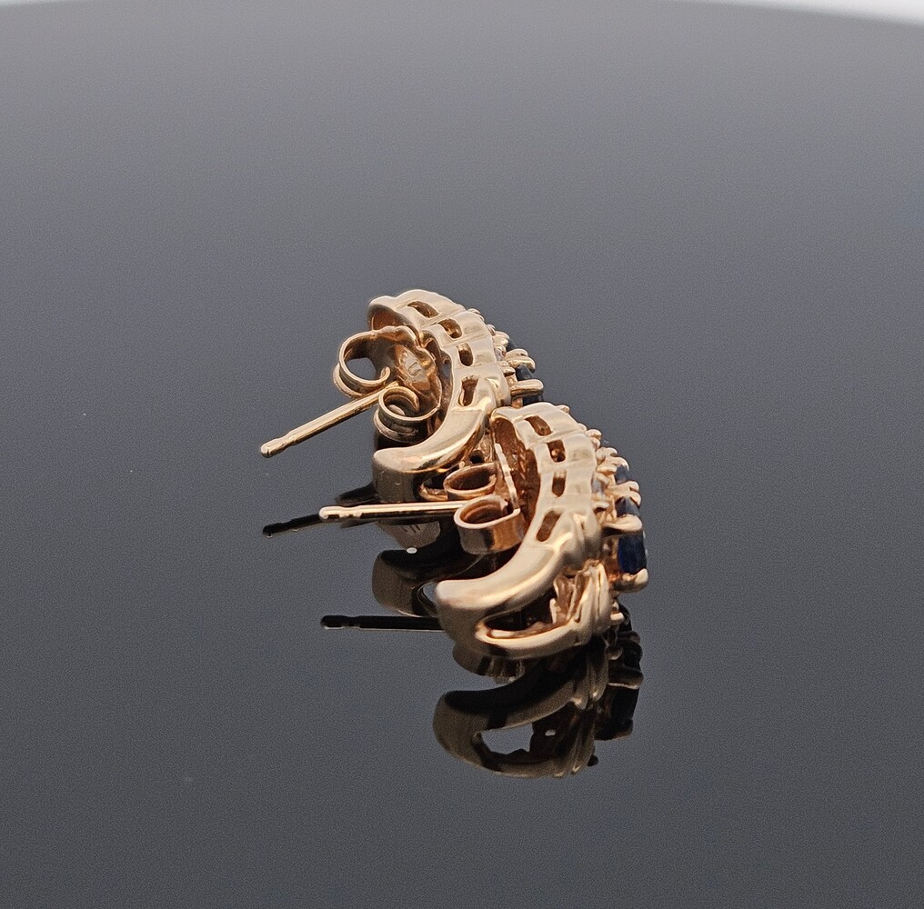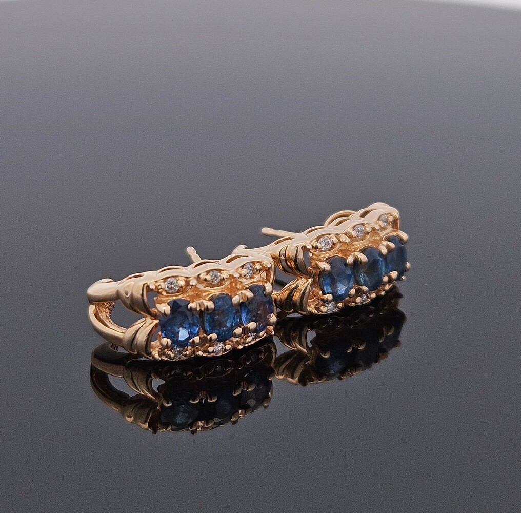 14K Yellow Gold 3 Stone Sapphire Cluster Drop Earrings 14x7mm
