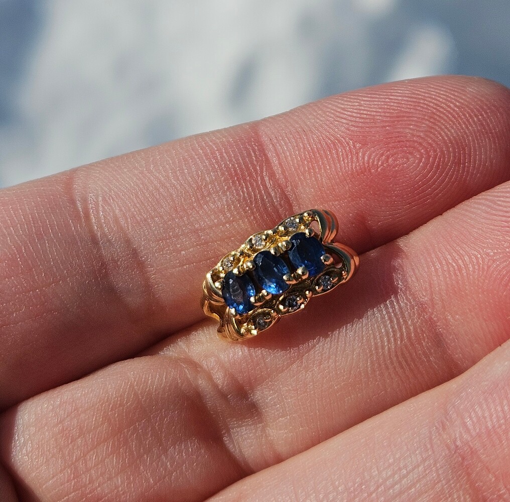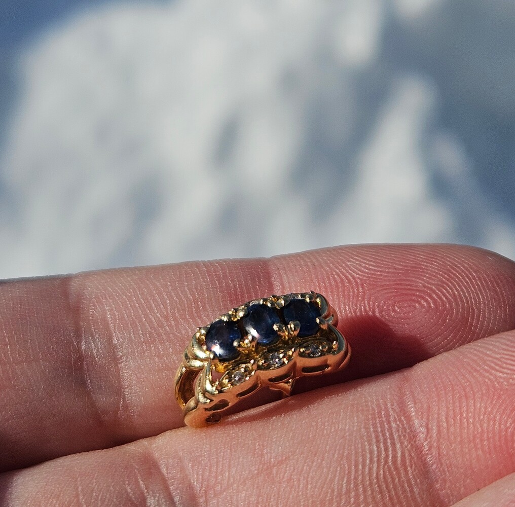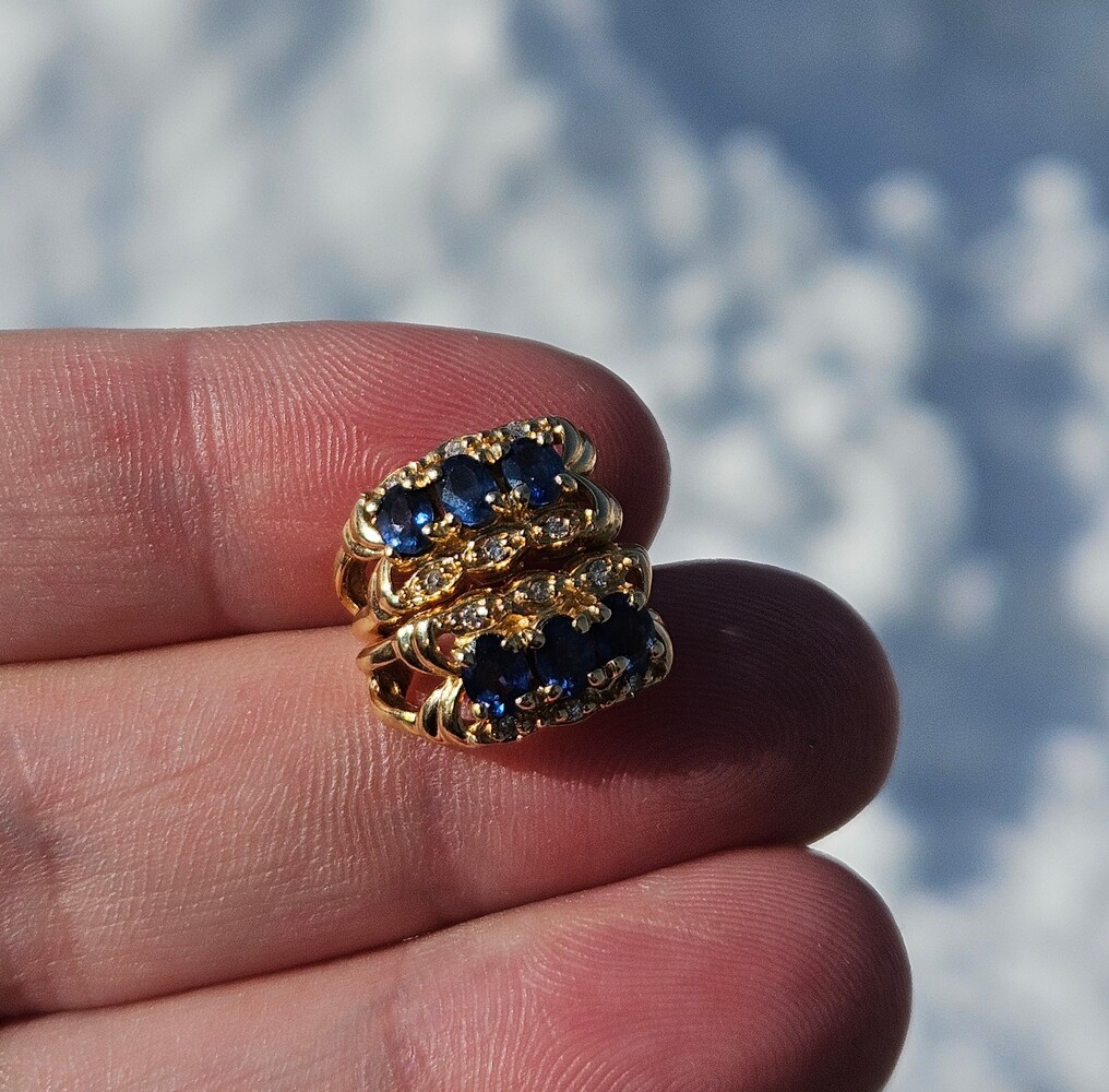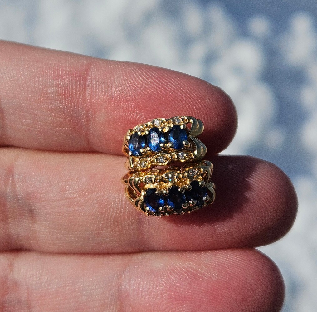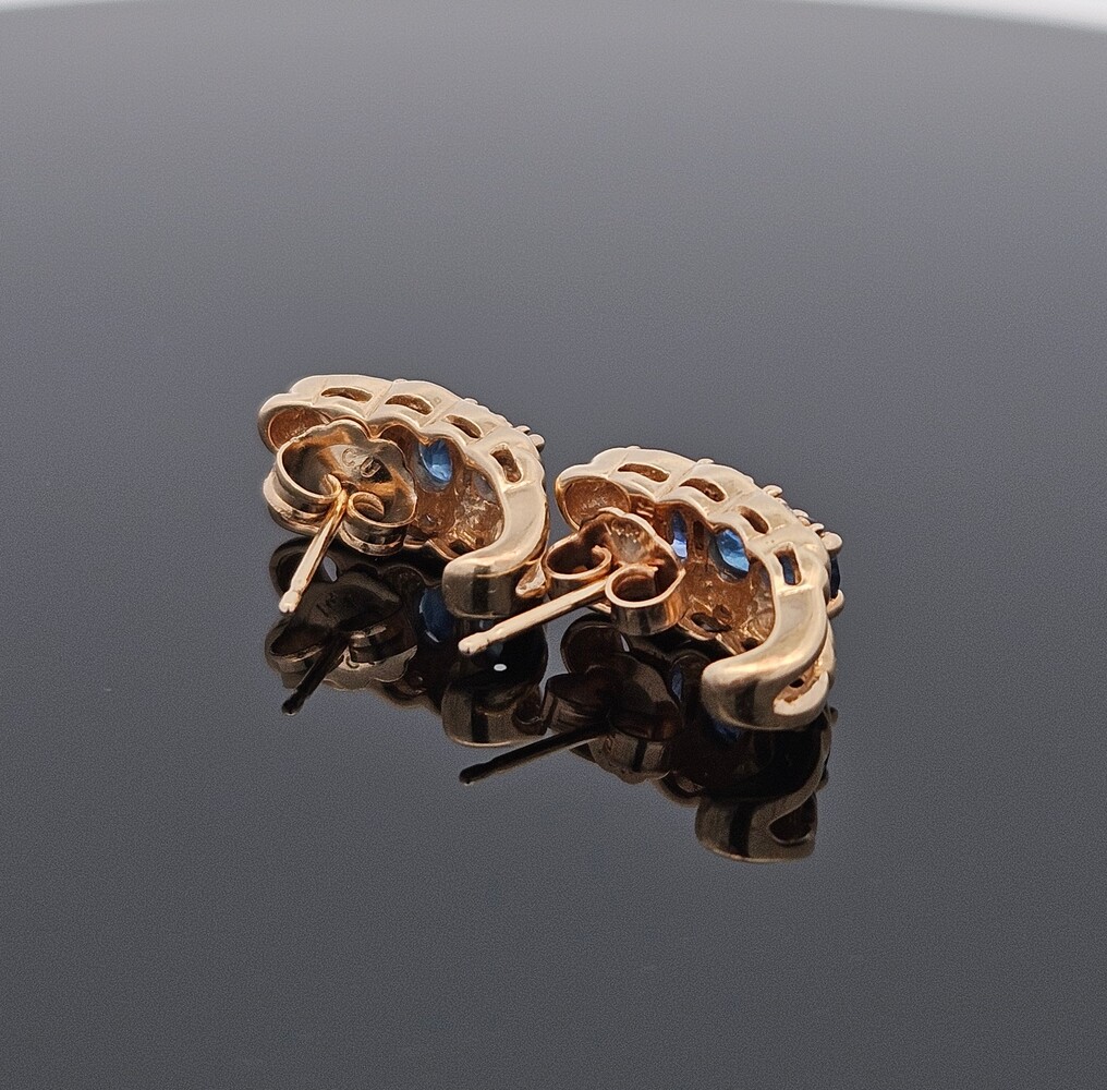 14K Yellow Gold 3 Stone Sapphire Cluster Drop Earrings 14x7mm