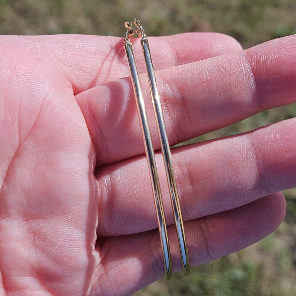 14K Yellow Gold Large Hoop Earrings 2.75 Inch Diameter 4.2 Grams