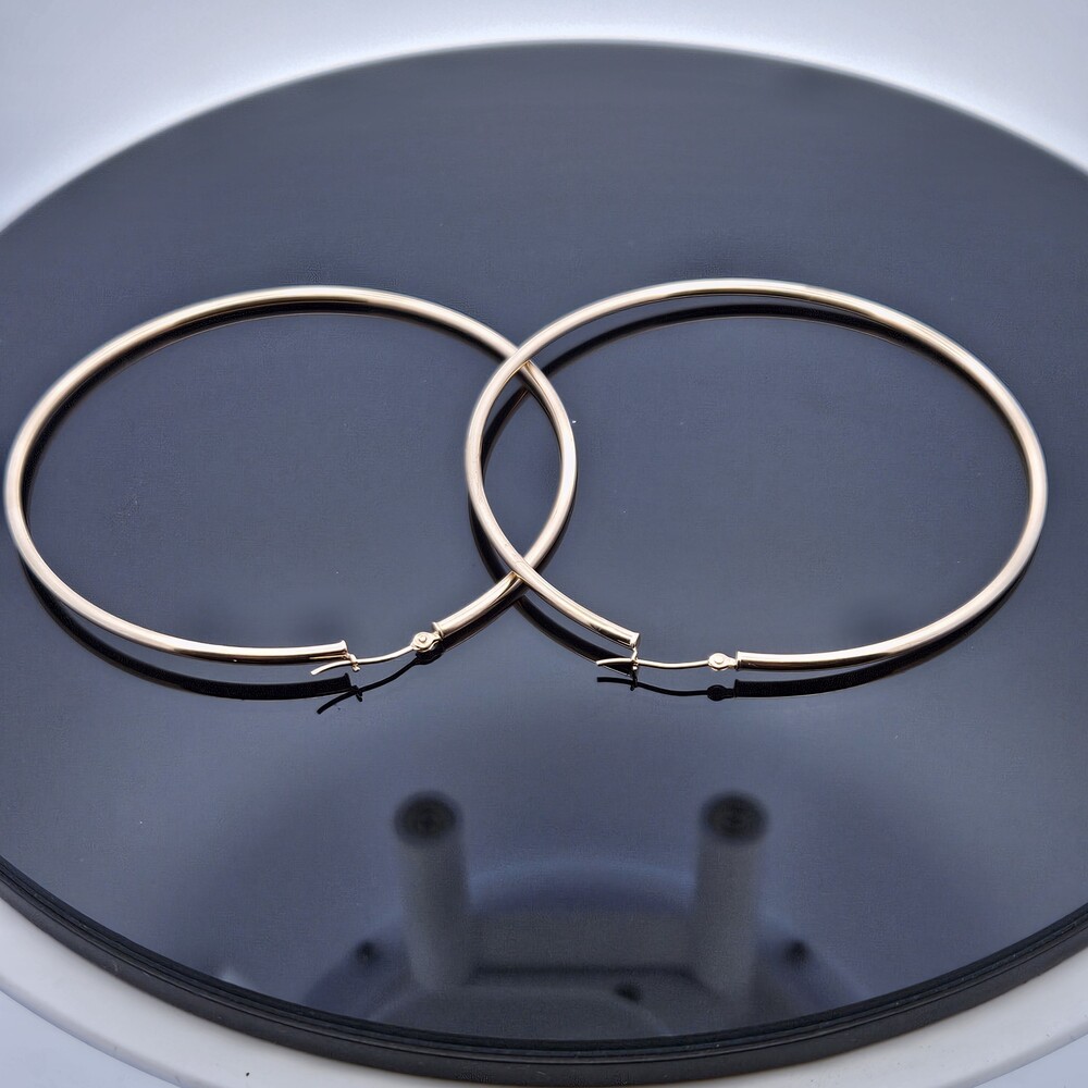 14K Yellow Gold Large Hoop Earrings 2.75 Inch Diameter 4.2 Grams | Money and More