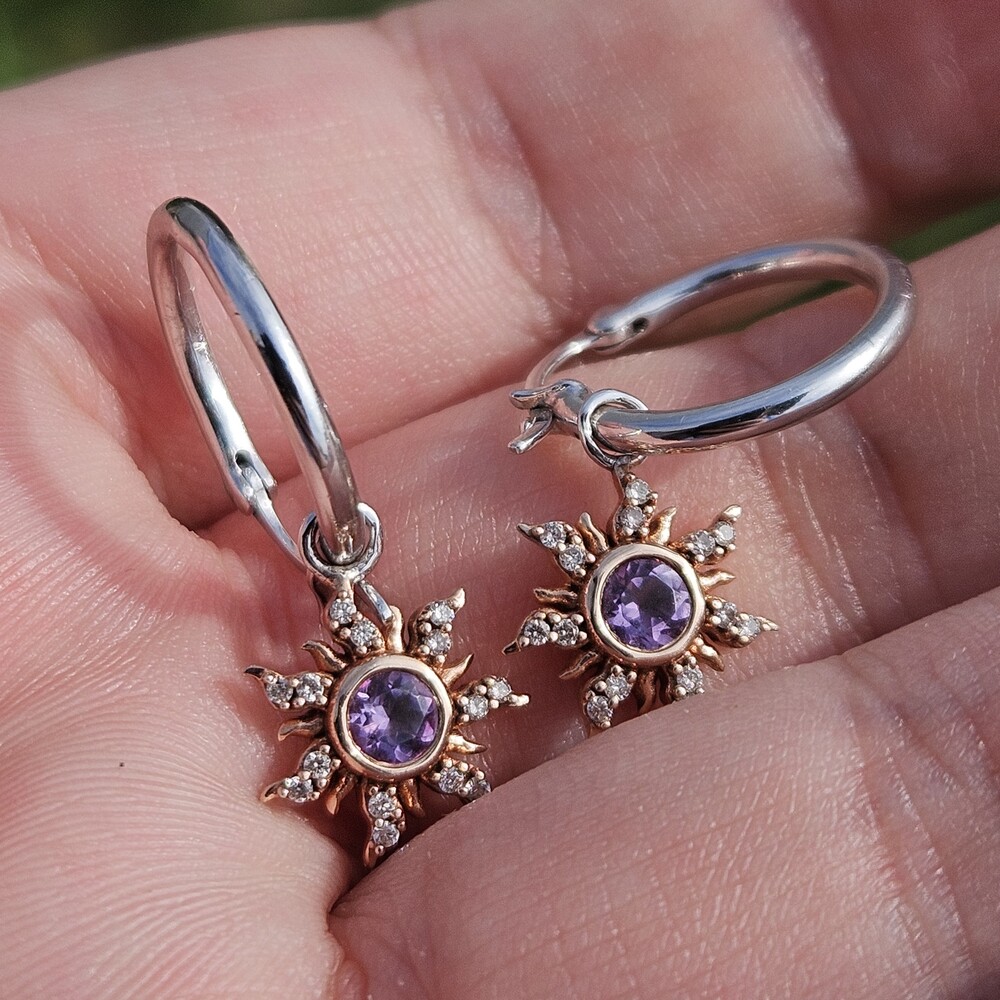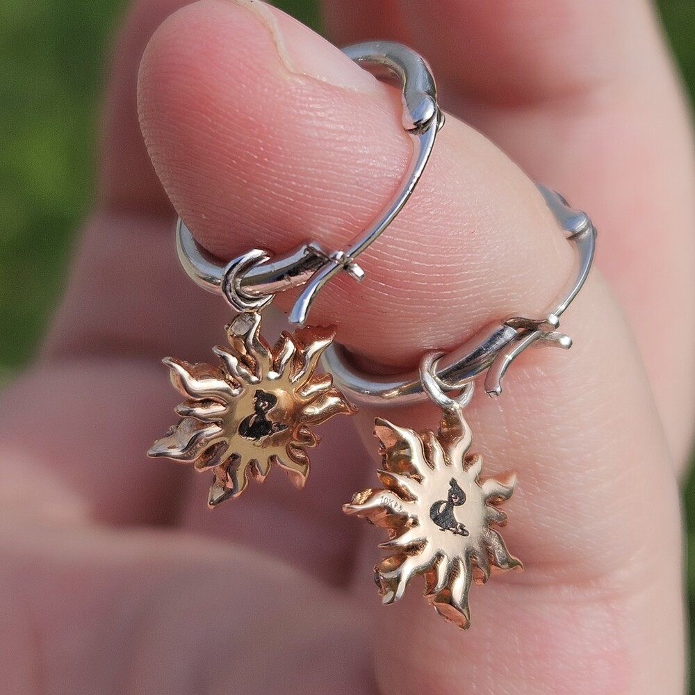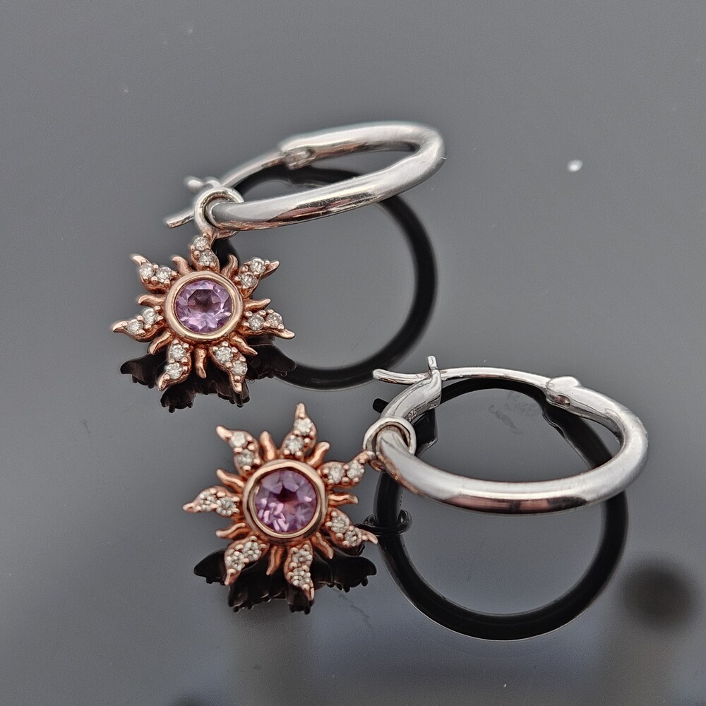- Earrings are 925 Sterling Silver the sun parts are 10K Rose Gold