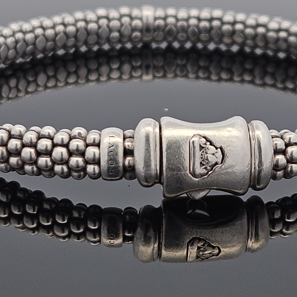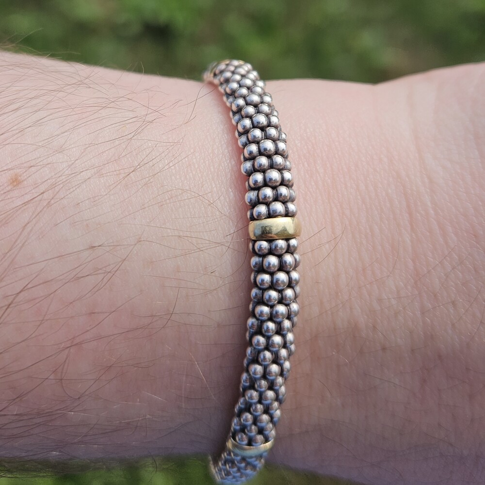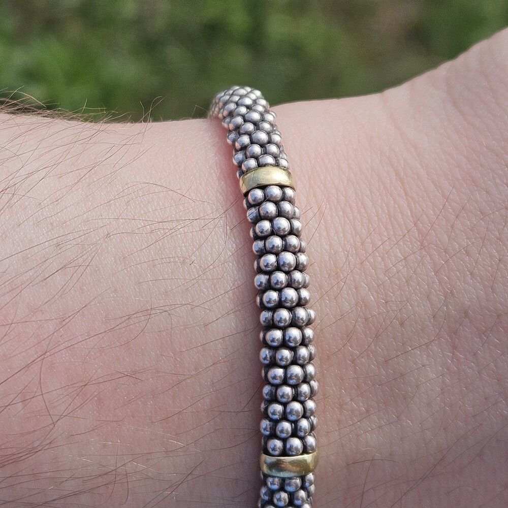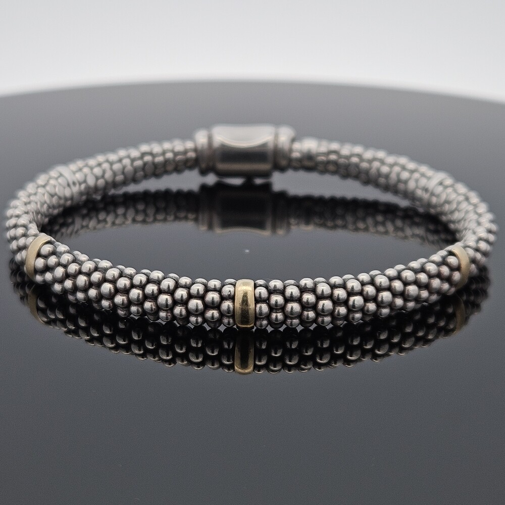 Lagos Caviar 925 Sterling Silver 18K Gold Bracelet 6mm Wide 7 Inches