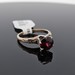 - Center Stone Shape/Size: Round Garnet