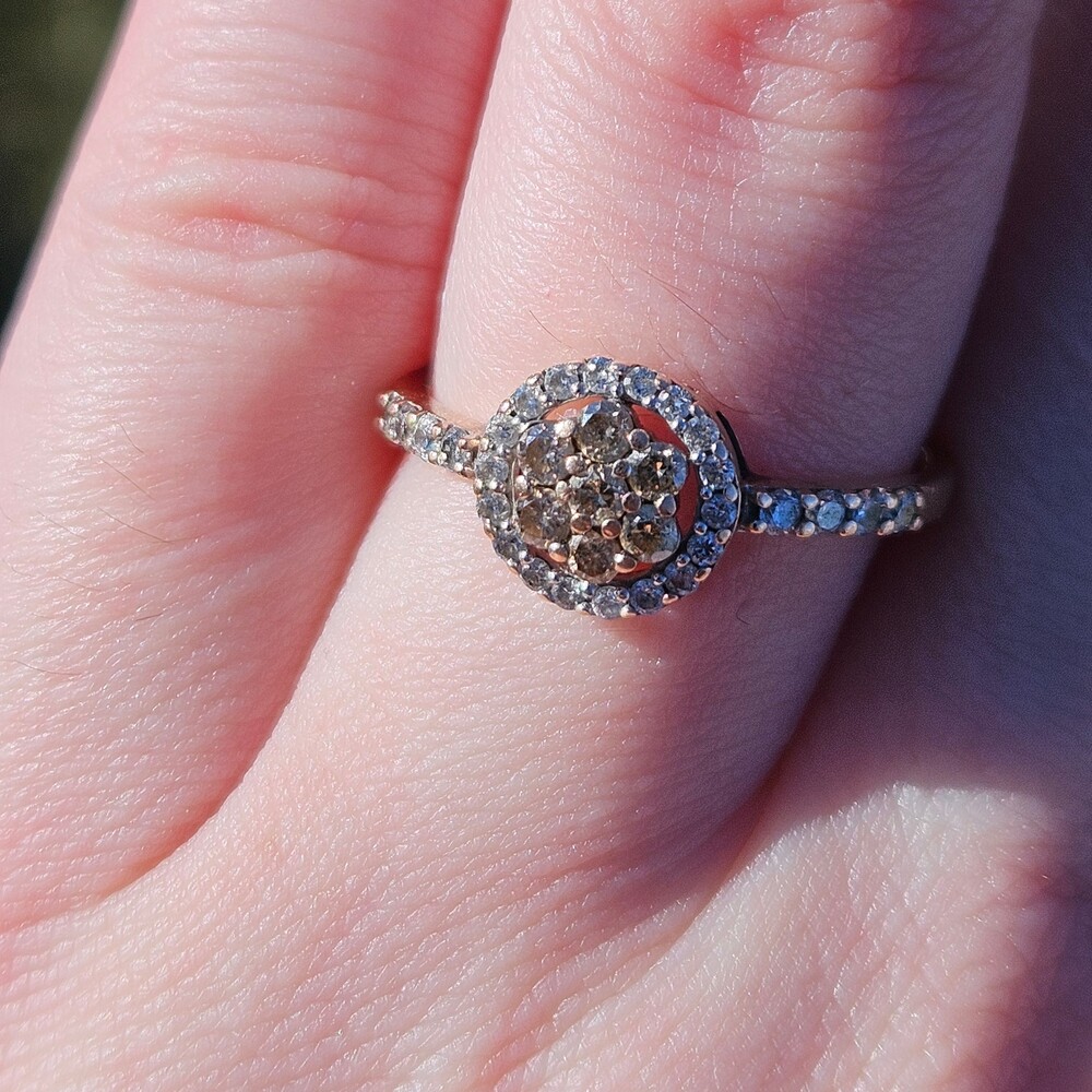 - Total Diamond Weight: 0.14TCW in brown diamonds
