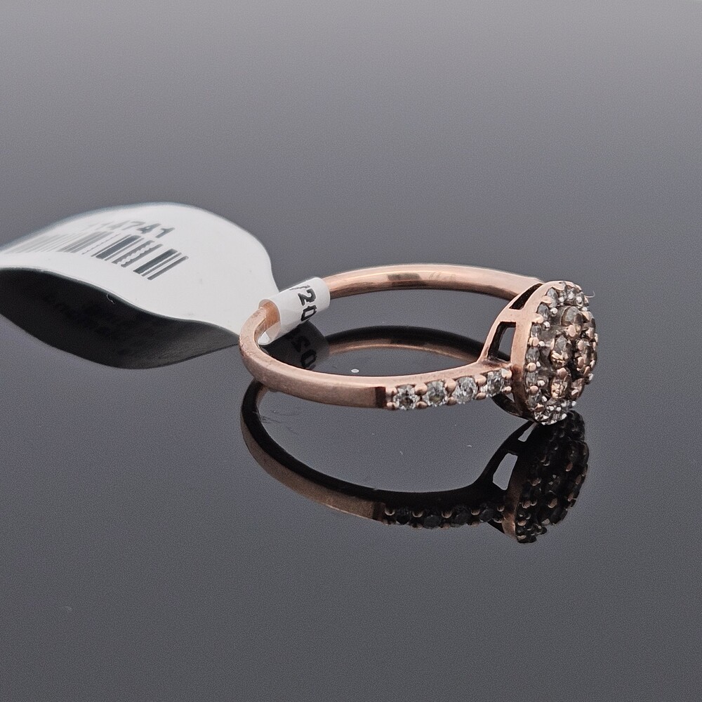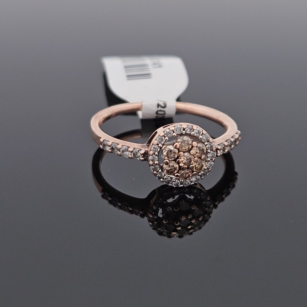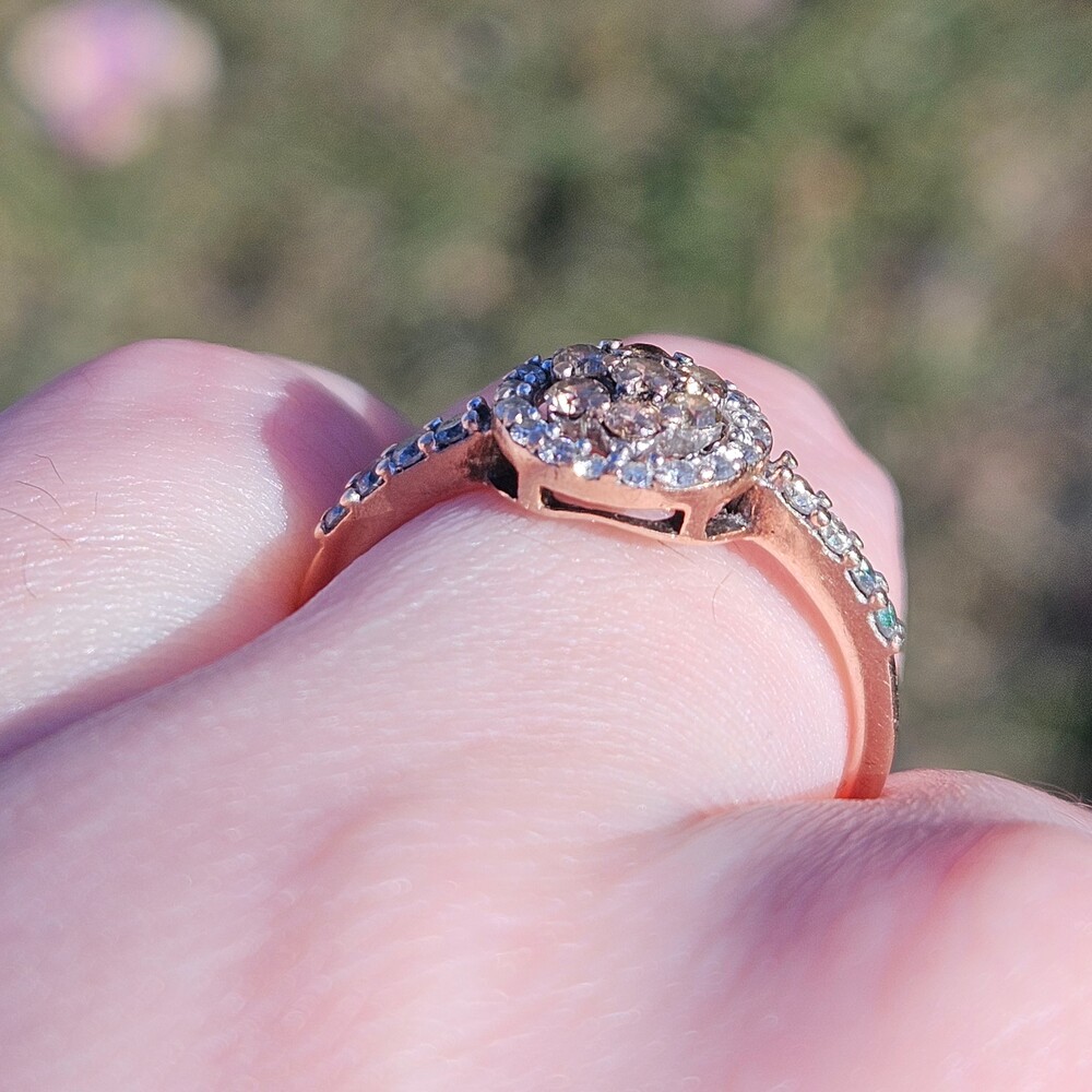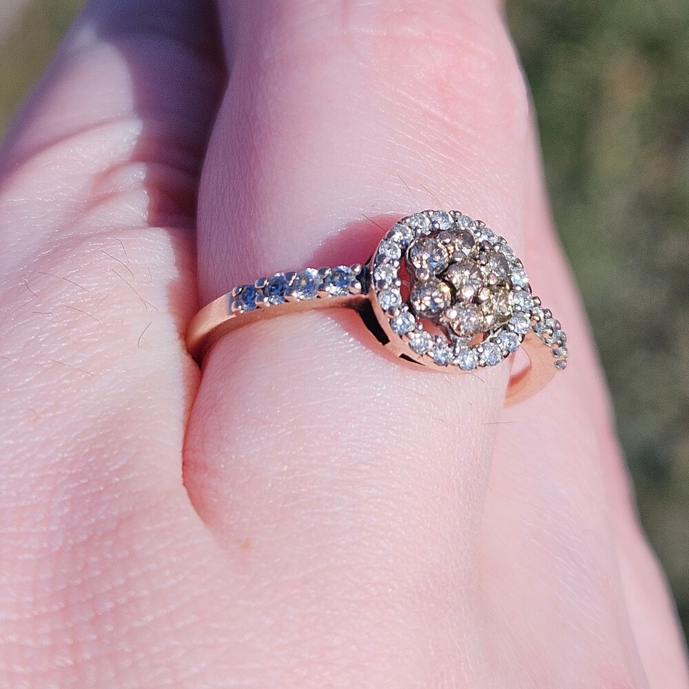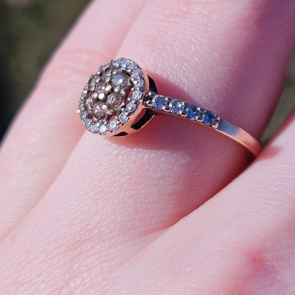 10K Yellow Gold Brown & White Diamond Halo Cocktail Ring Size 7