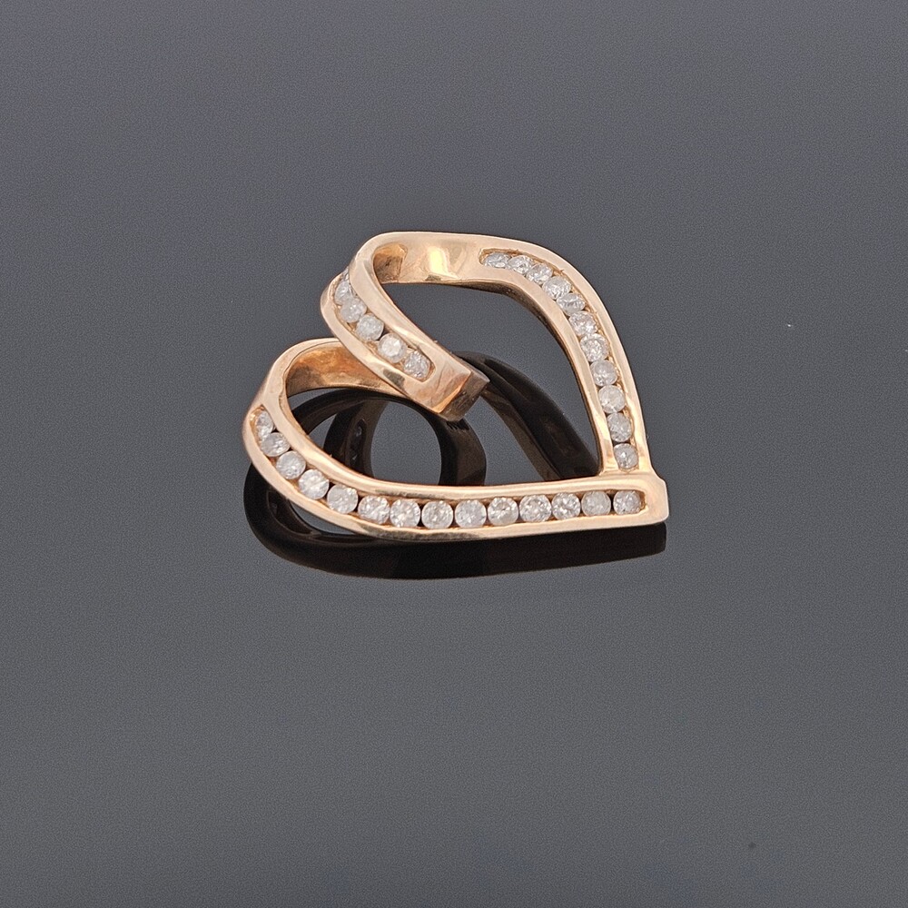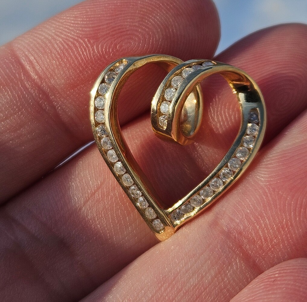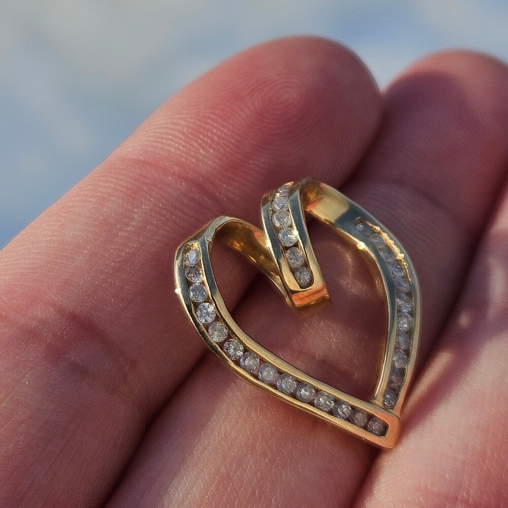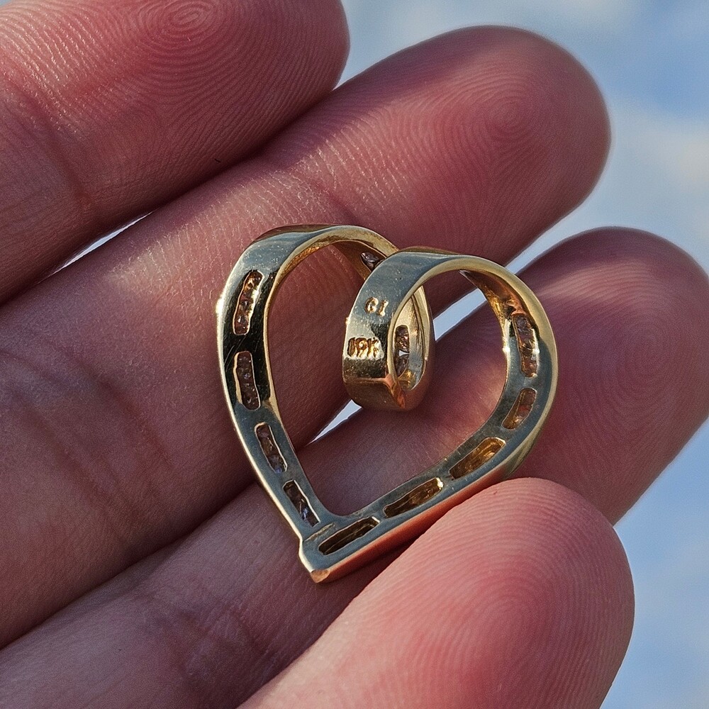 10K Yellow Gold Diamond Channel Set Heart Pendant Slide Charm 20x20mm