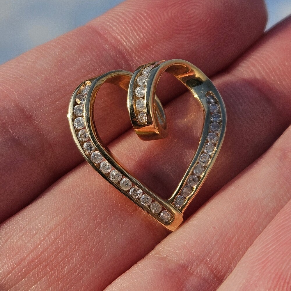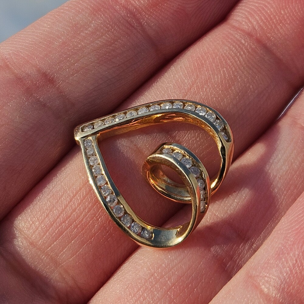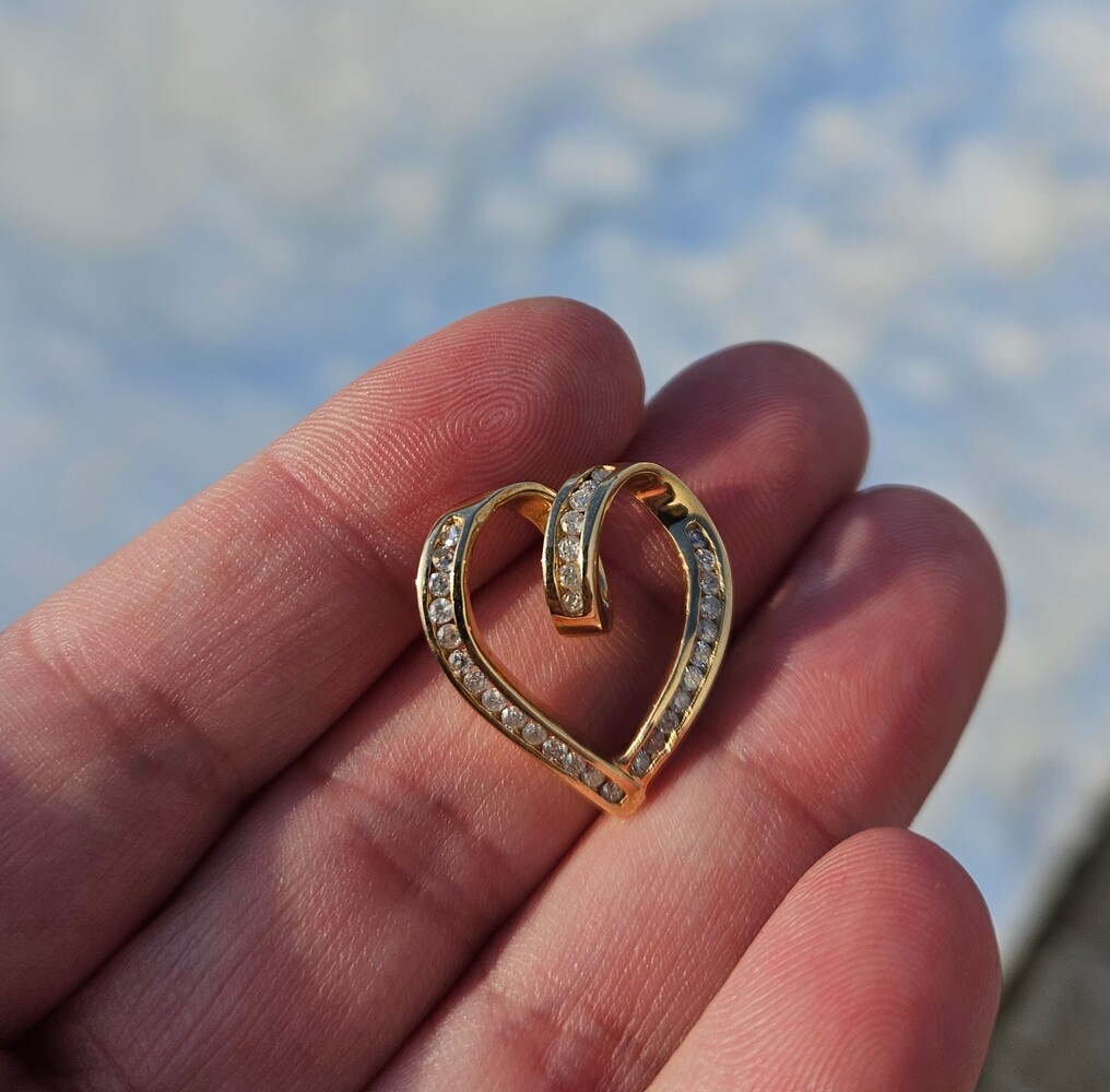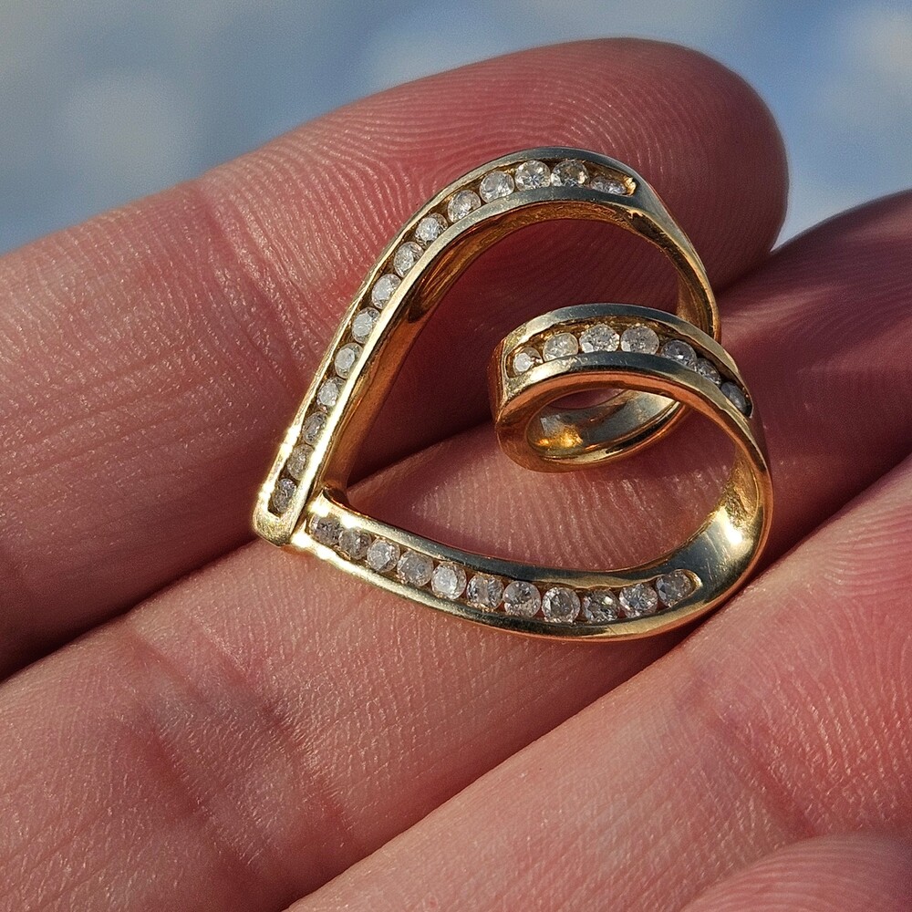 10K Yellow Gold Diamond Channel Set Heart Pendant Slide Charm 20x20mm