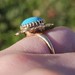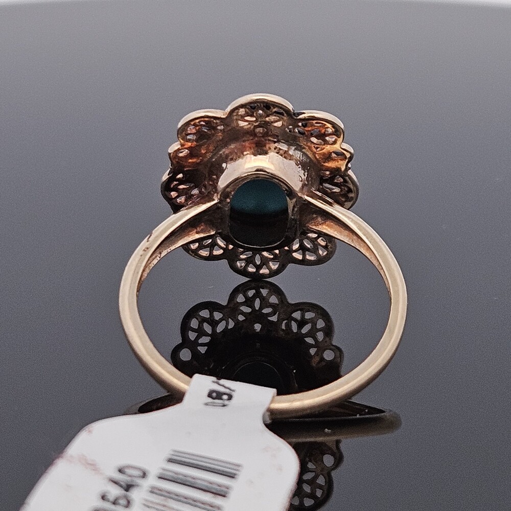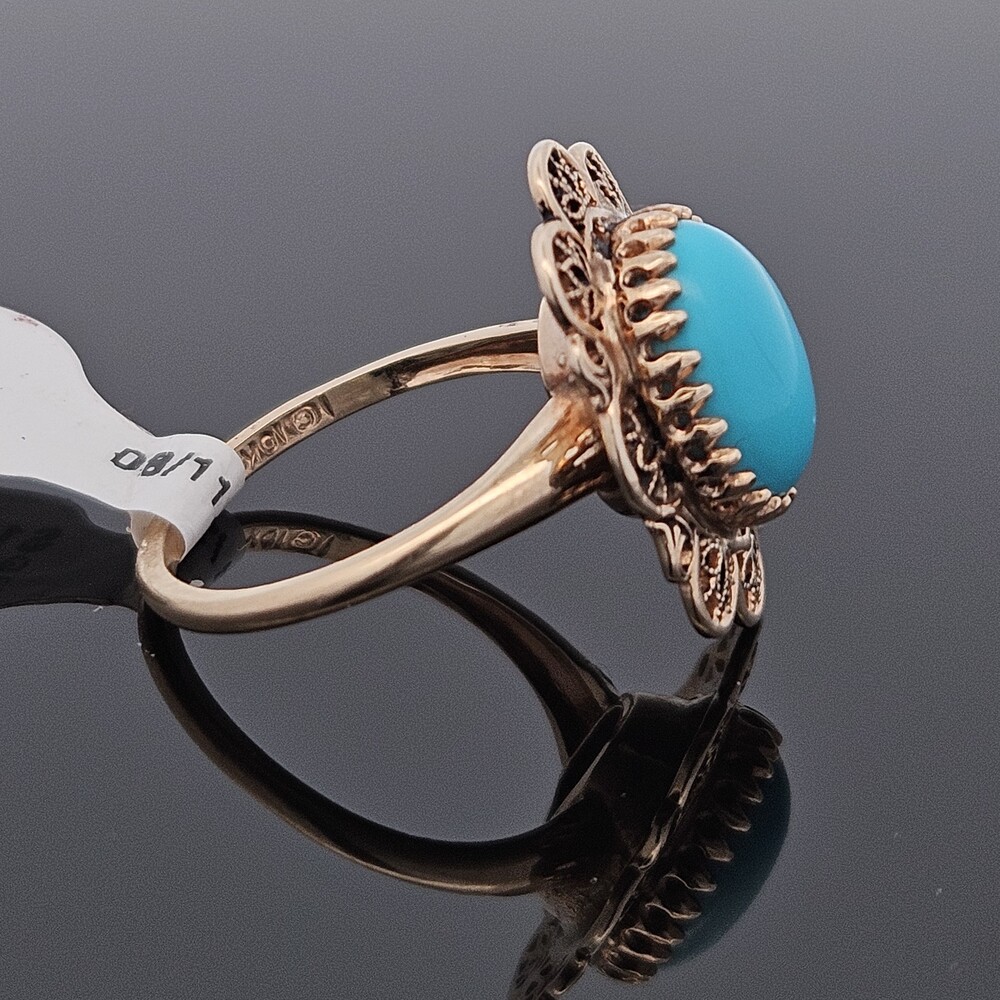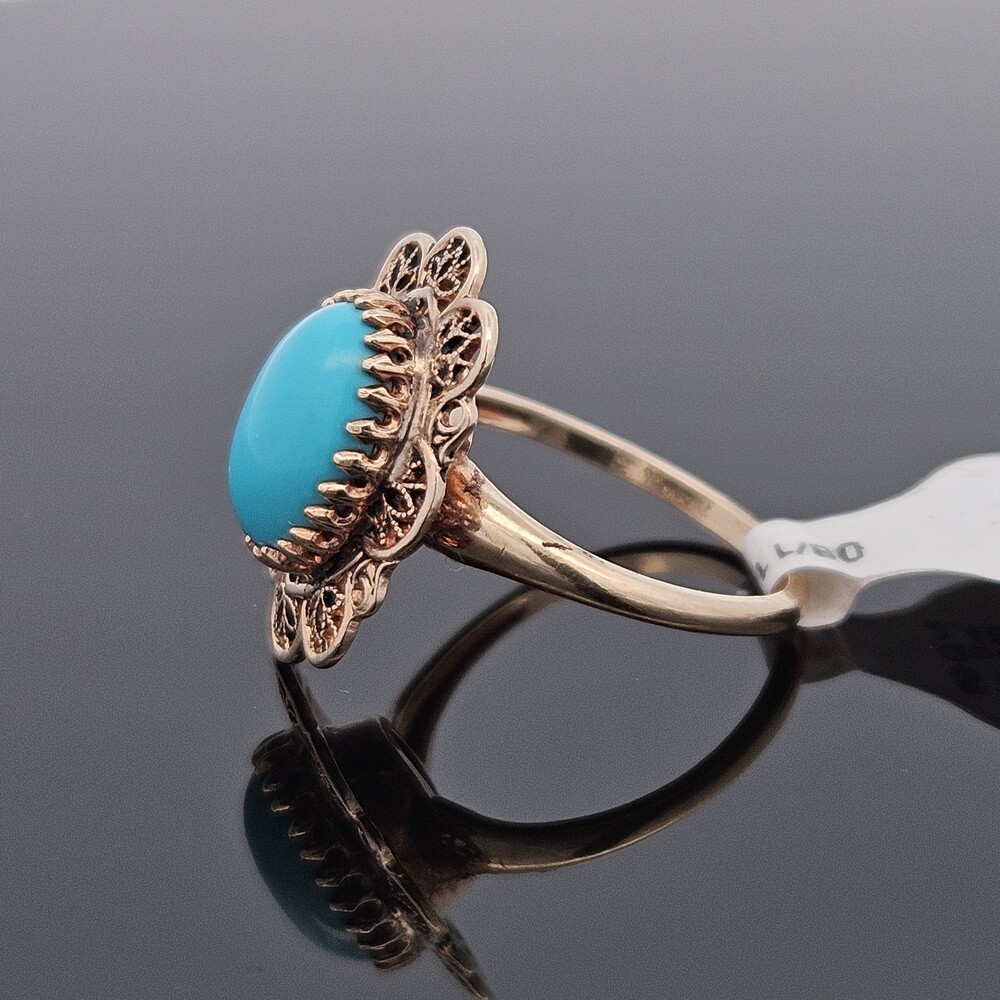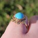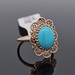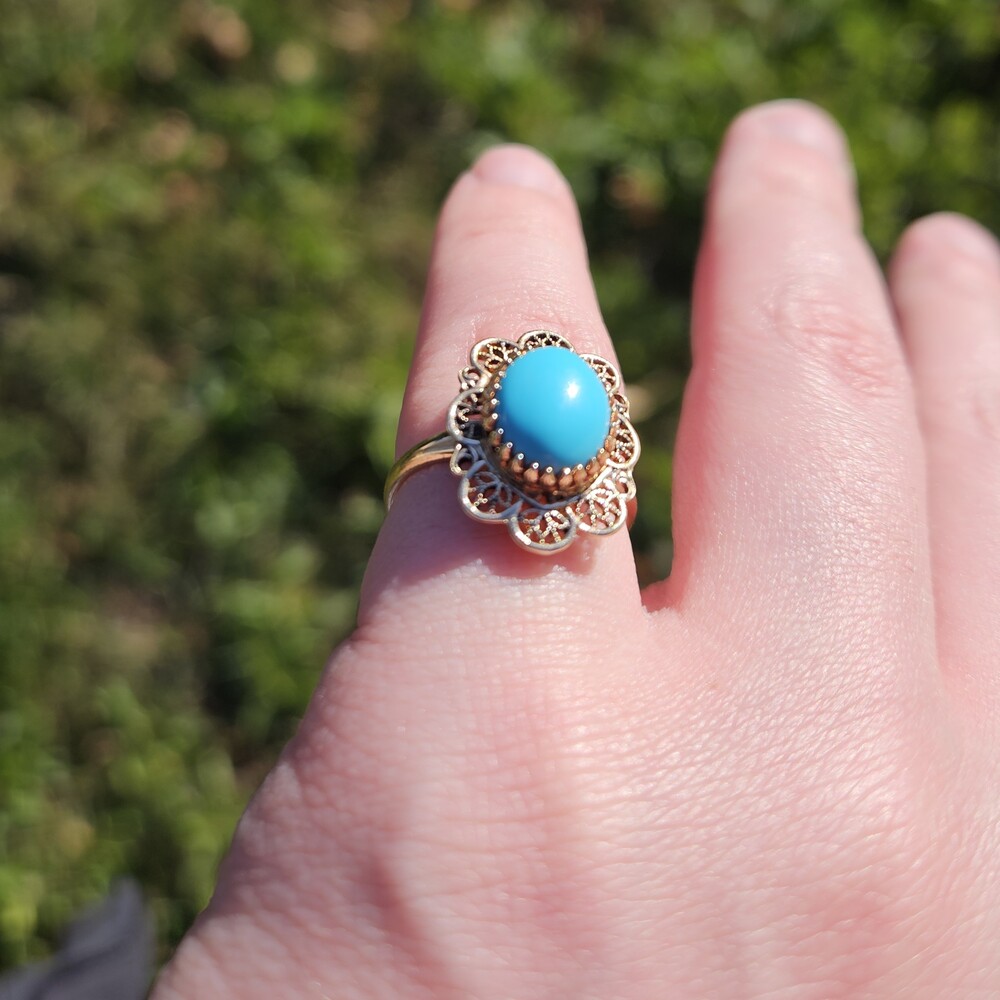 10K Yellow Gold Filigree Lace Flower Turquoise Stone Cocktail Ring Size 5.25