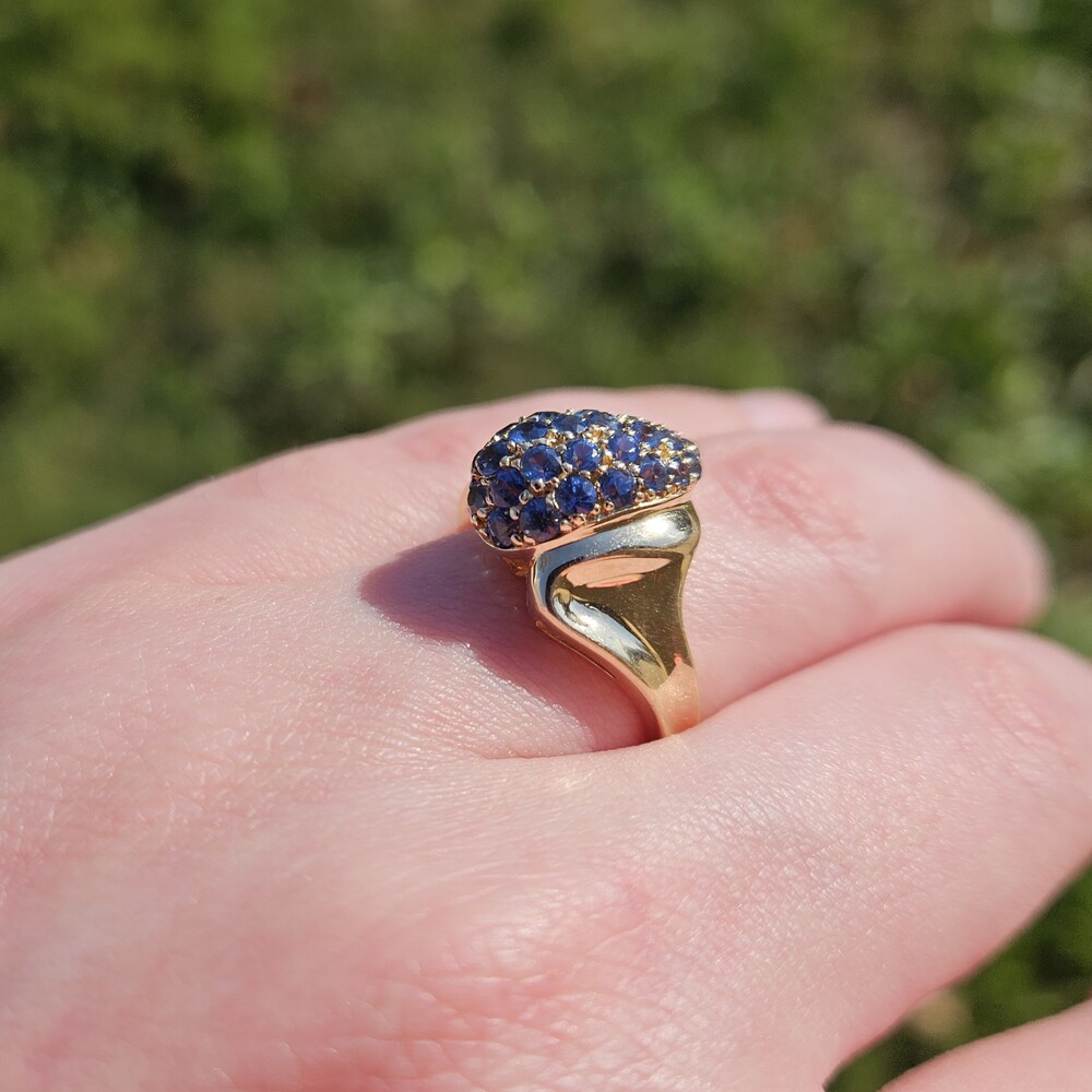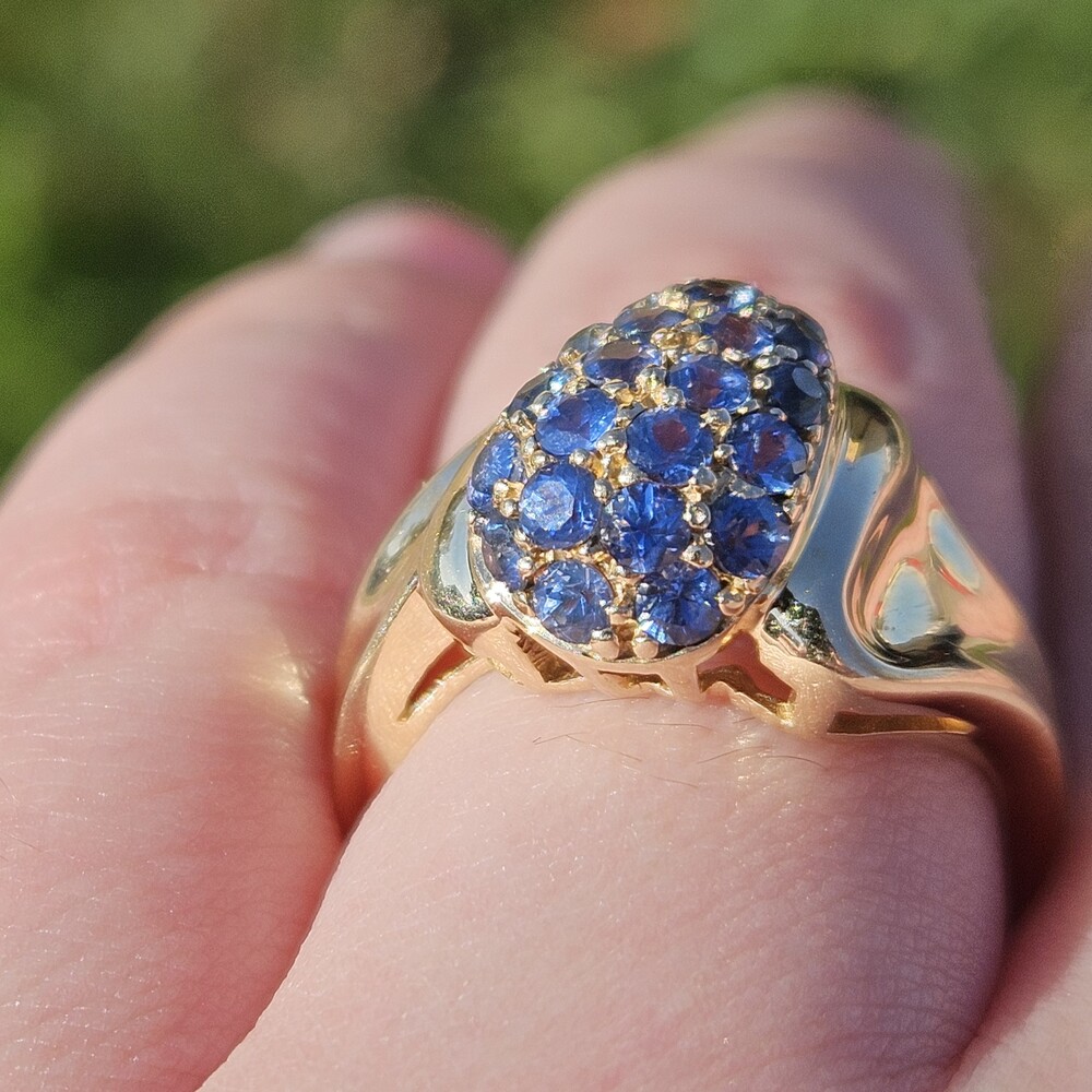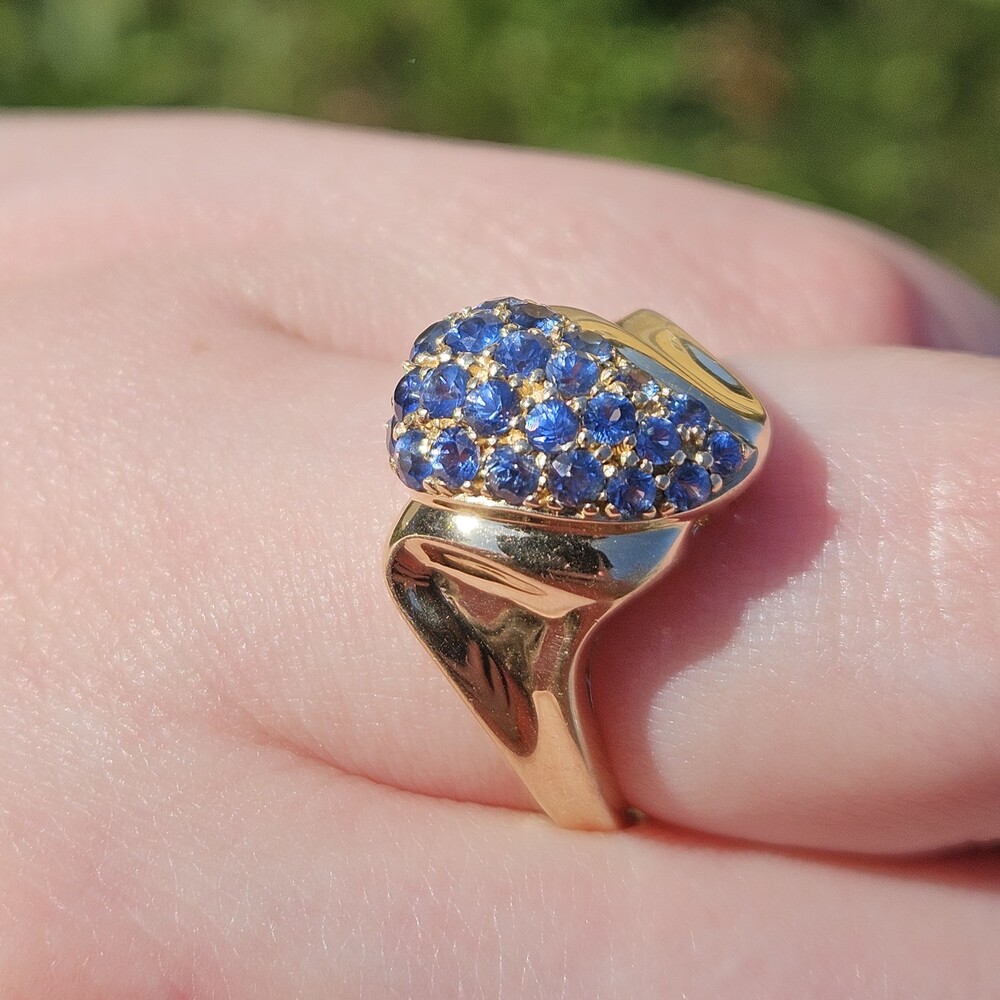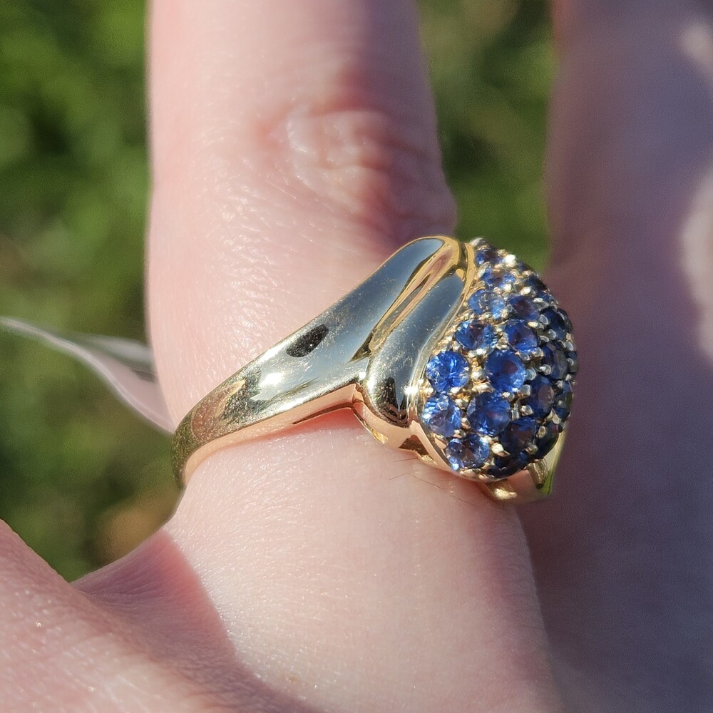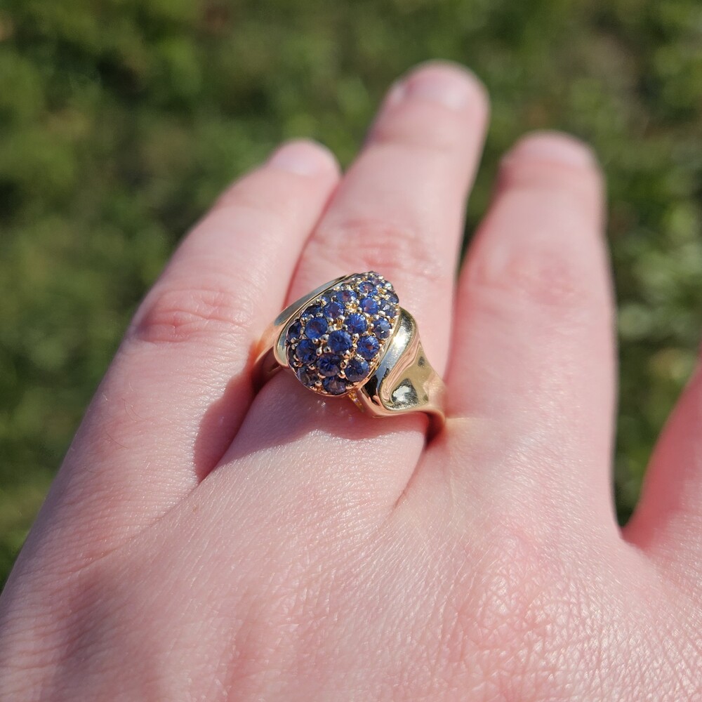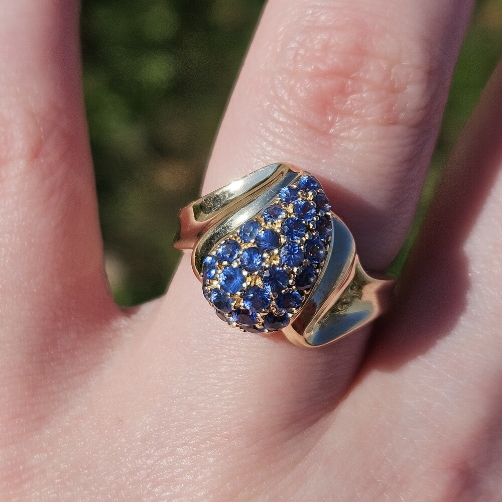 10K Yellow Gold Natural Sapphire Bypass Pear Shape Cocktail Cluster Ring Size 7