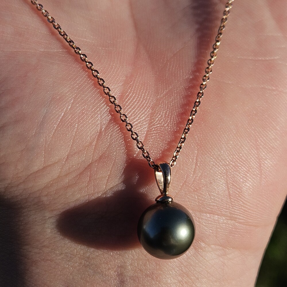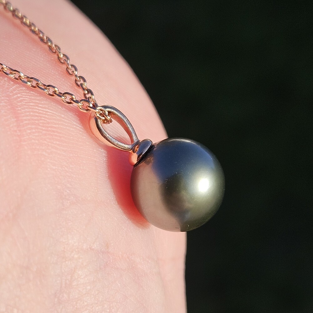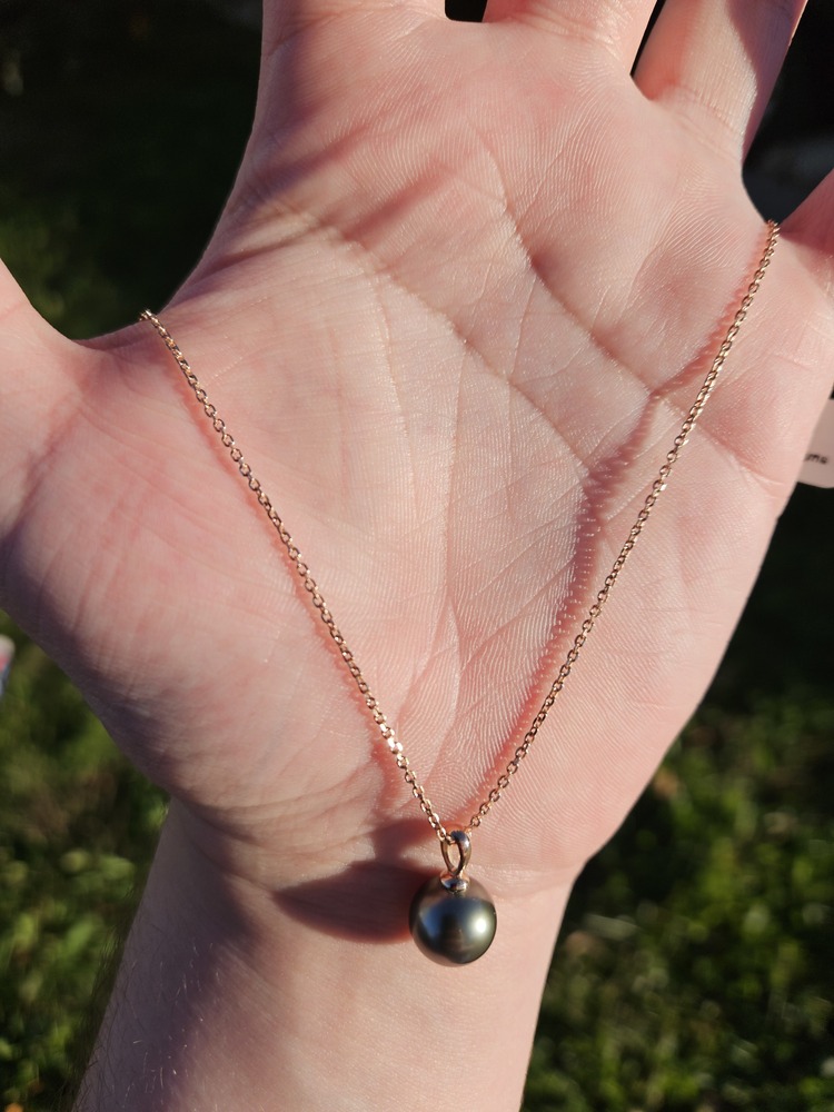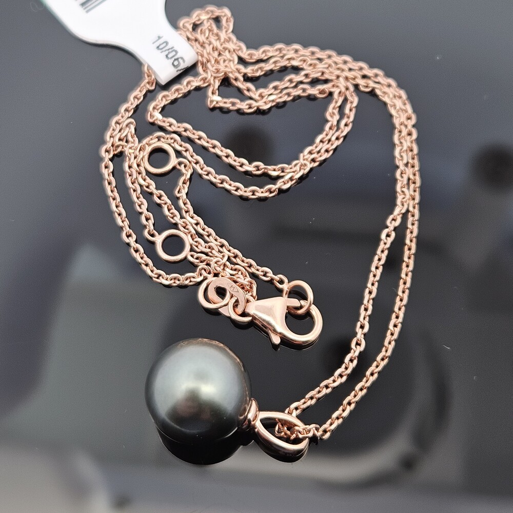 14K Rose Gold Chain Link Necklace with 14K Rose Gold Tahitian Pearl 10-11mm Pearl Pendant Charm 16-18 inches