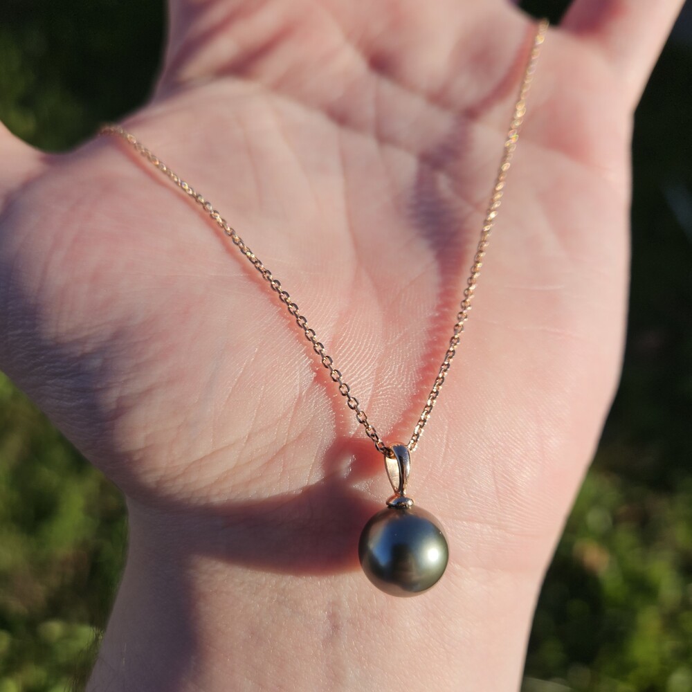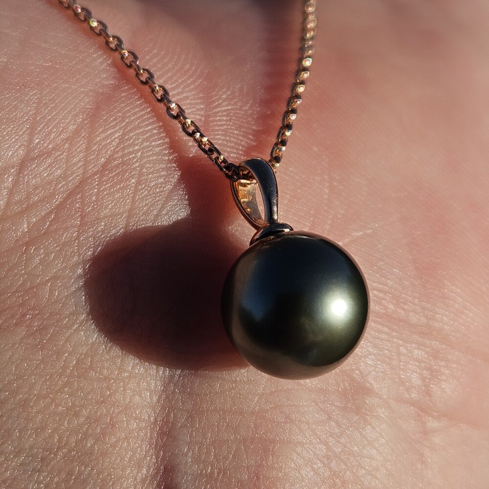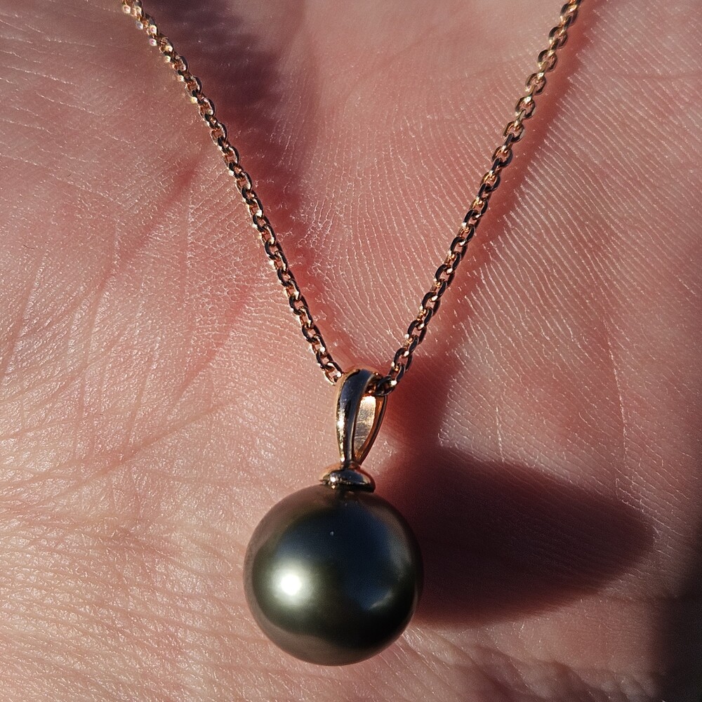 14K Rose Gold Chain Link Necklace with 14K Rose Gold Tahitian Pearl 10-11mm Pearl Pendant Charm 16-18 inches