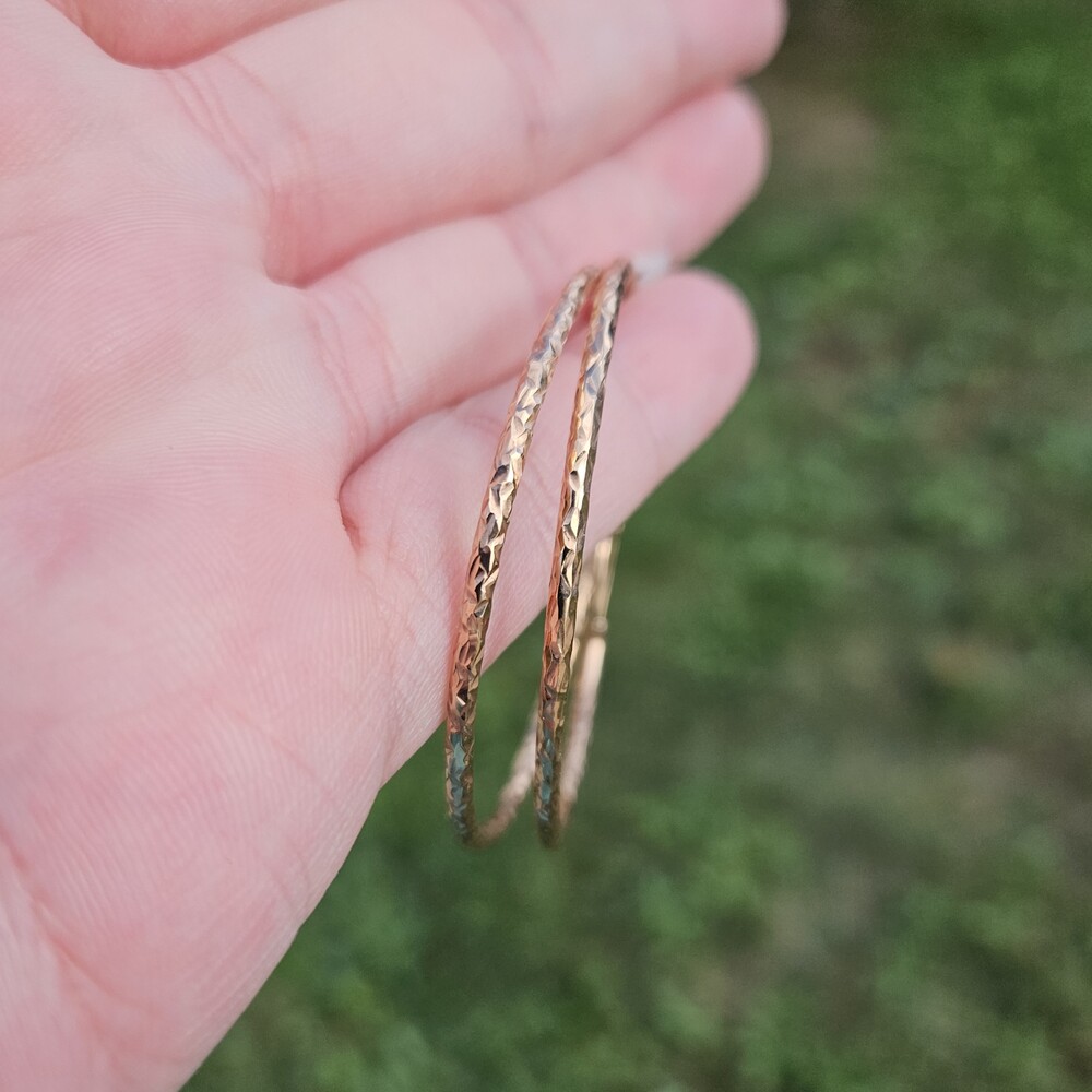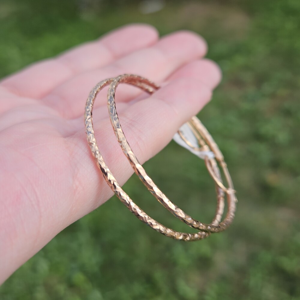 14K Rose Gold Diamond Cut 2 Inch Diameter Large Hoop Earrings 2.4 Grams