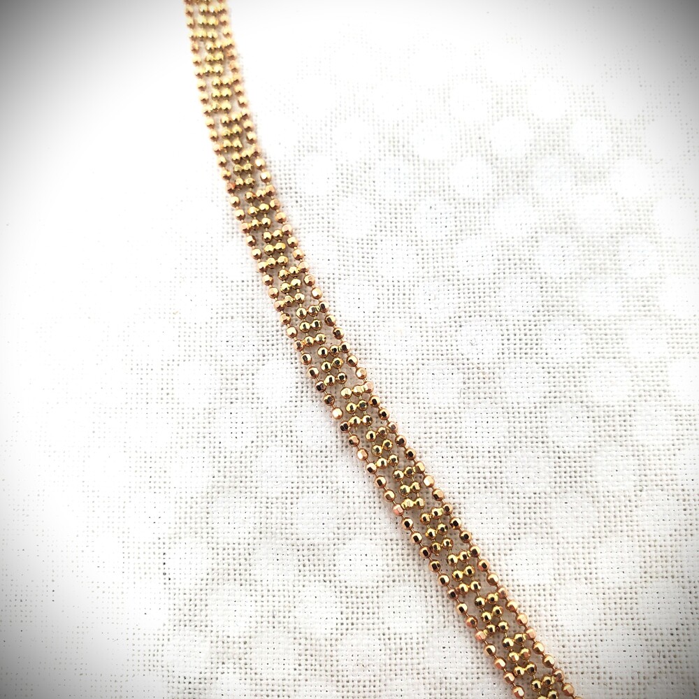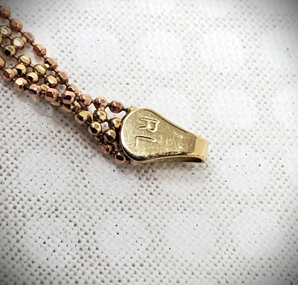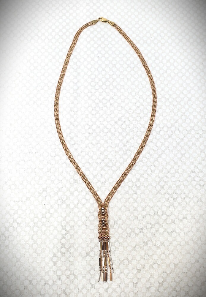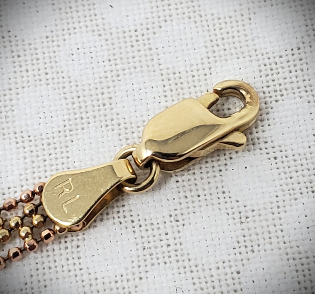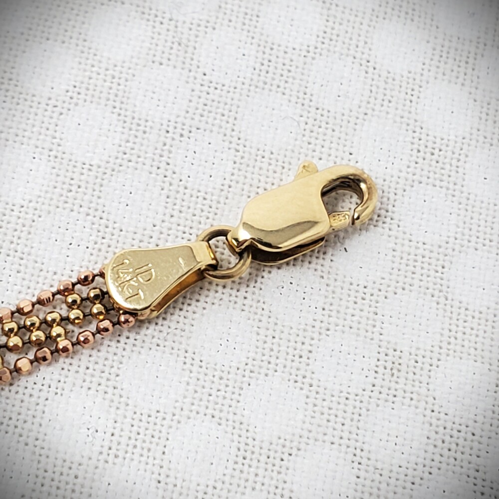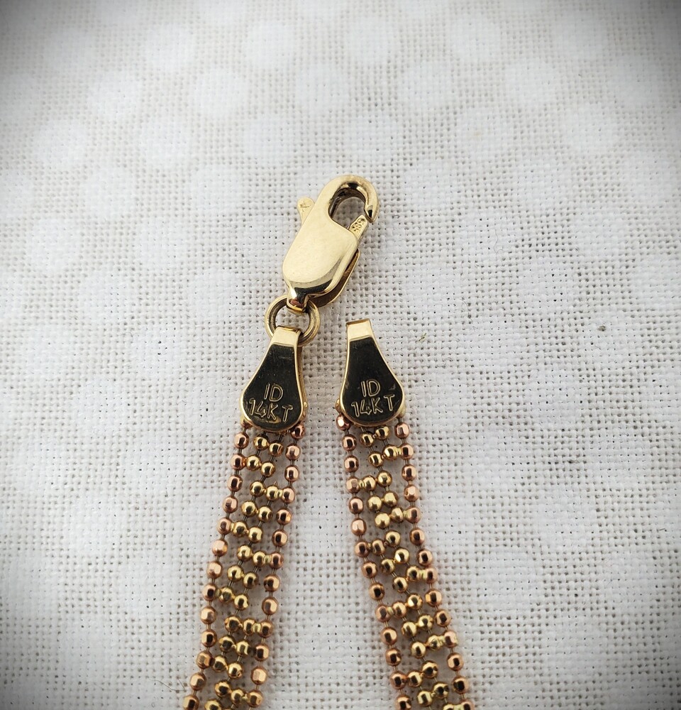 14K Rose, White & Yellow Gold Tri-Color Beaded Lariat Necklace - 17" - 8.2 Grams