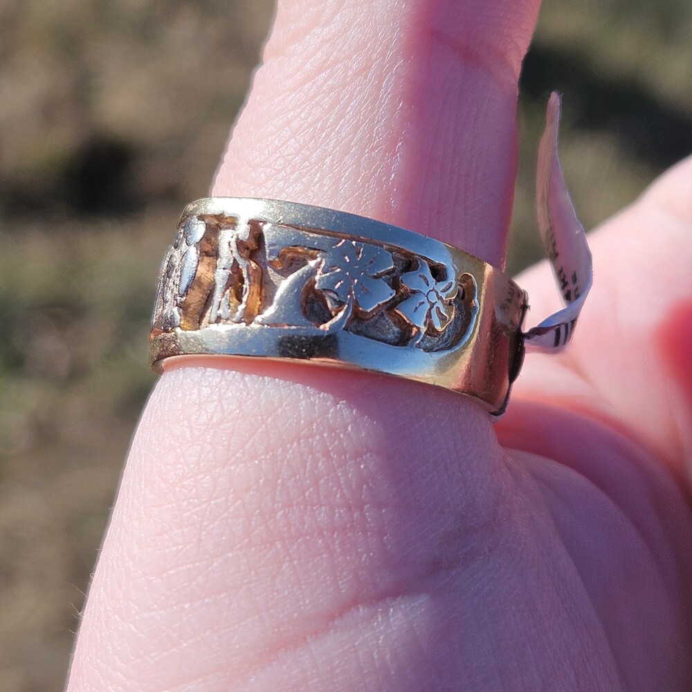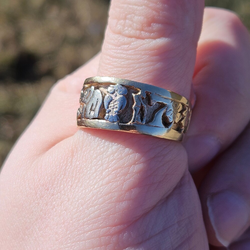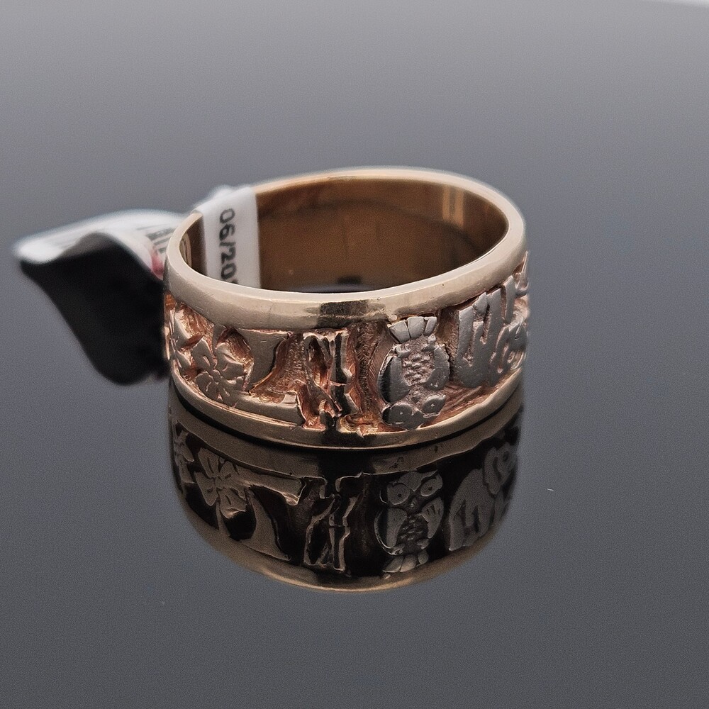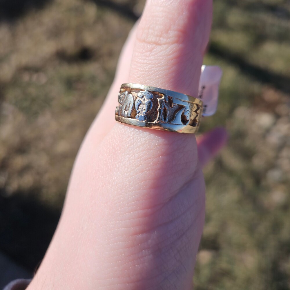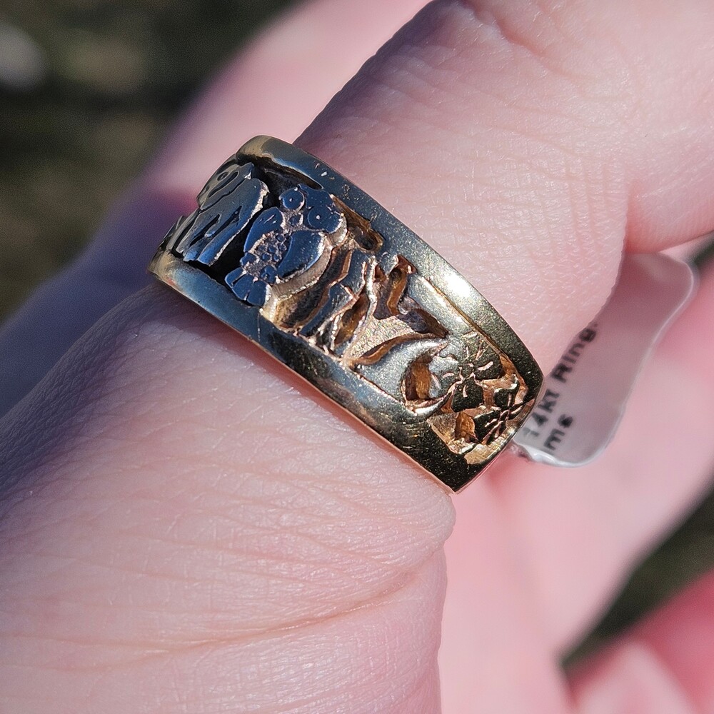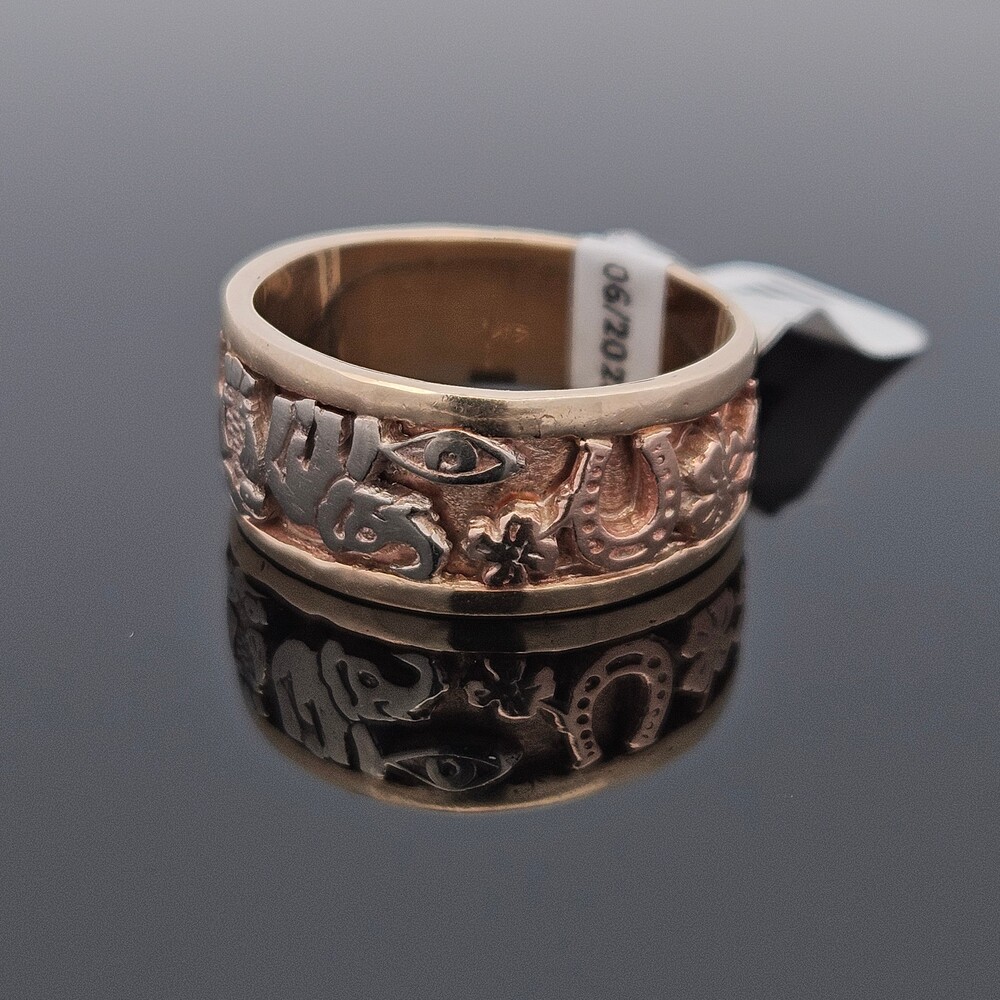 14K Tri Color Gold Good Luck Lucky 7 Elephant Horseshoe Wide Band Ring Size 11
