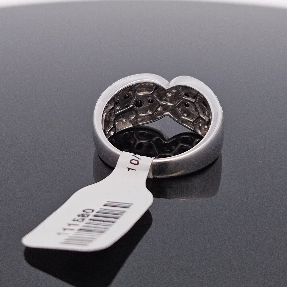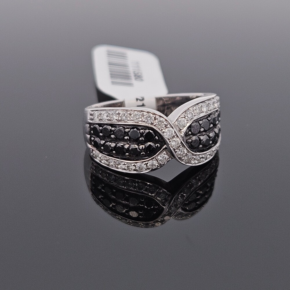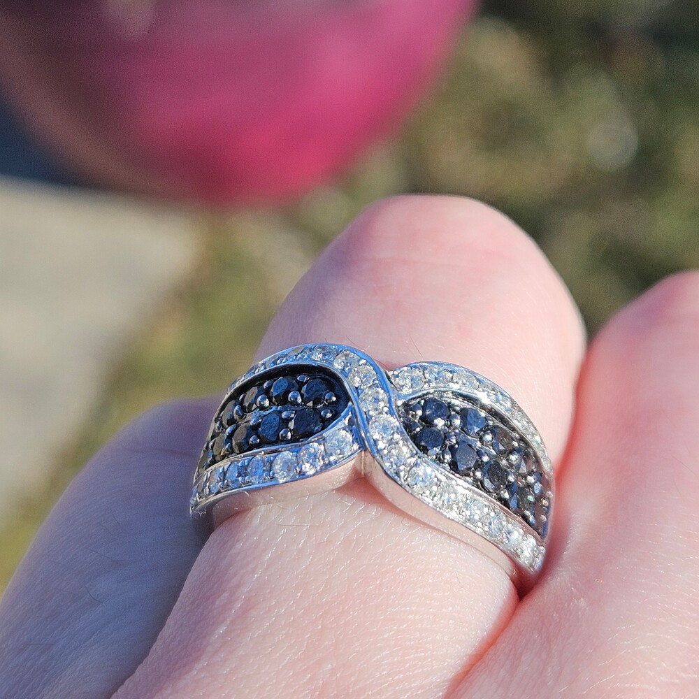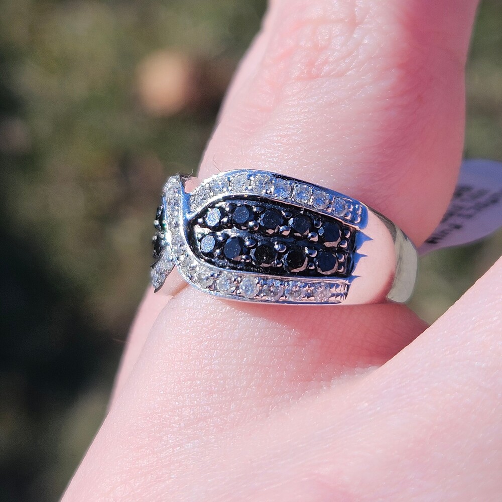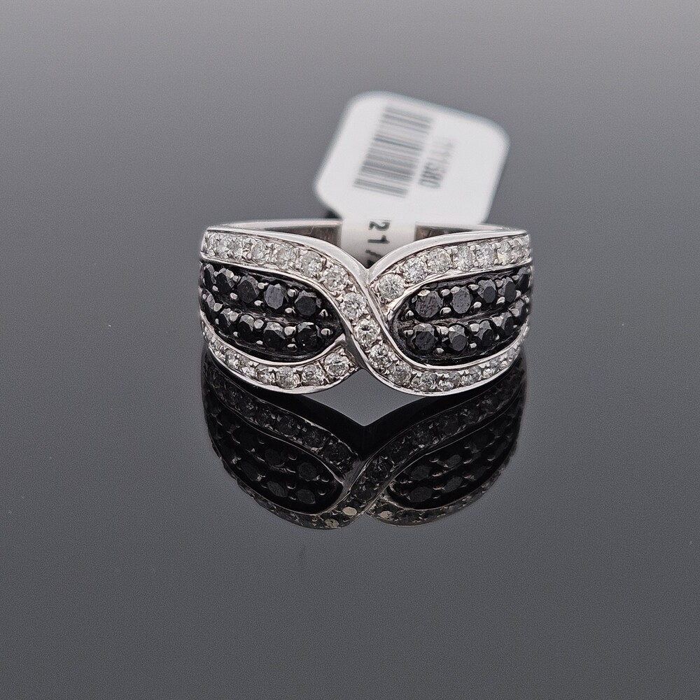 14K White Gold Black & White Diamond X Bypass 10mm Wide Band Ring Size 7