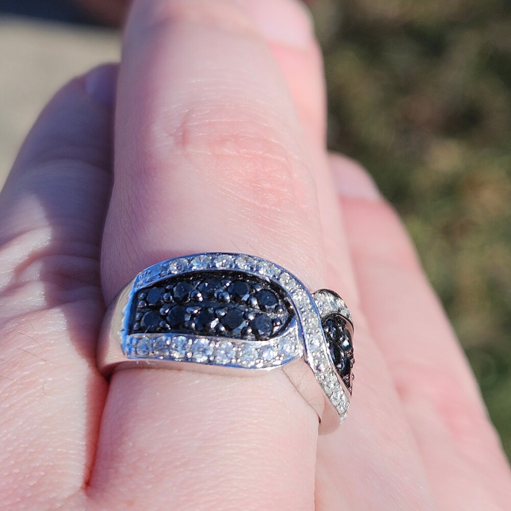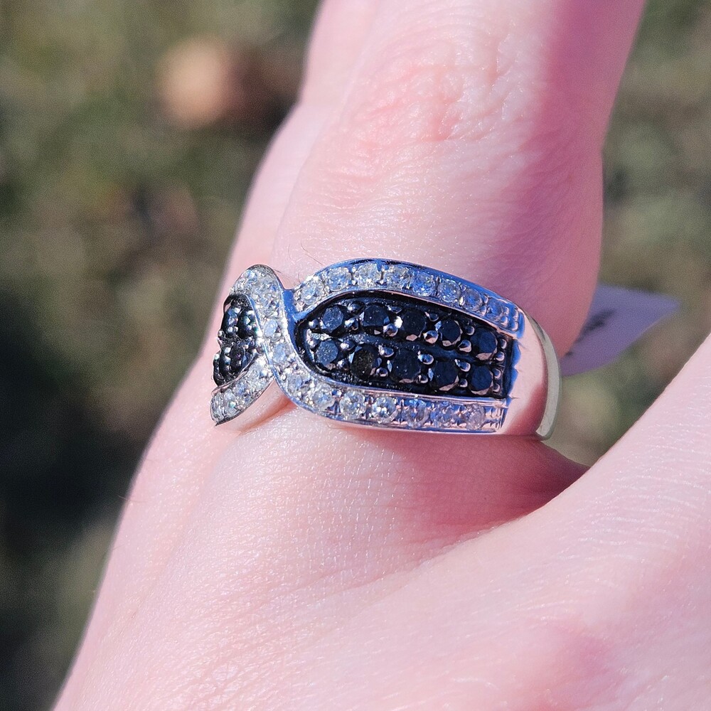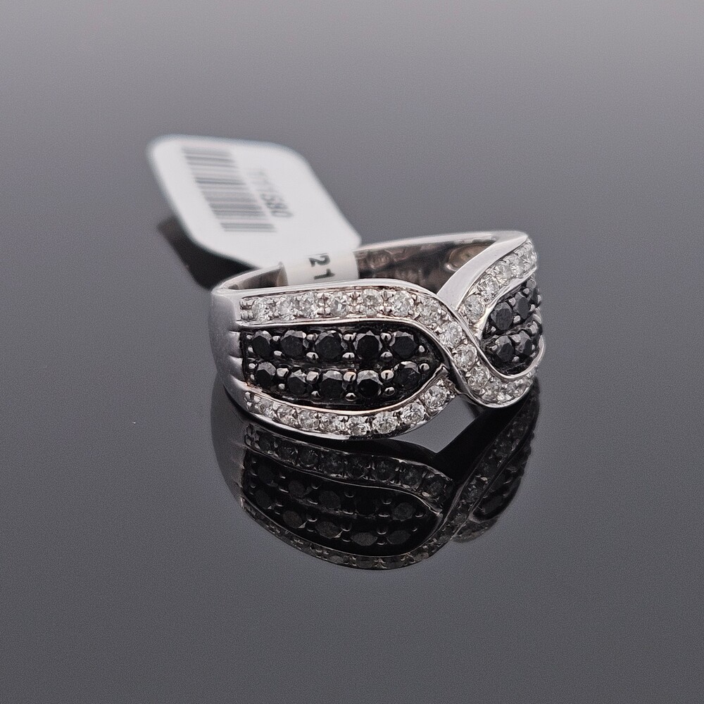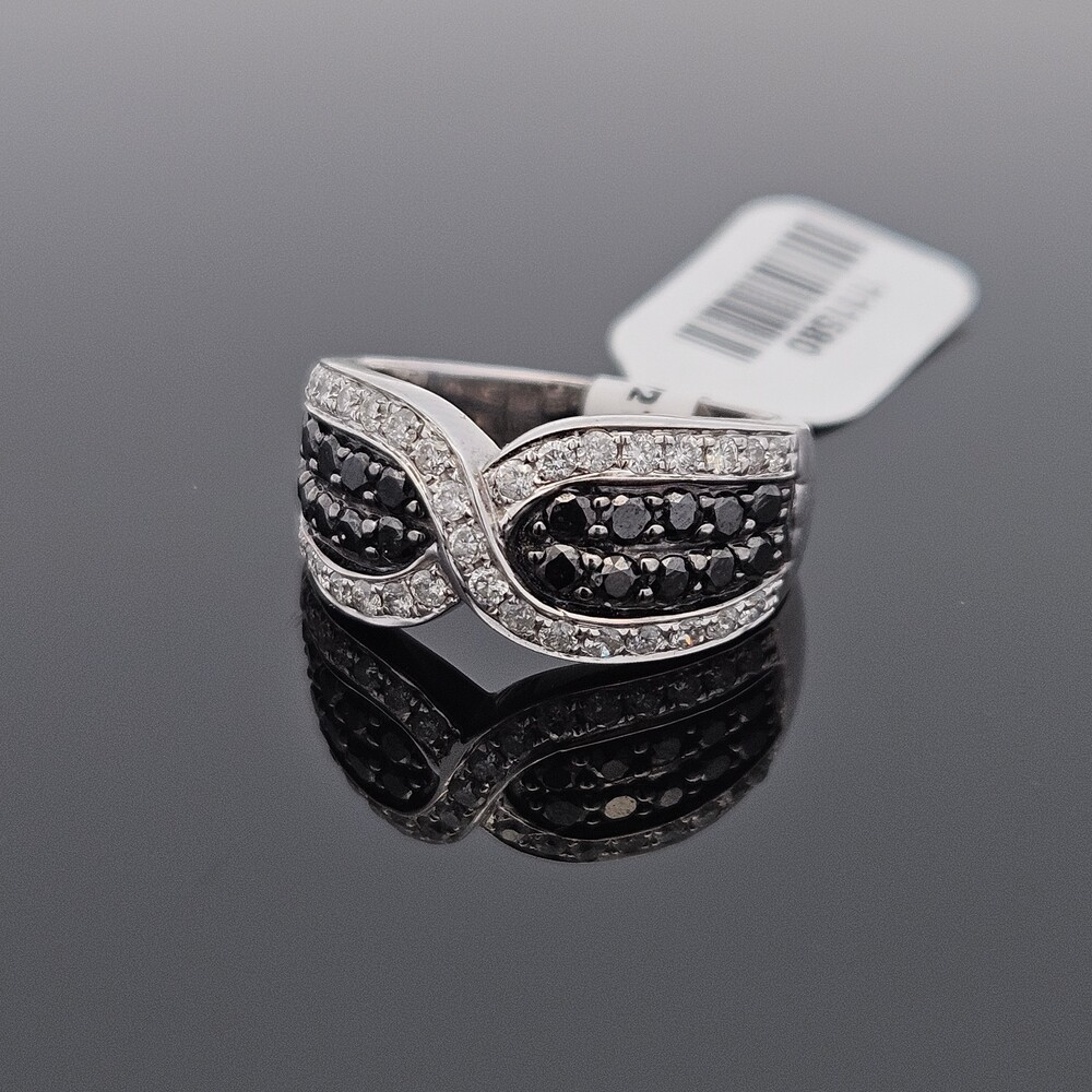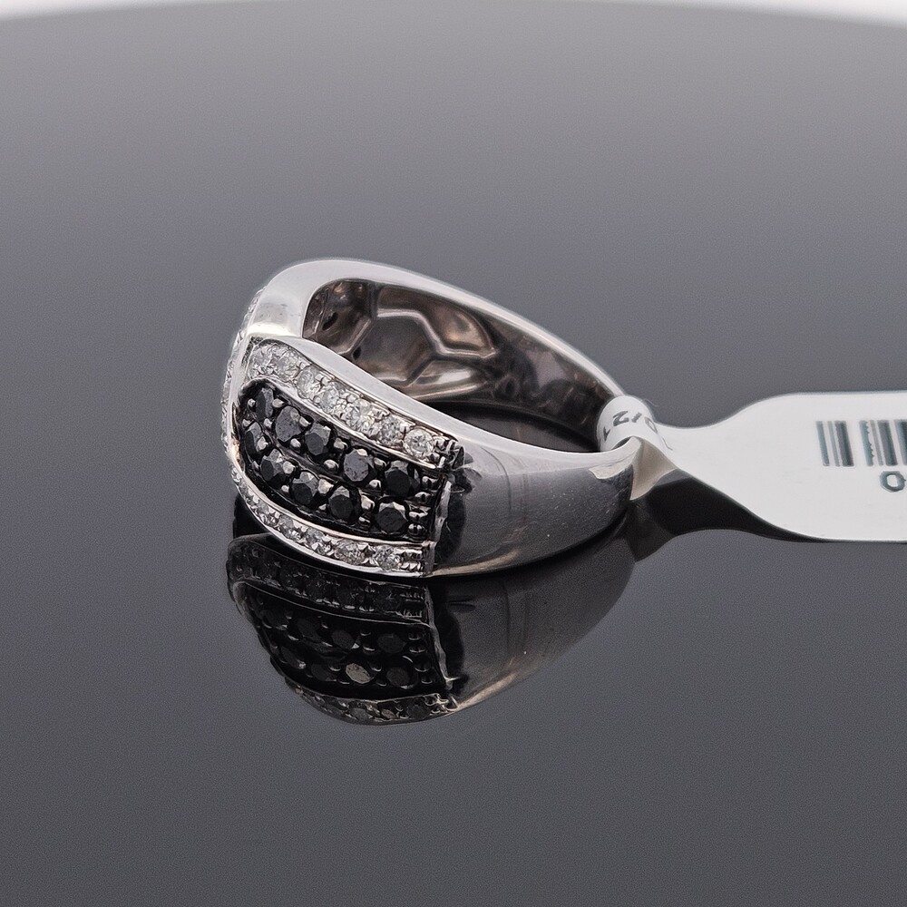 14K White Gold Black & White Diamond X Bypass 10mm Wide Band Ring Size 7