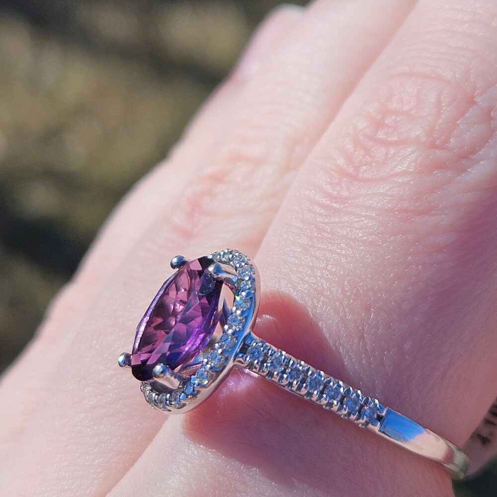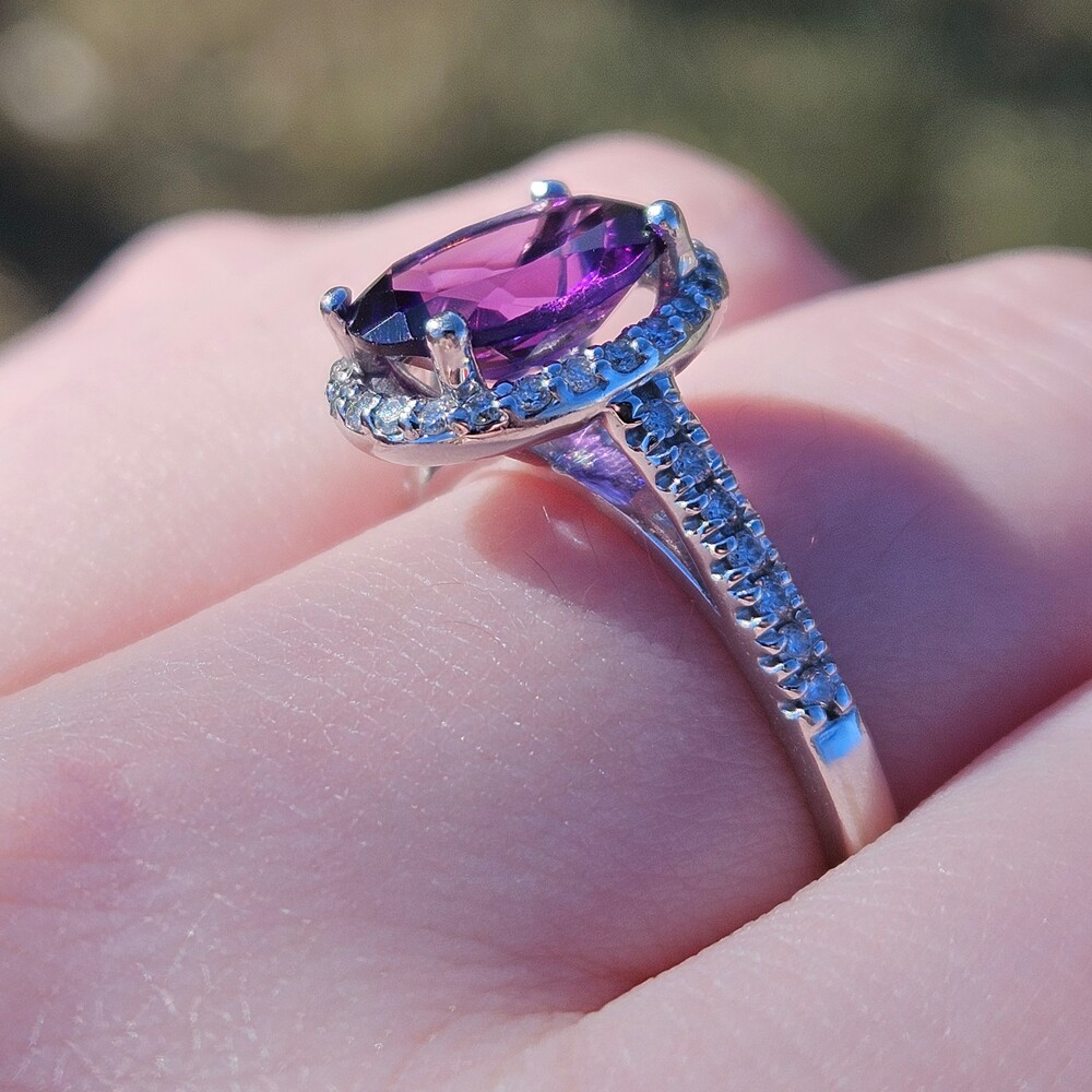 - Center Stone Shape/Size: 11x8mm Oval Amethyst