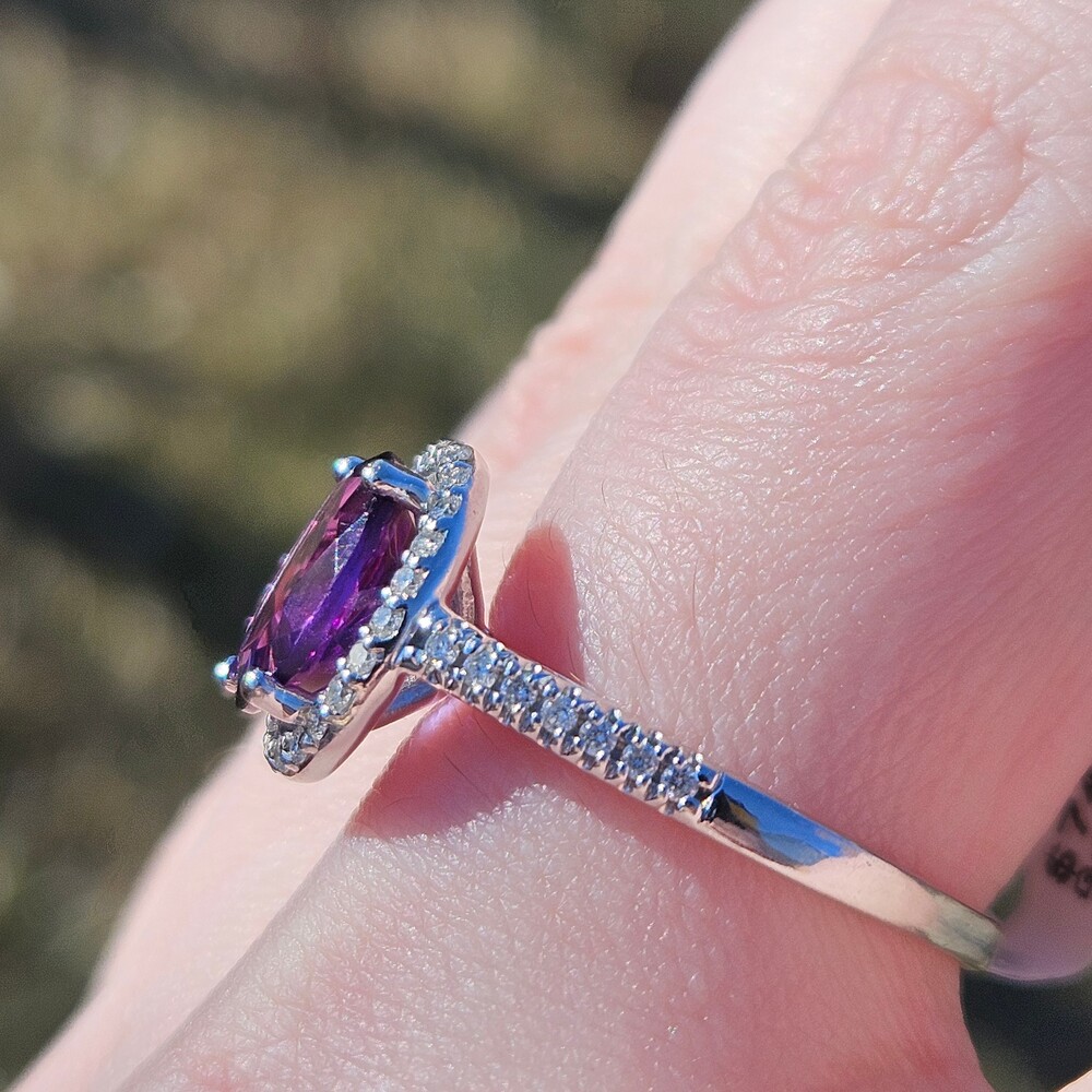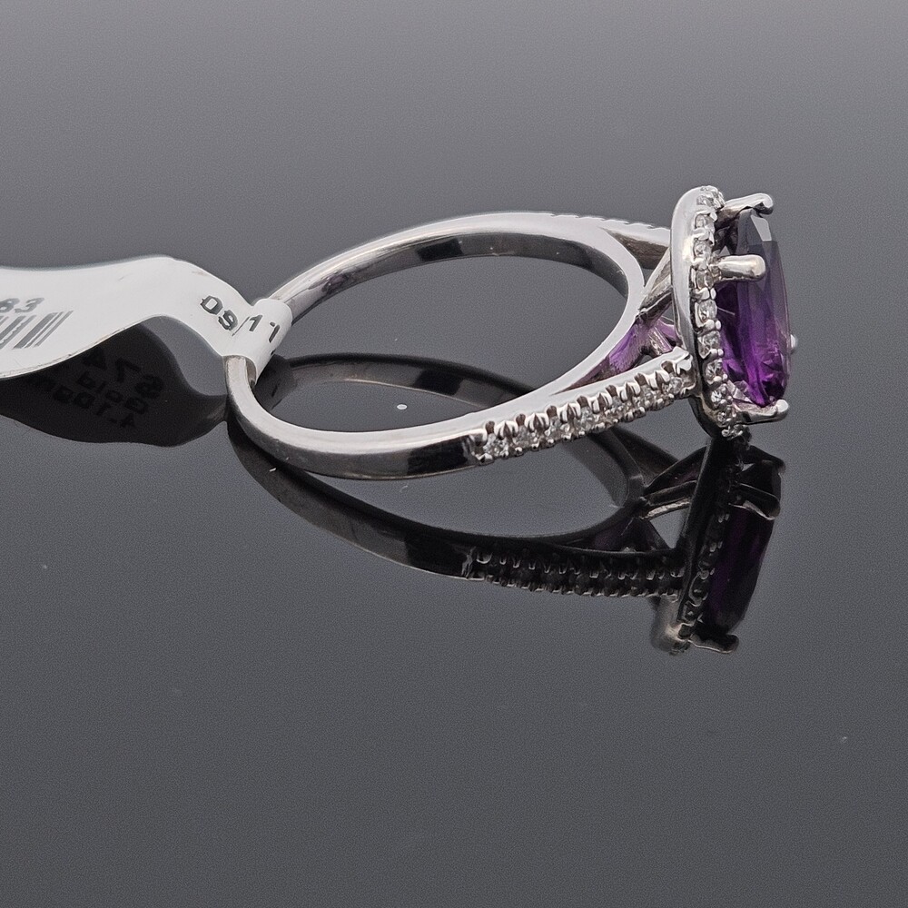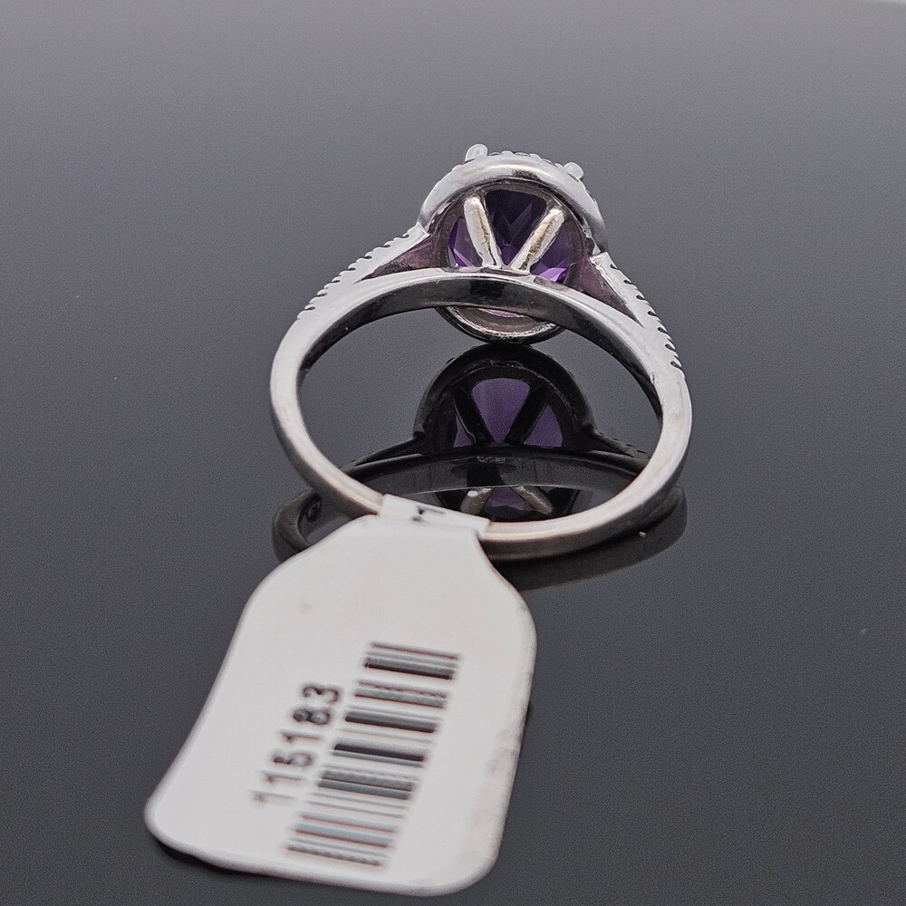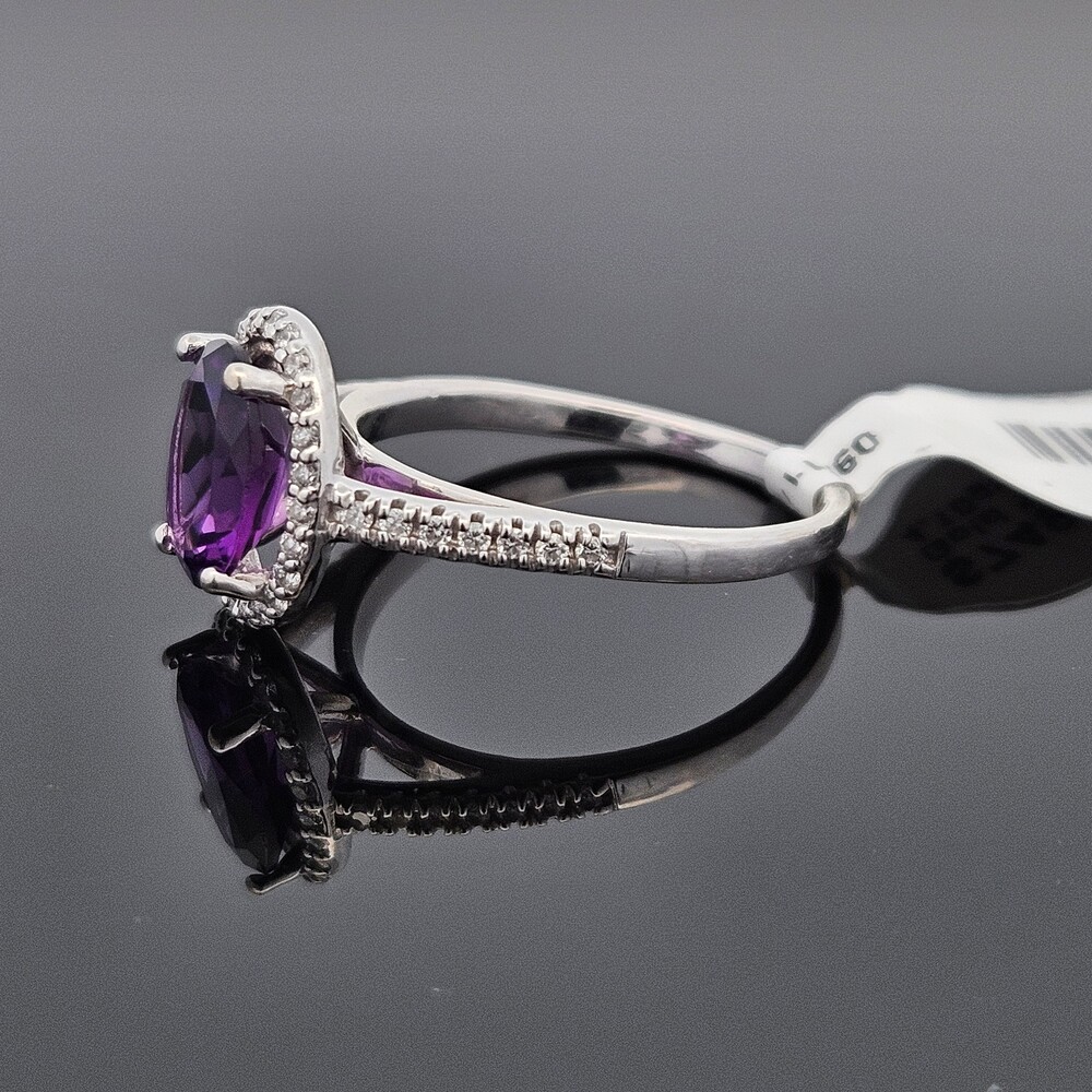 14K White Gold Diamond Halo Amethyst Cocktail Statement Ring Size 8.5