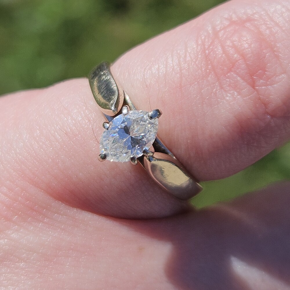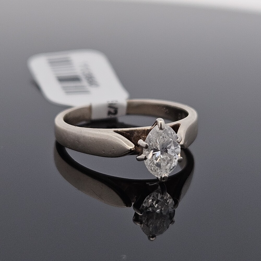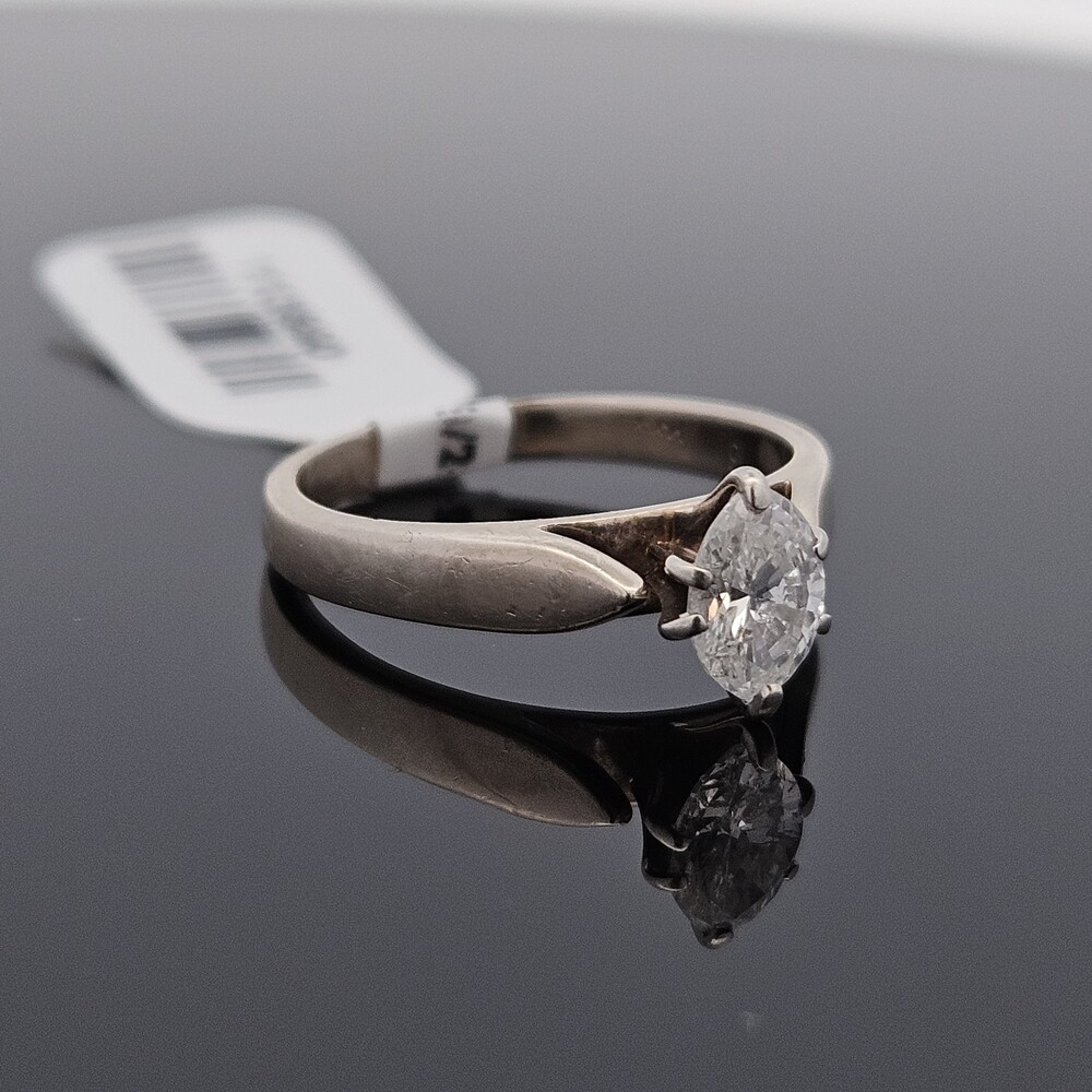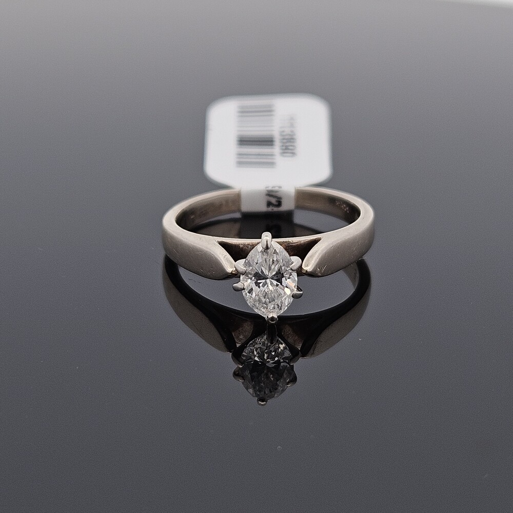 14K White Gold "Oval" Curved Marquise 1/2Ct Diamond Engagement Ring Size 6