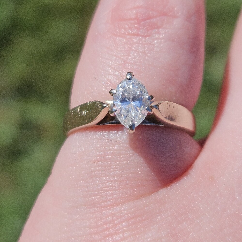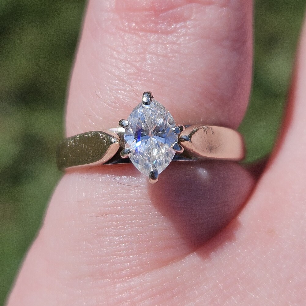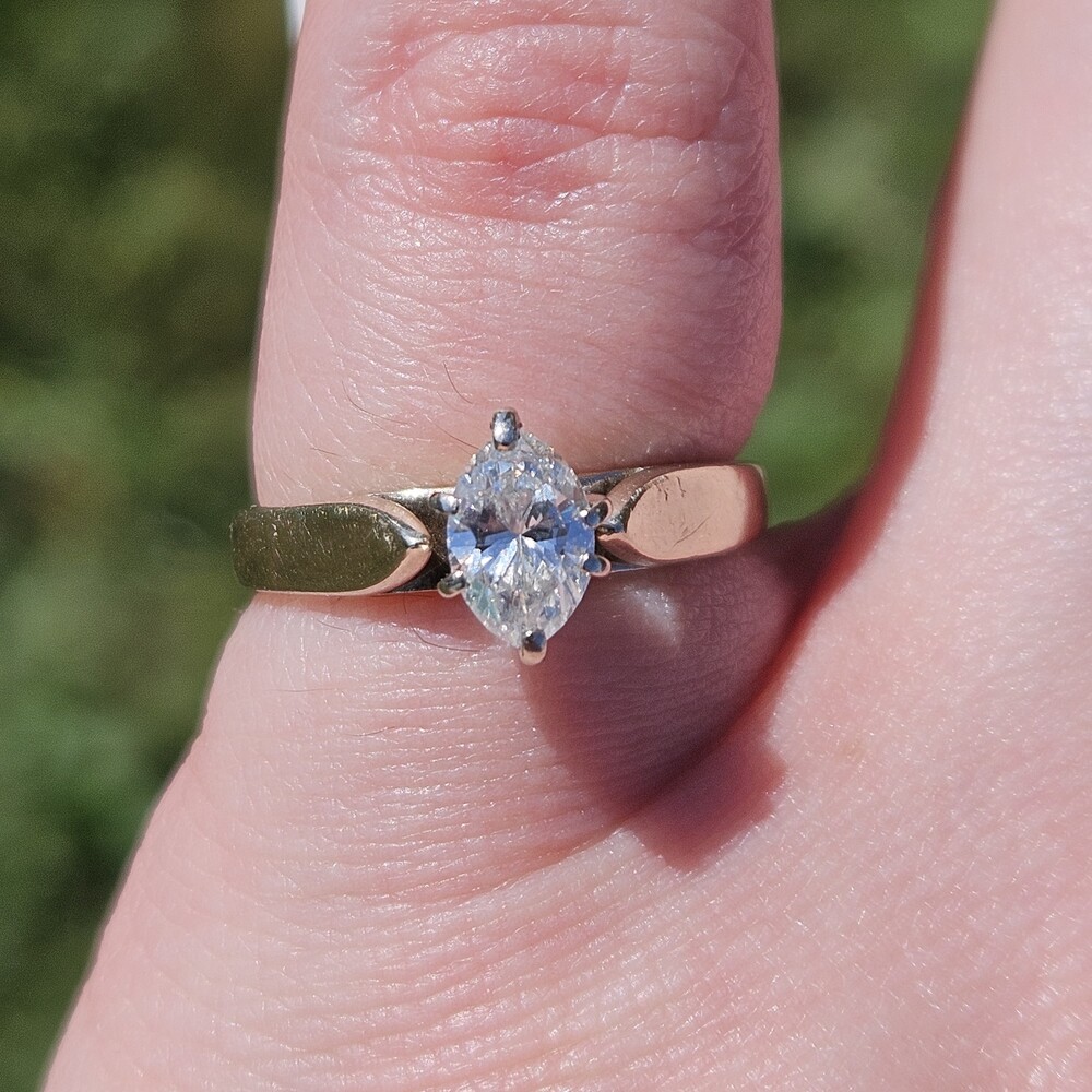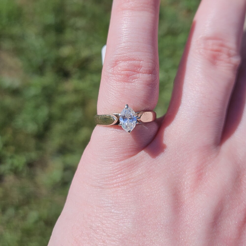 14K White Gold "Oval" Curved Marquise 1/2Ct Diamond Engagement Ring Size 6
