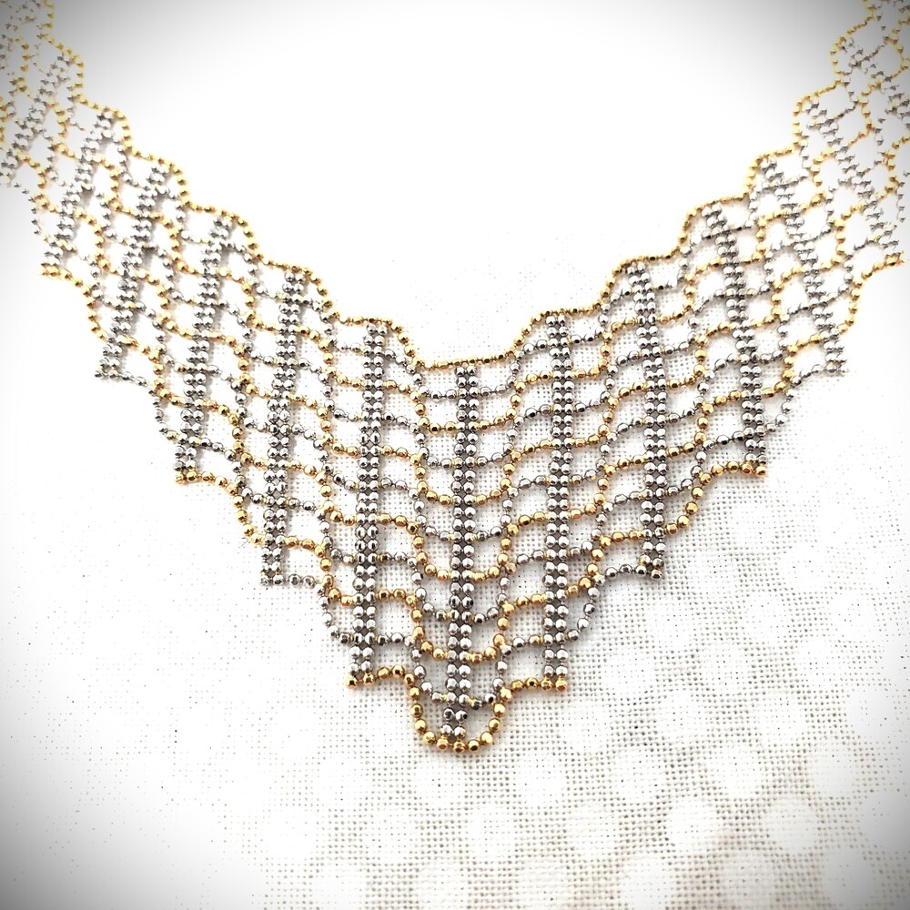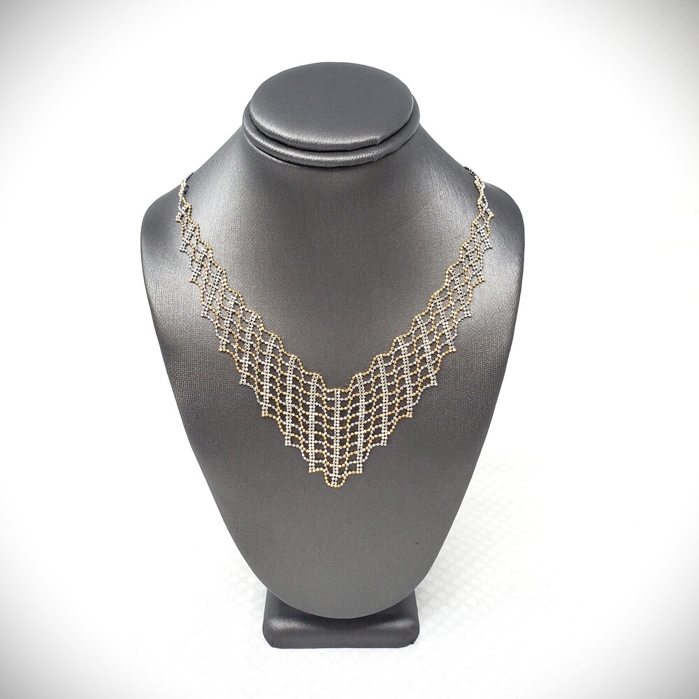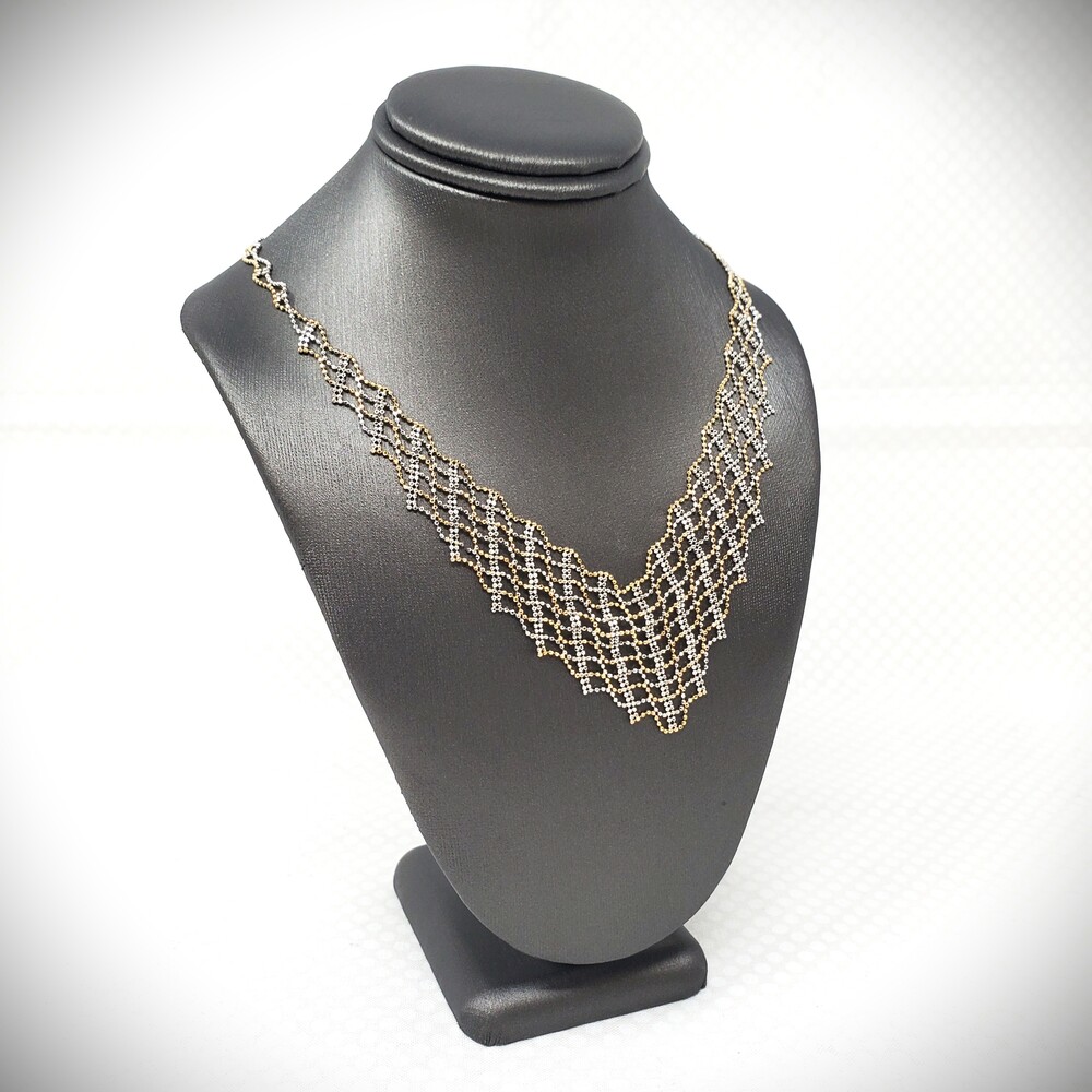 14K White & Yellow Gold Mesh Bead Bib Necklace