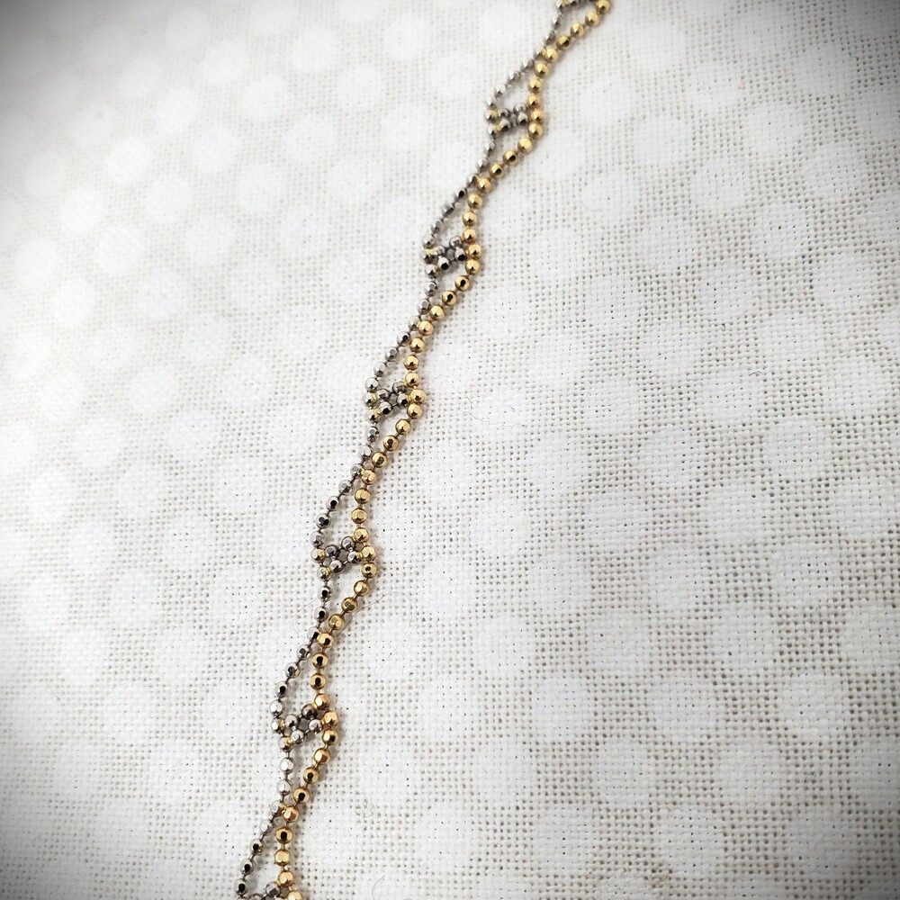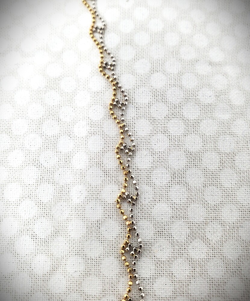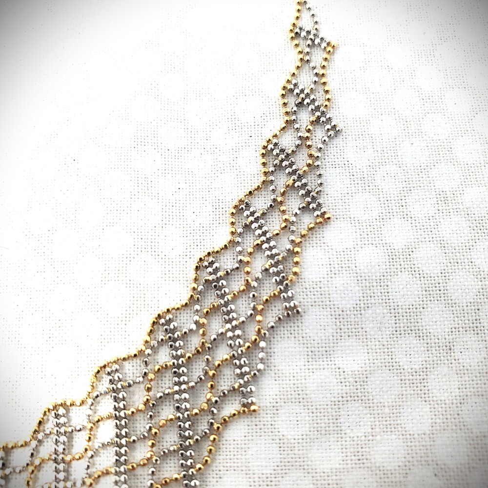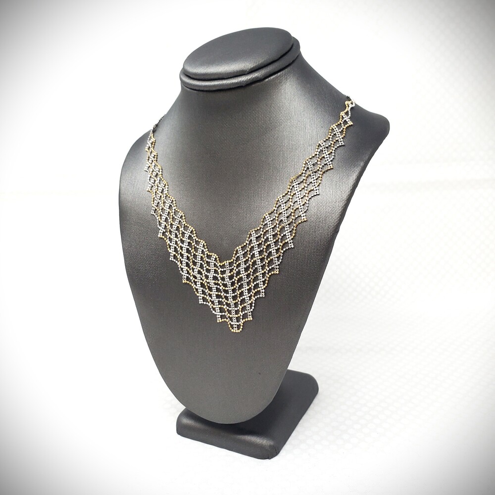 14K White & Yellow Gold Mesh Bead Bib Necklace