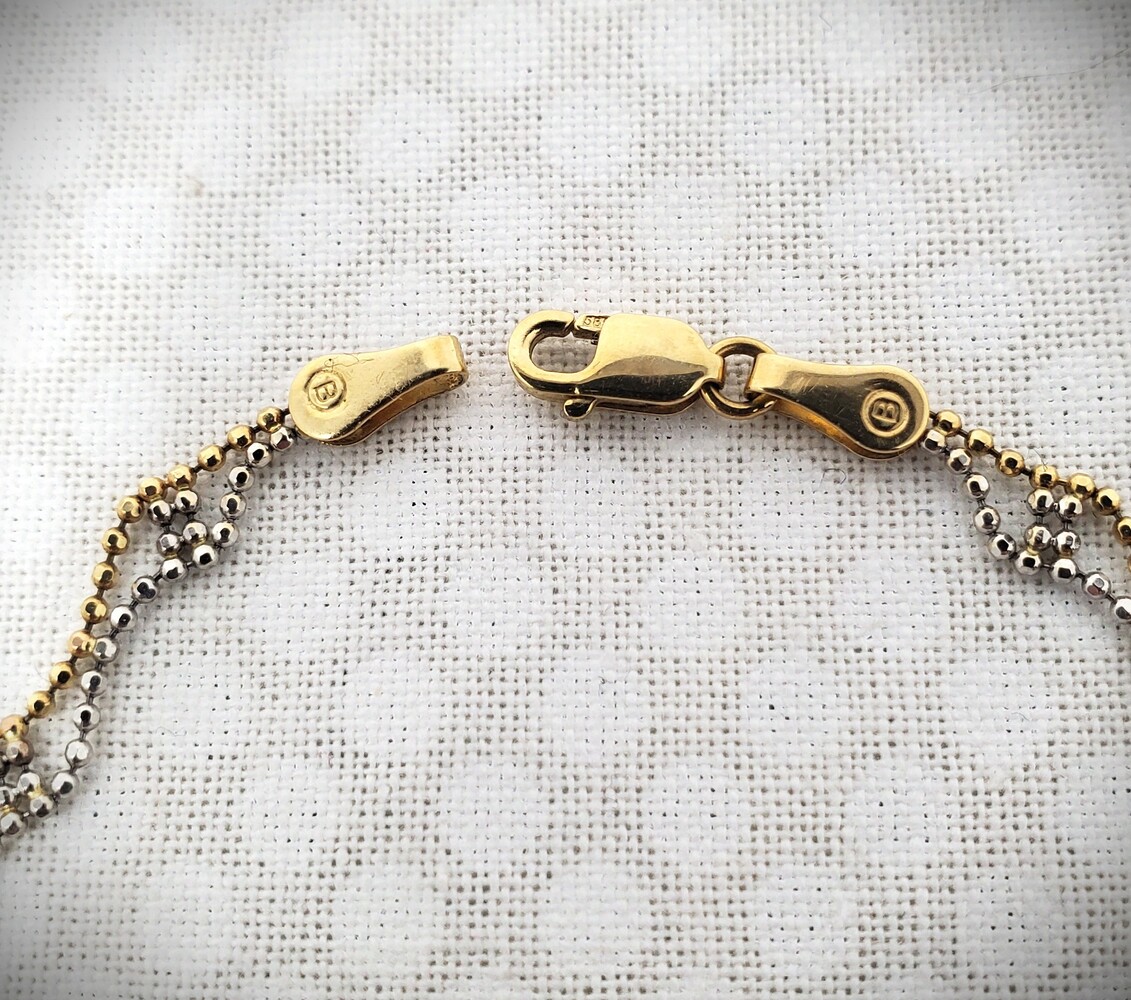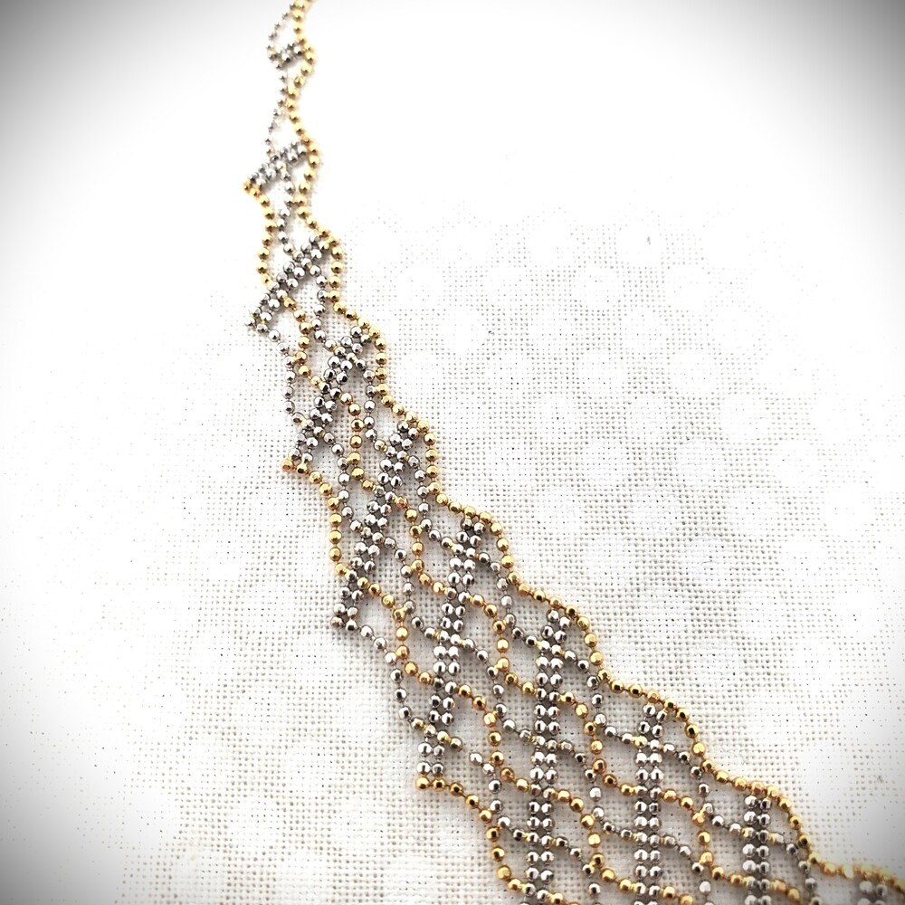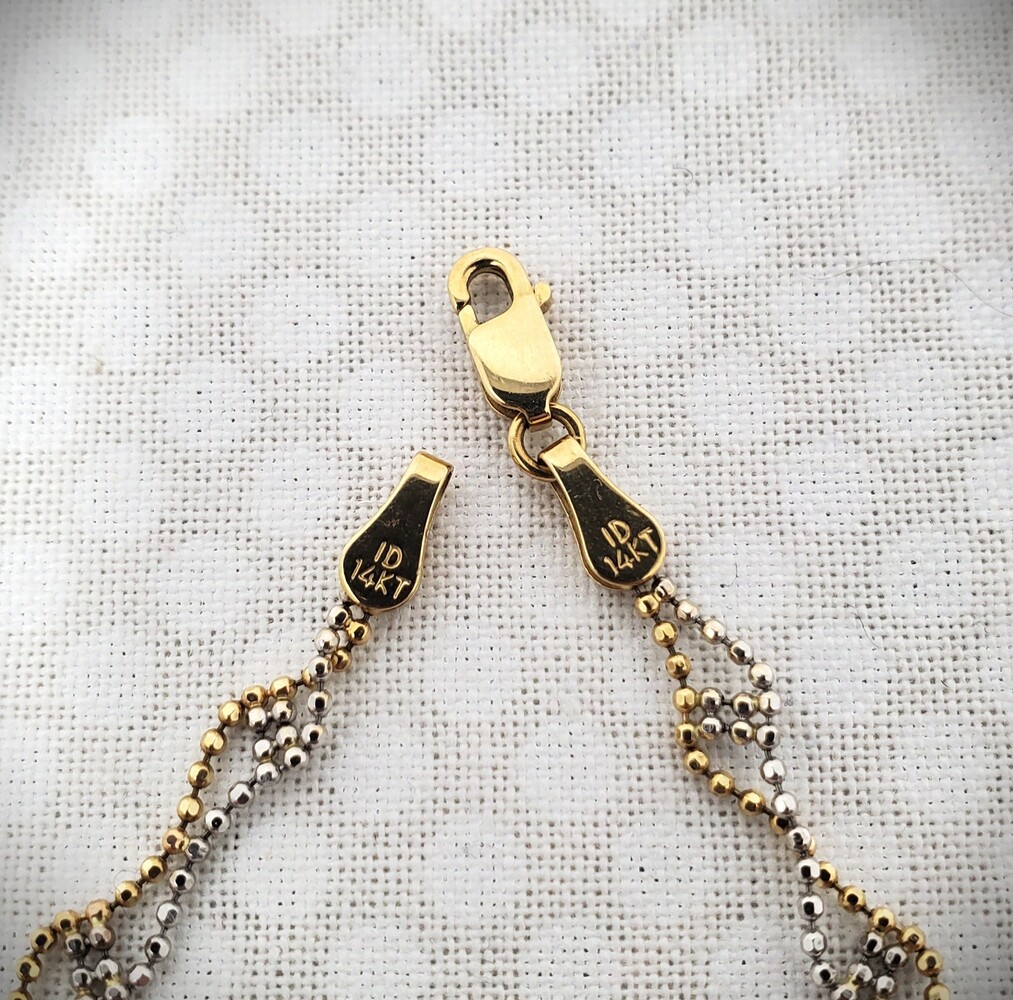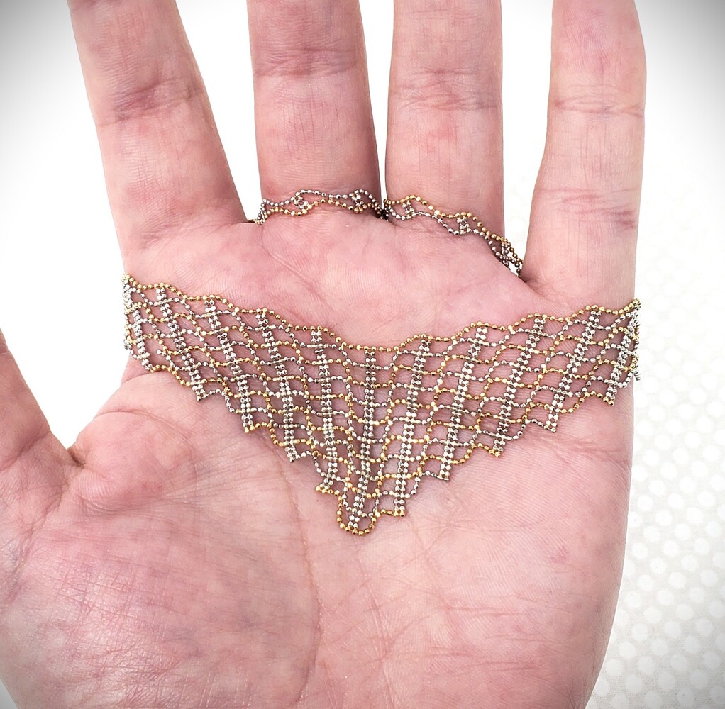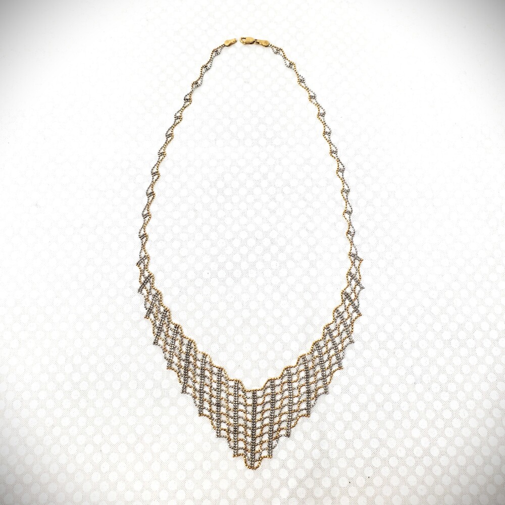 14K White & Yellow Gold Two-Tone Mesh Bead Bib Necklace – 17" – 9.5 Grams