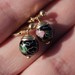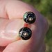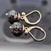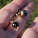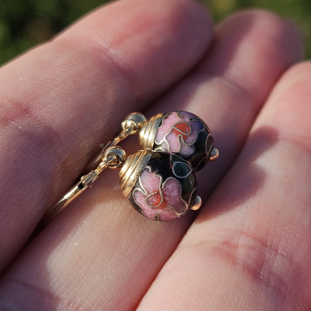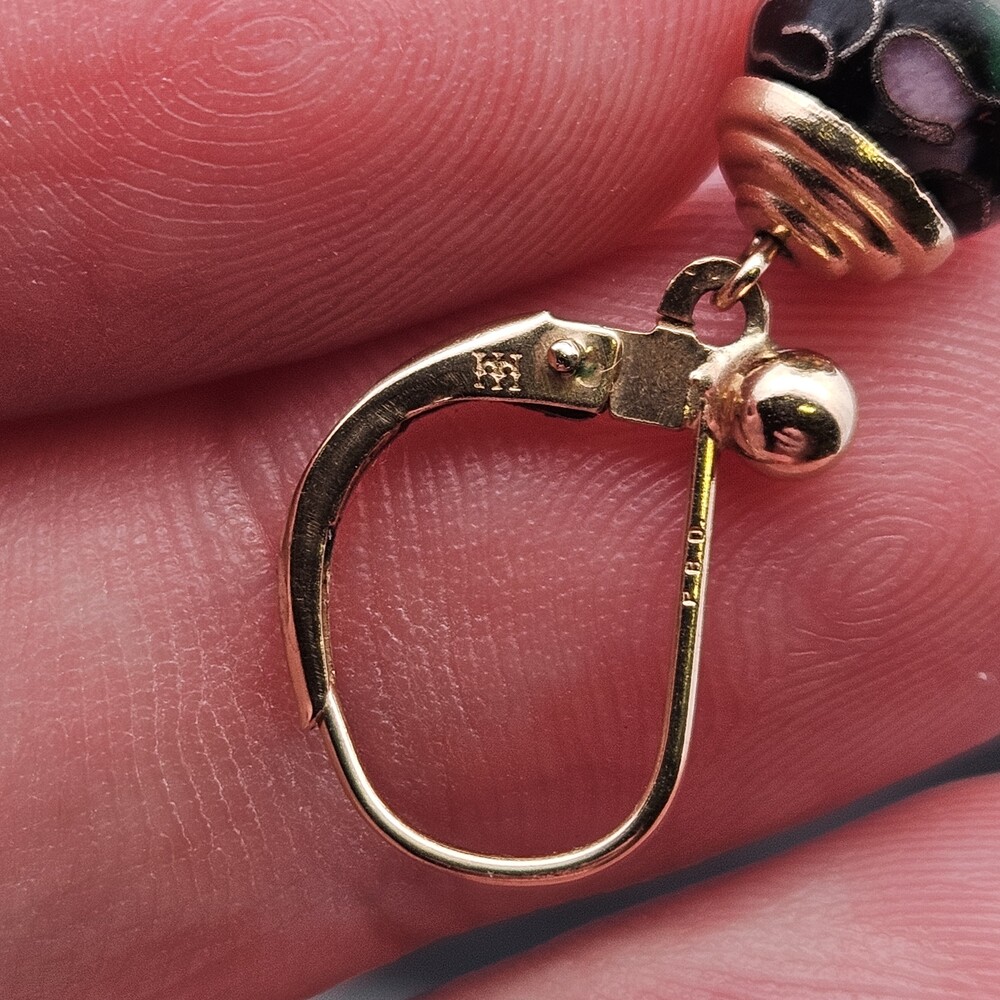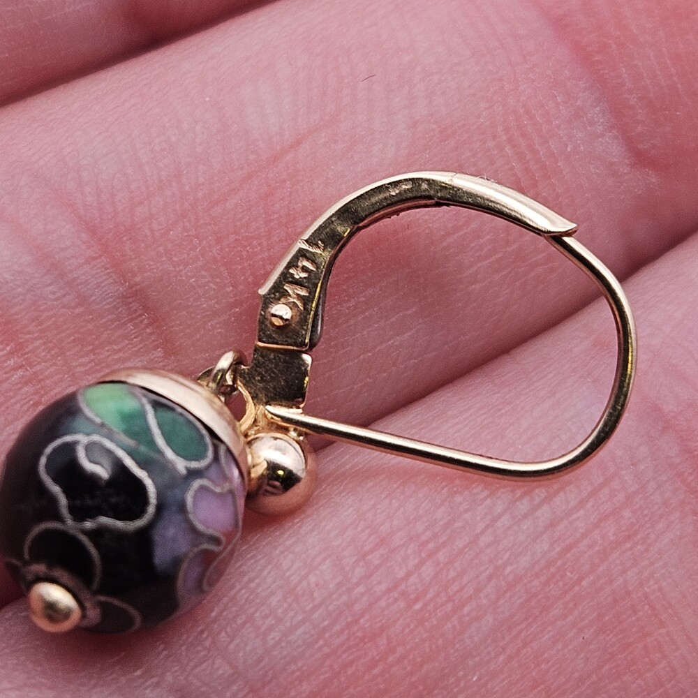 14K Yellow Gold Black Enamel Cloisonné Flower Floral Ball Drop Earrings