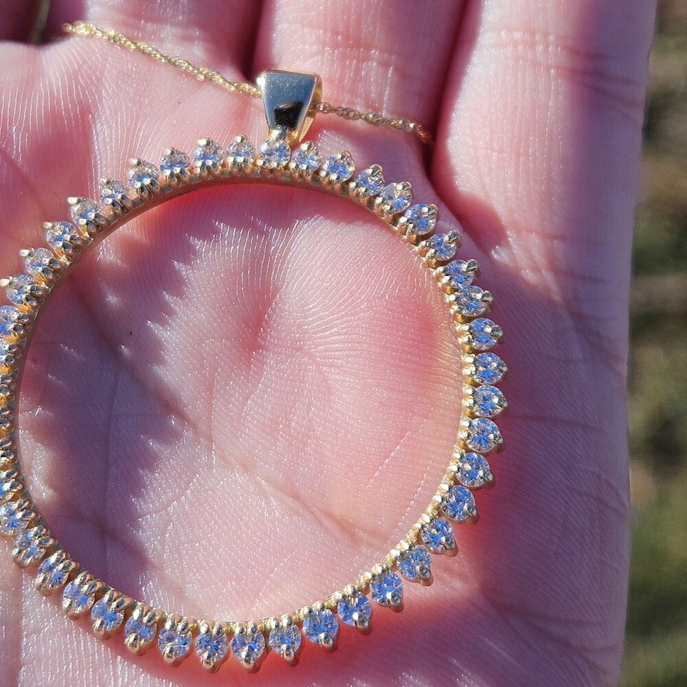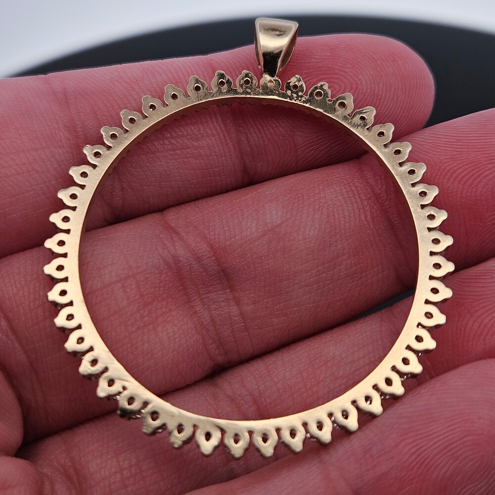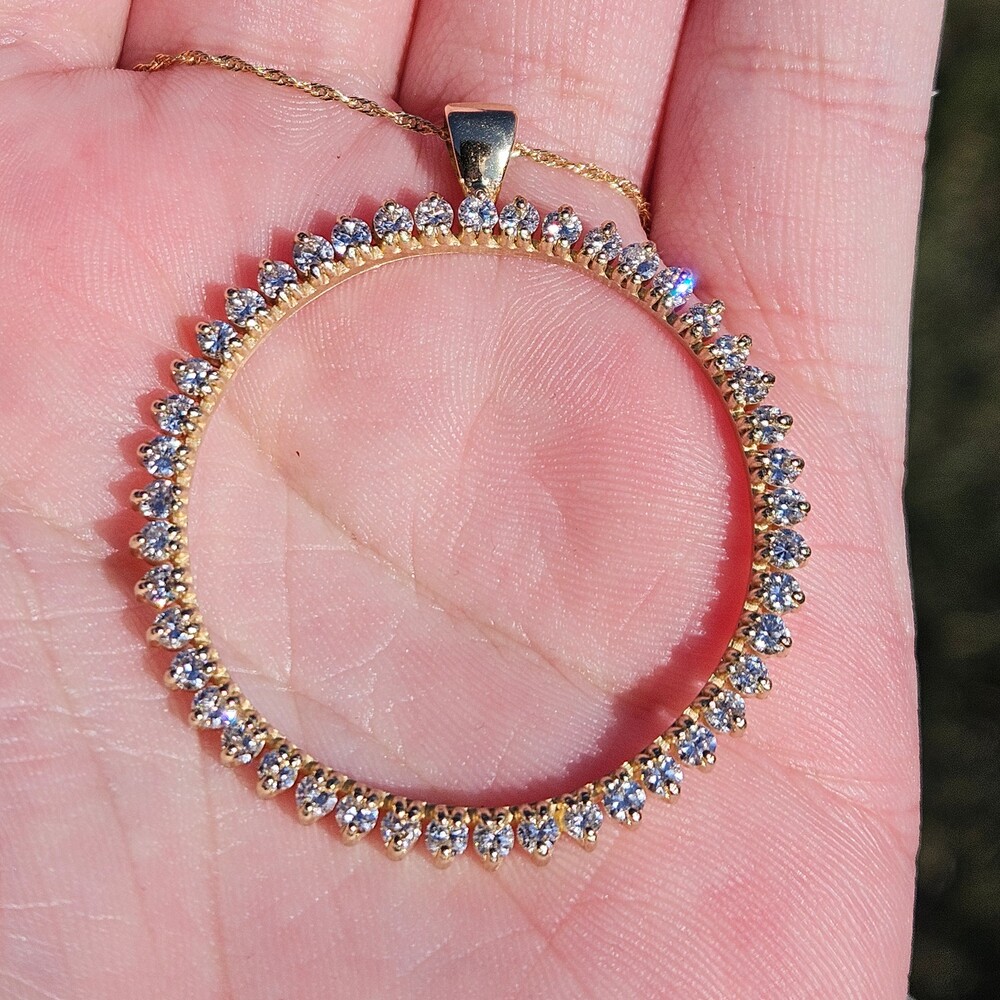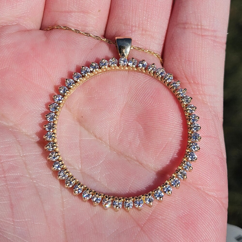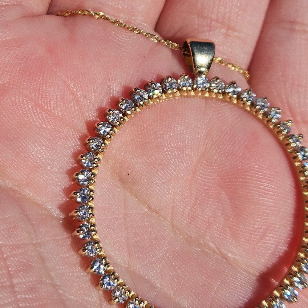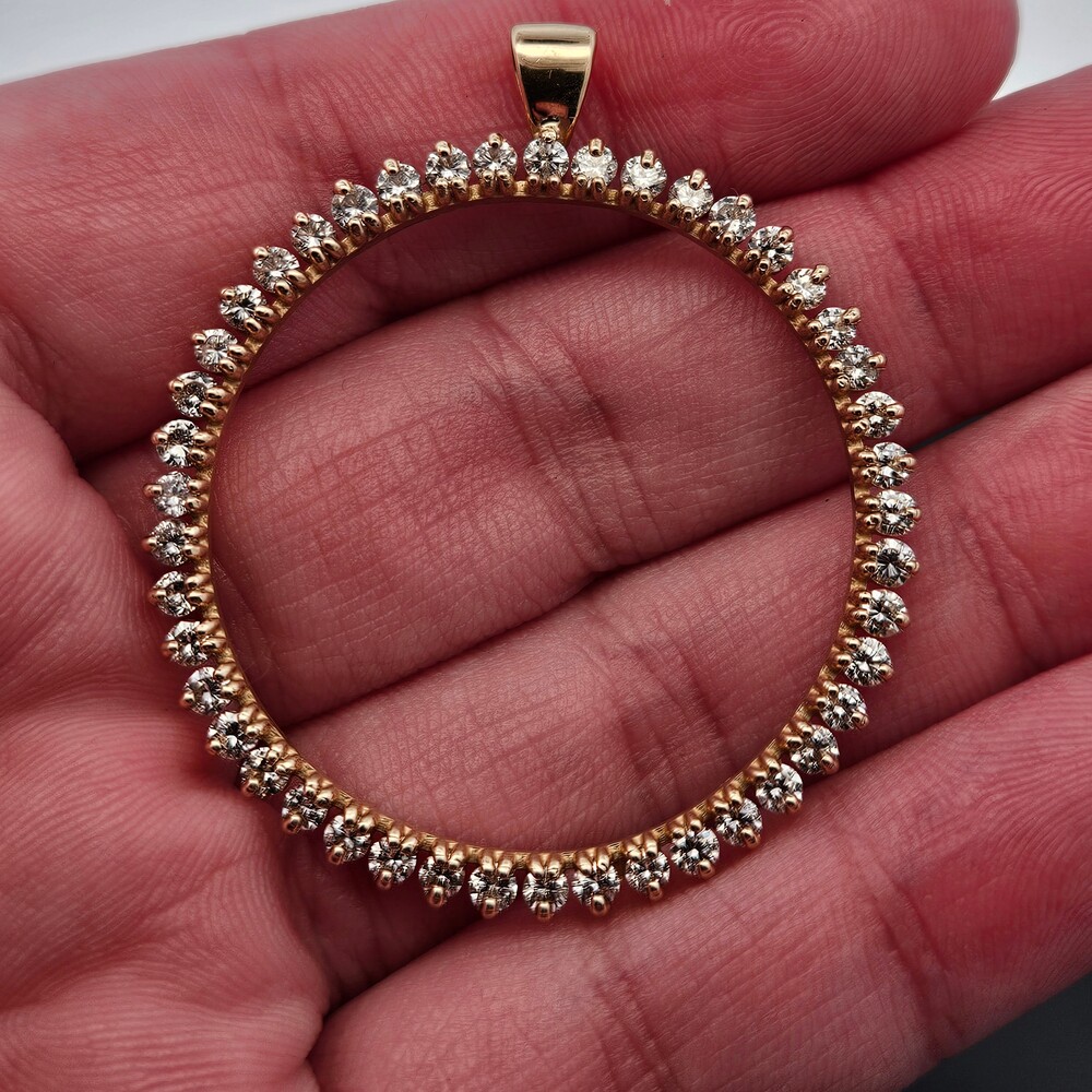 14K Yellow Gold Diamond Halo Pendant Charm 1.5 Inch Diameter 2.25TCW