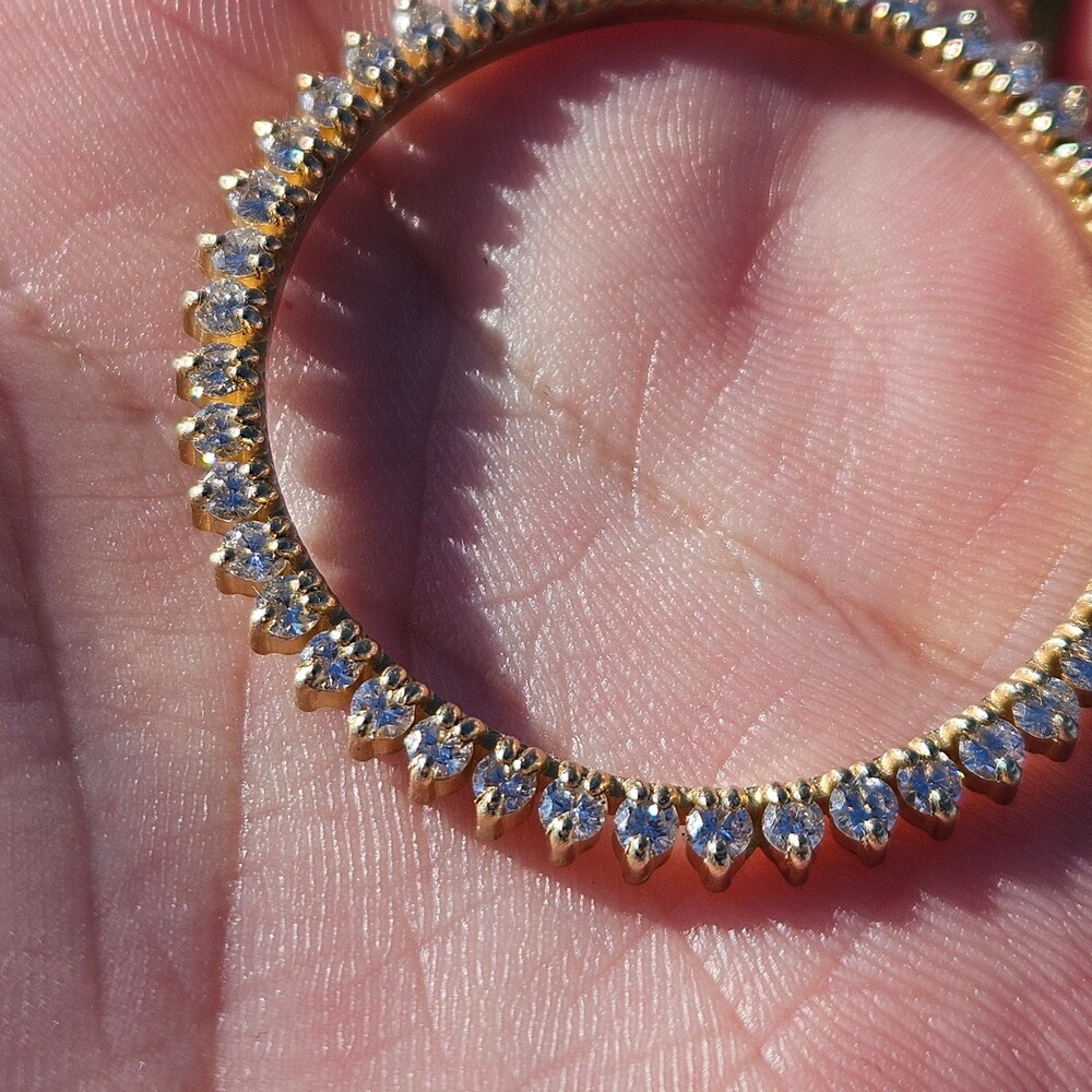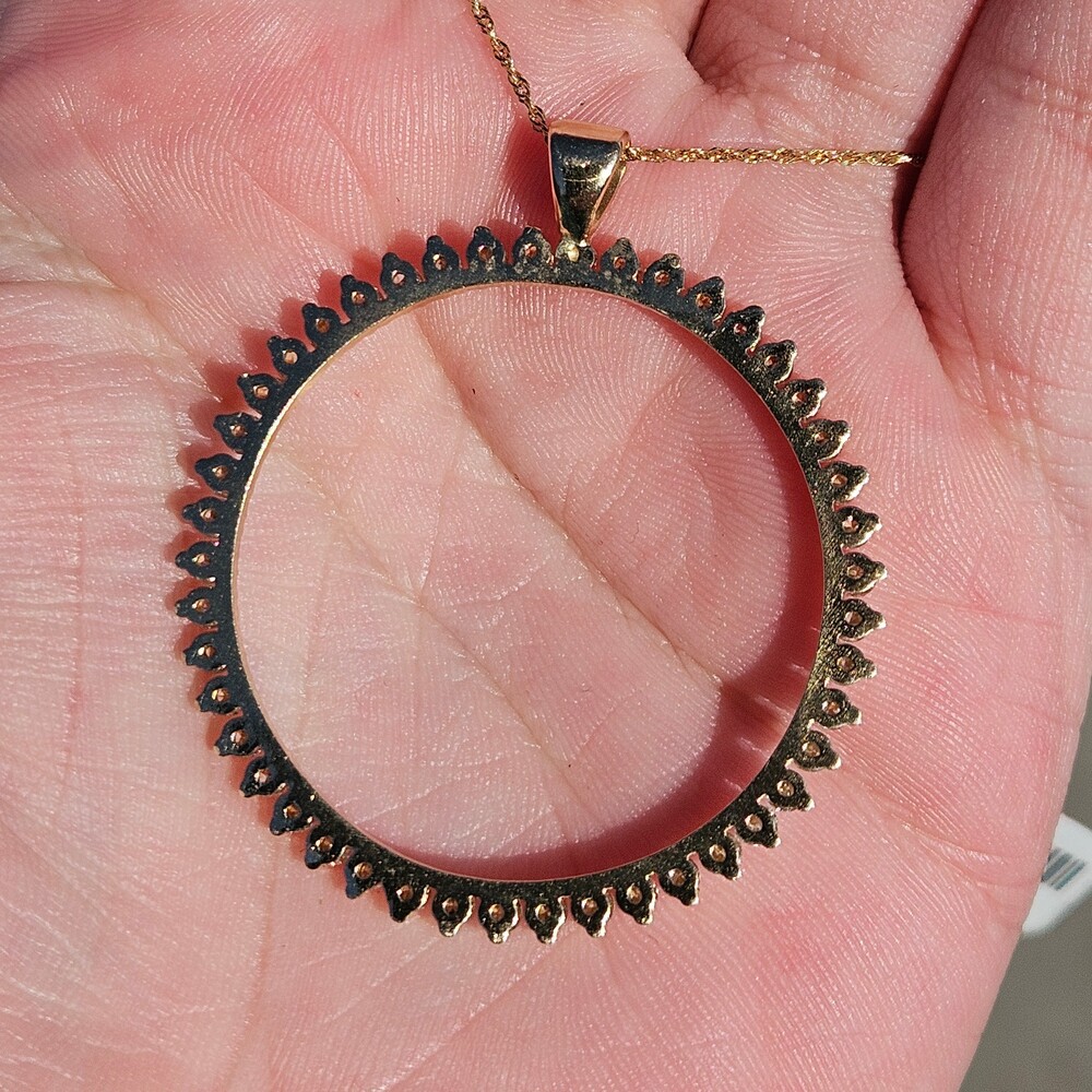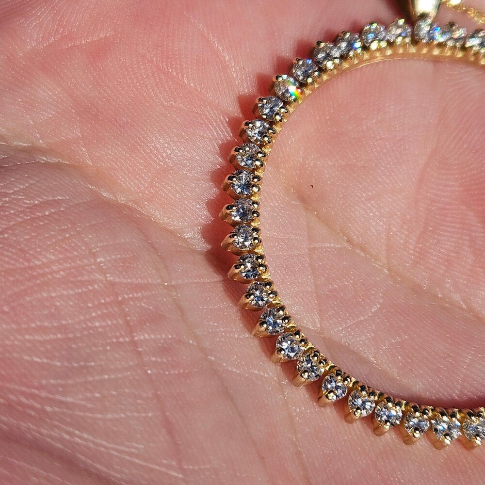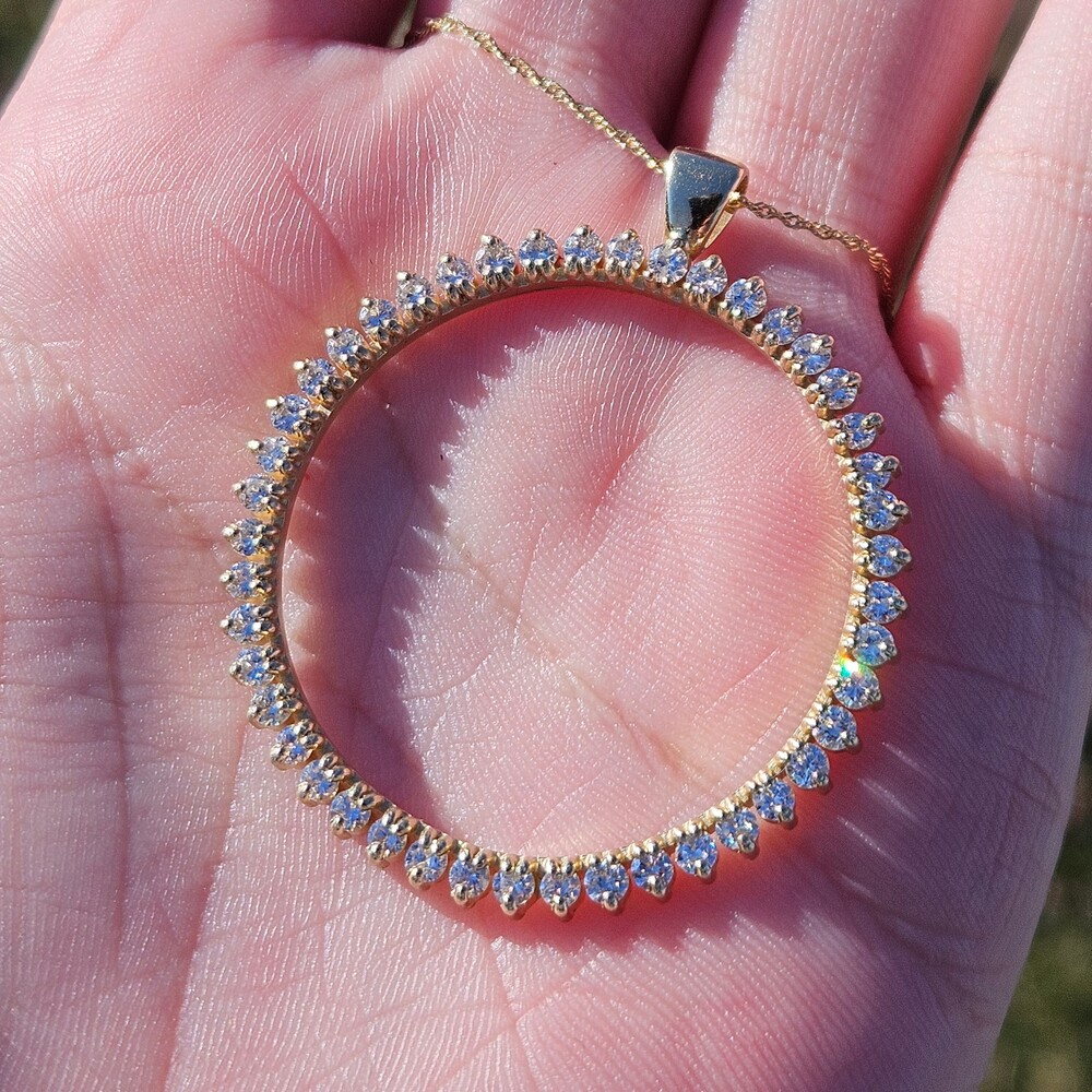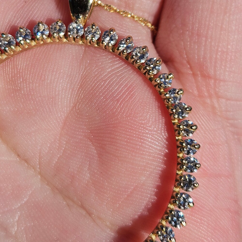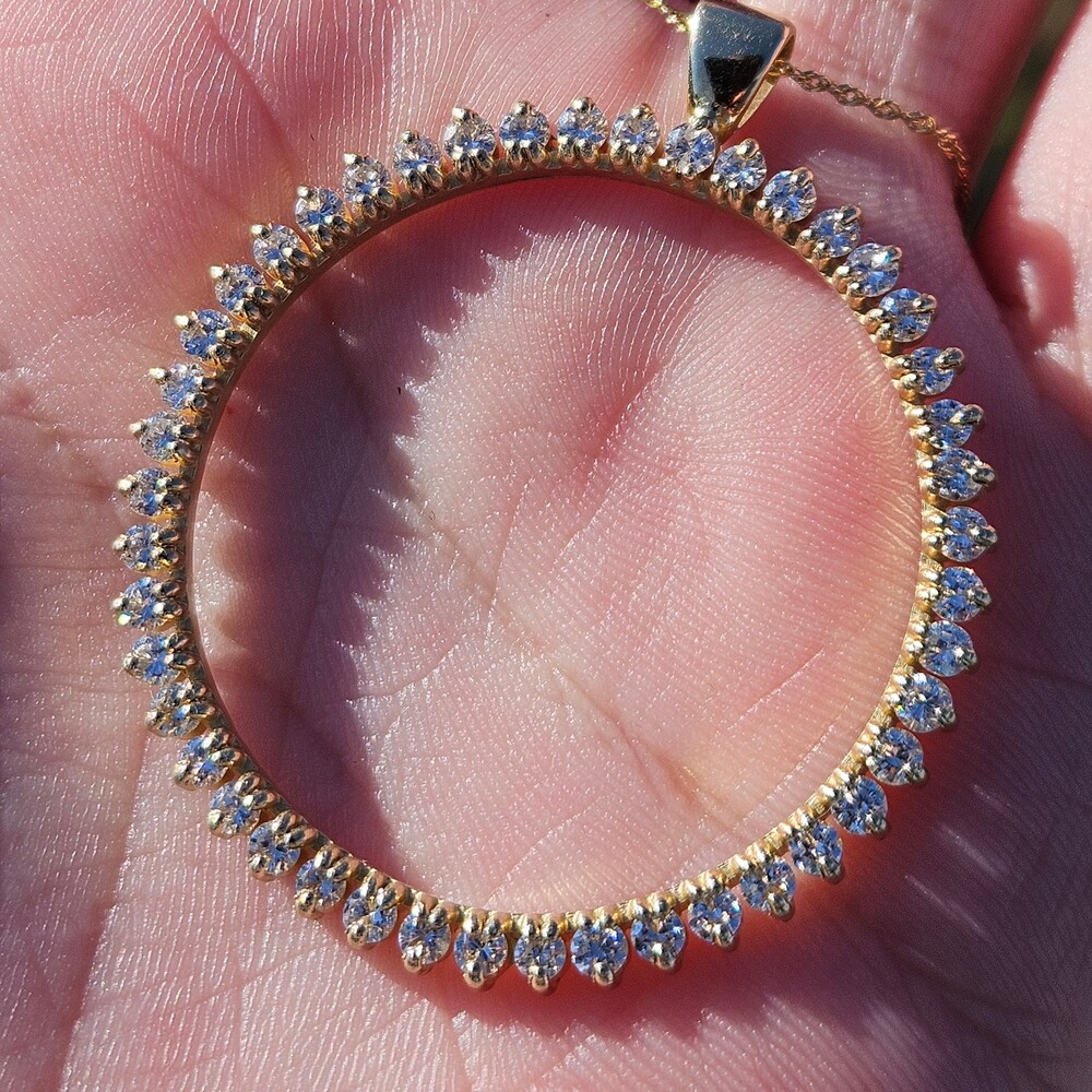14K Yellow Gold Diamond Halo Pendant Charm 1.5 Inch Diameter 2.25TCW