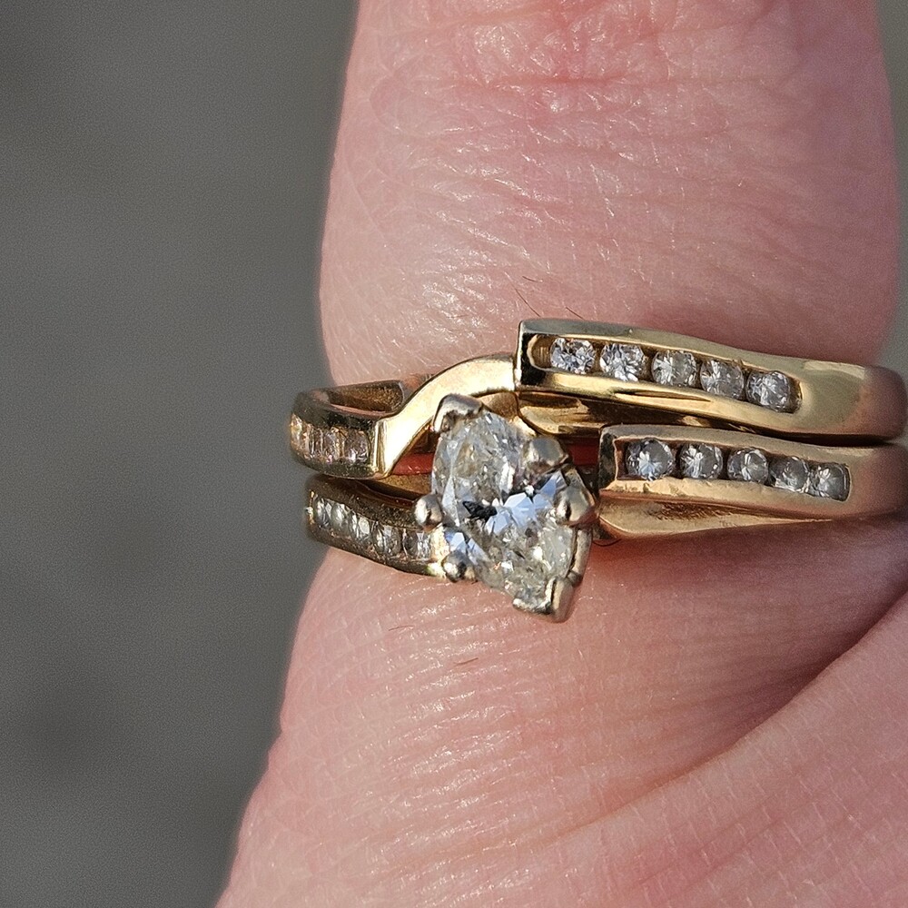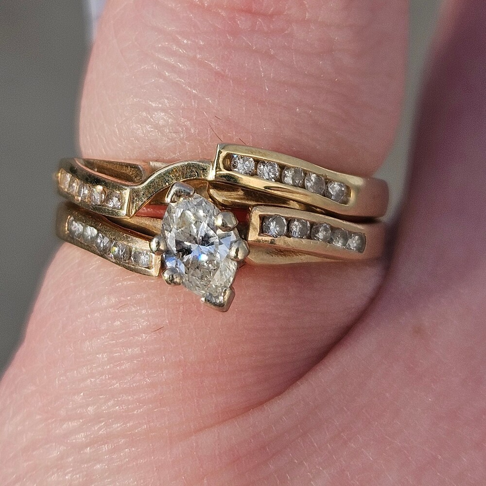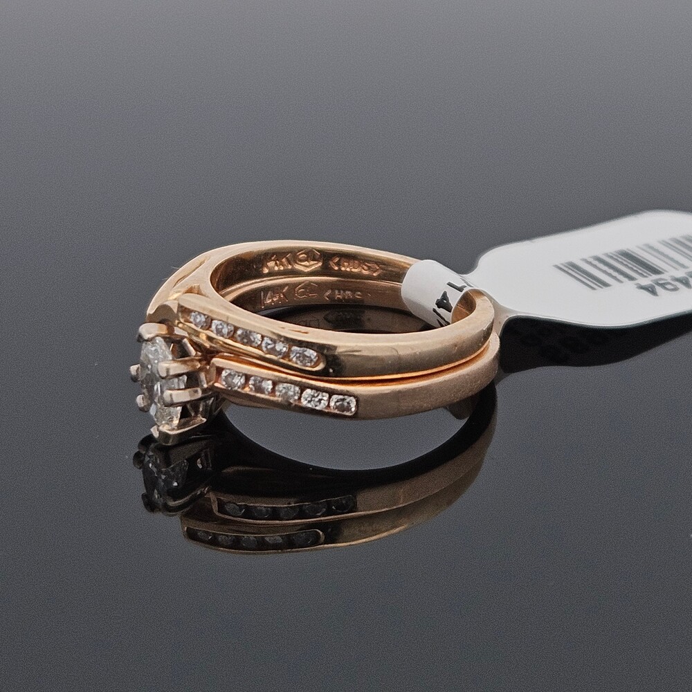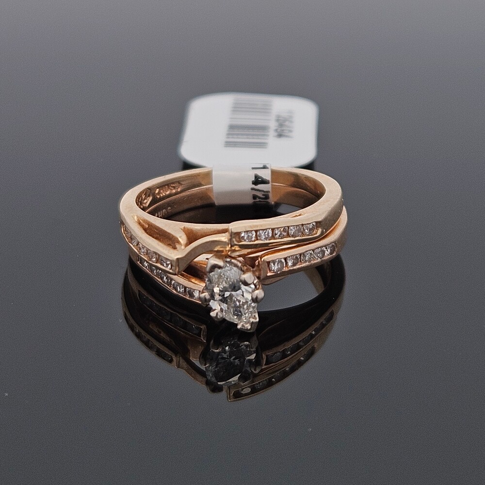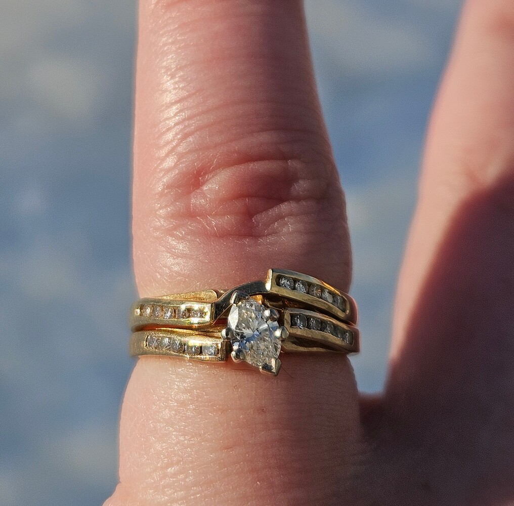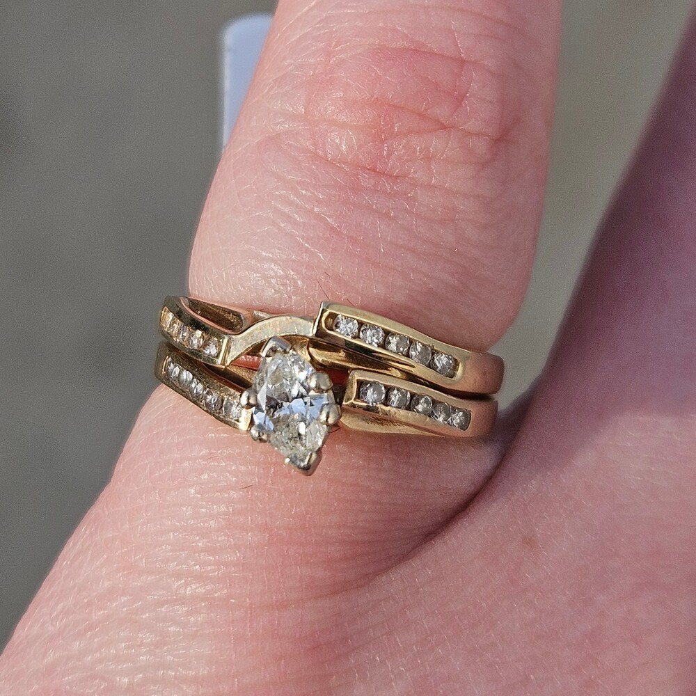 14K Yellow Gold Diamond Marquise Bypass Engagement Wedding Ring Set Size 4.75
