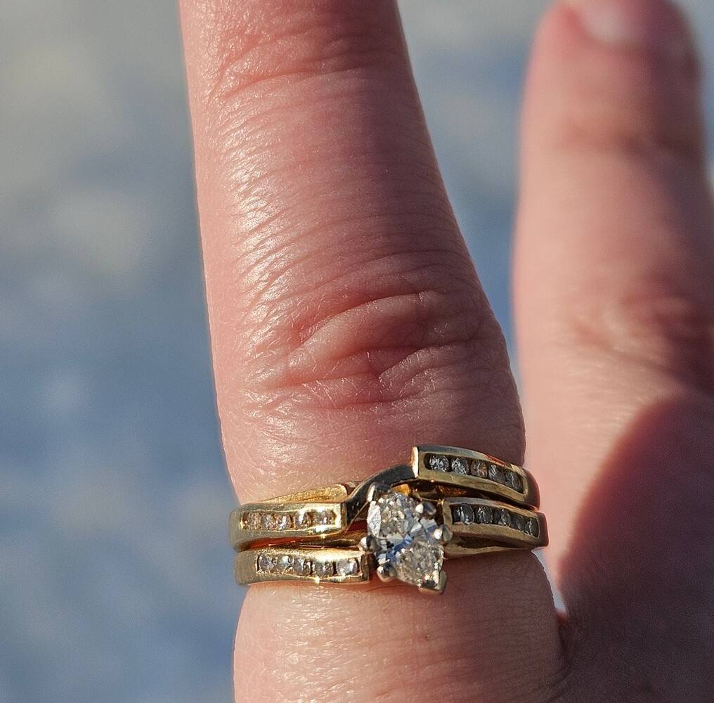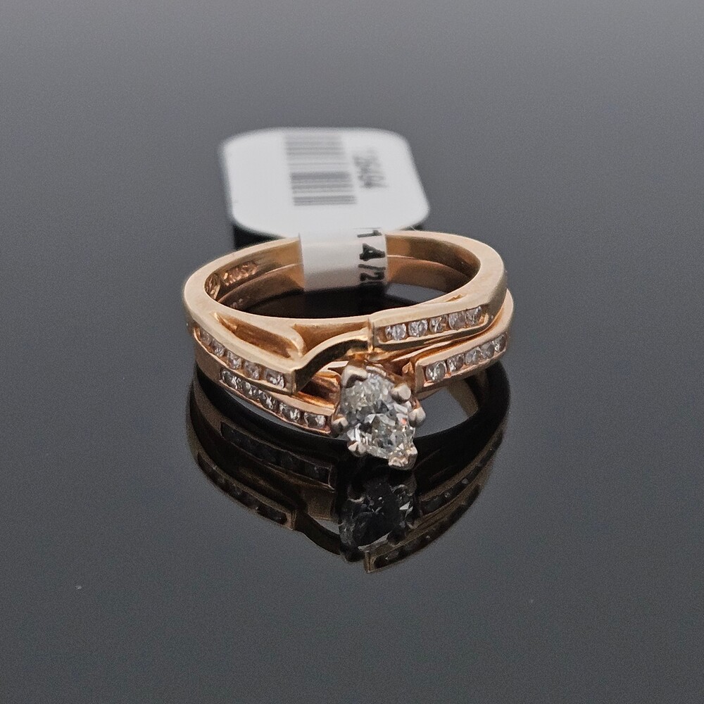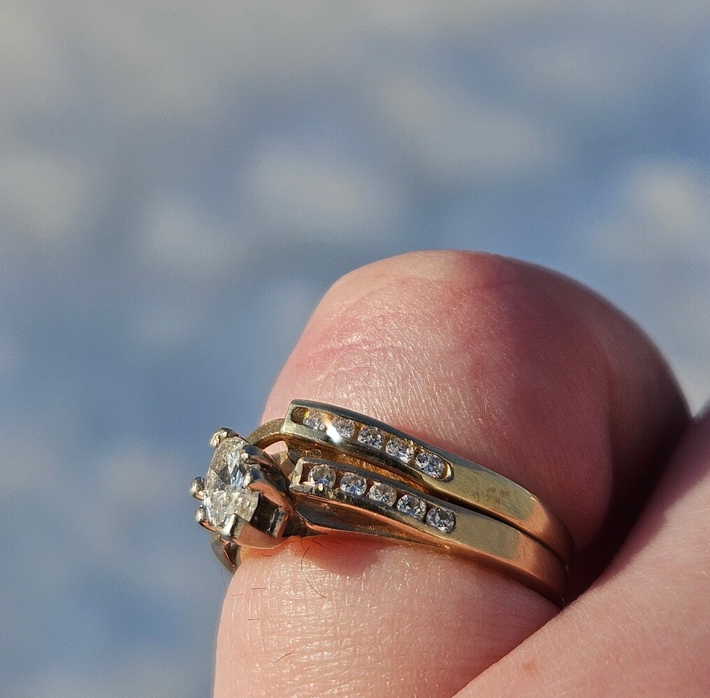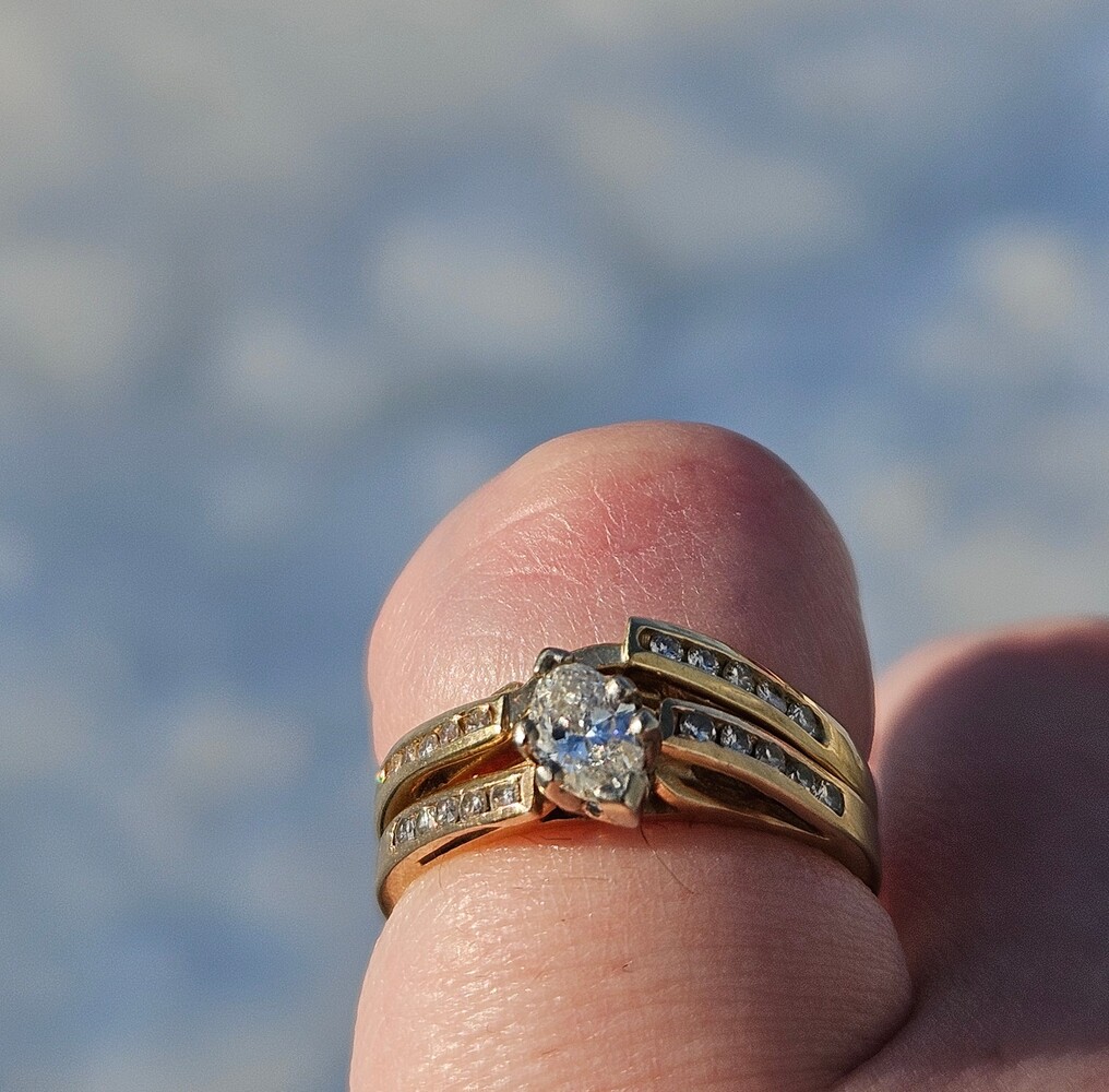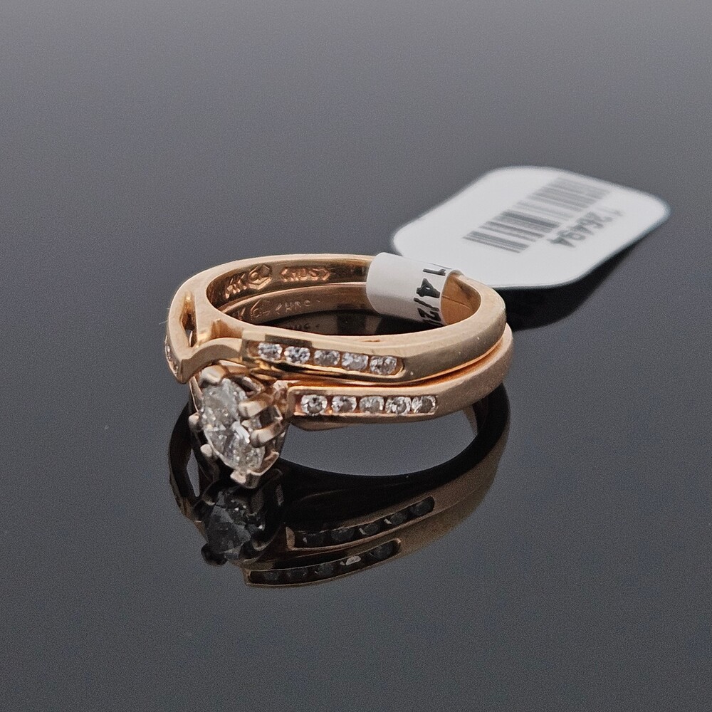 14K Yellow Gold Diamond Marquise Bypass Engagement Wedding Ring Set Size 4.75