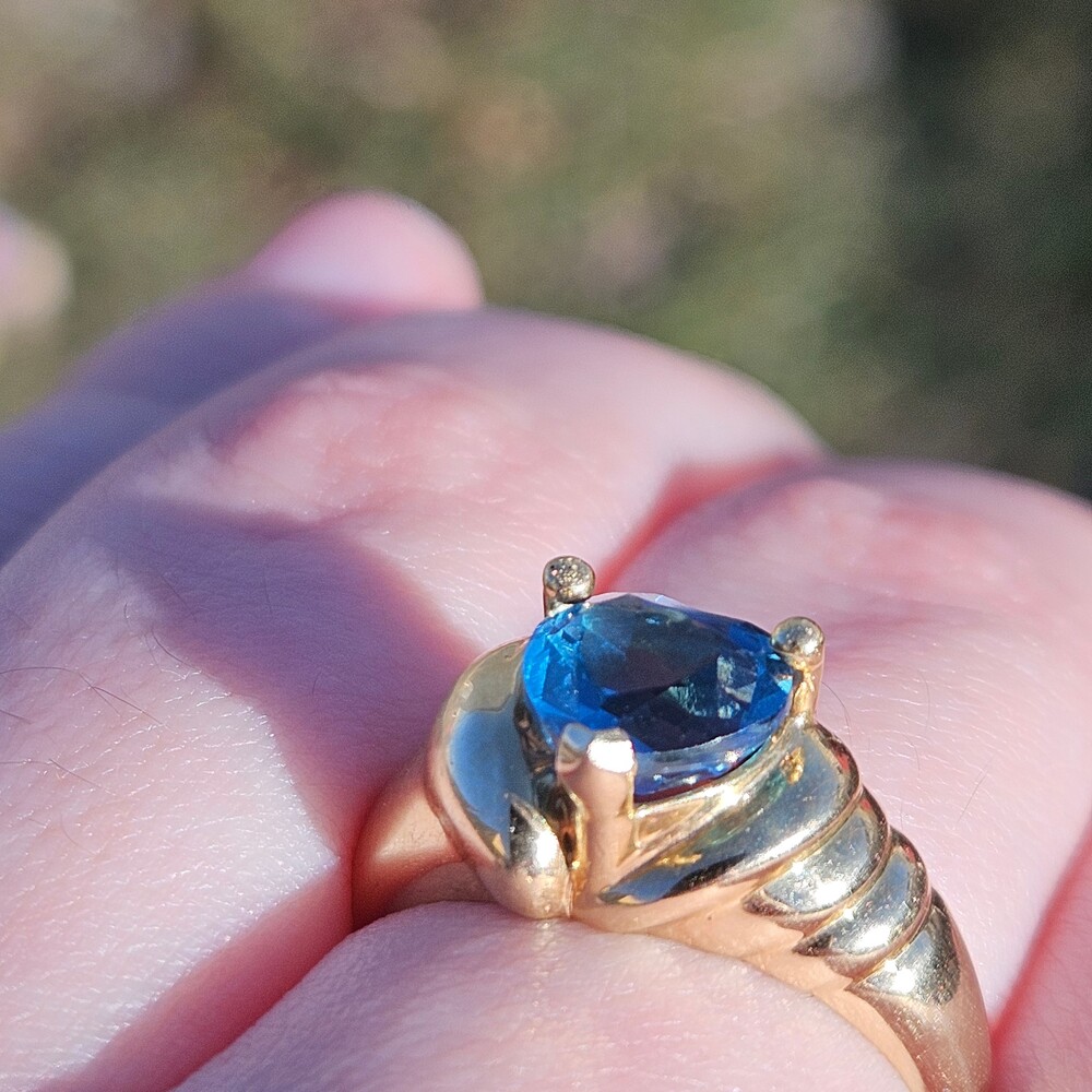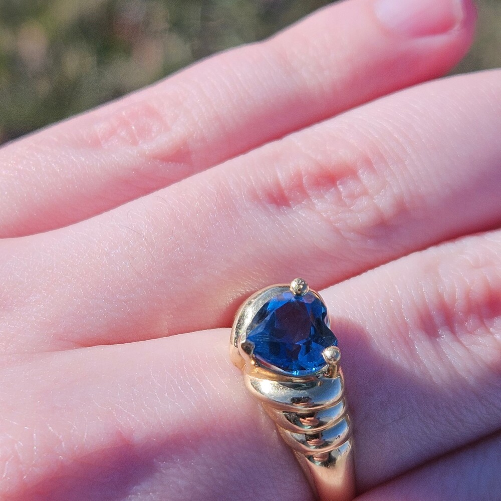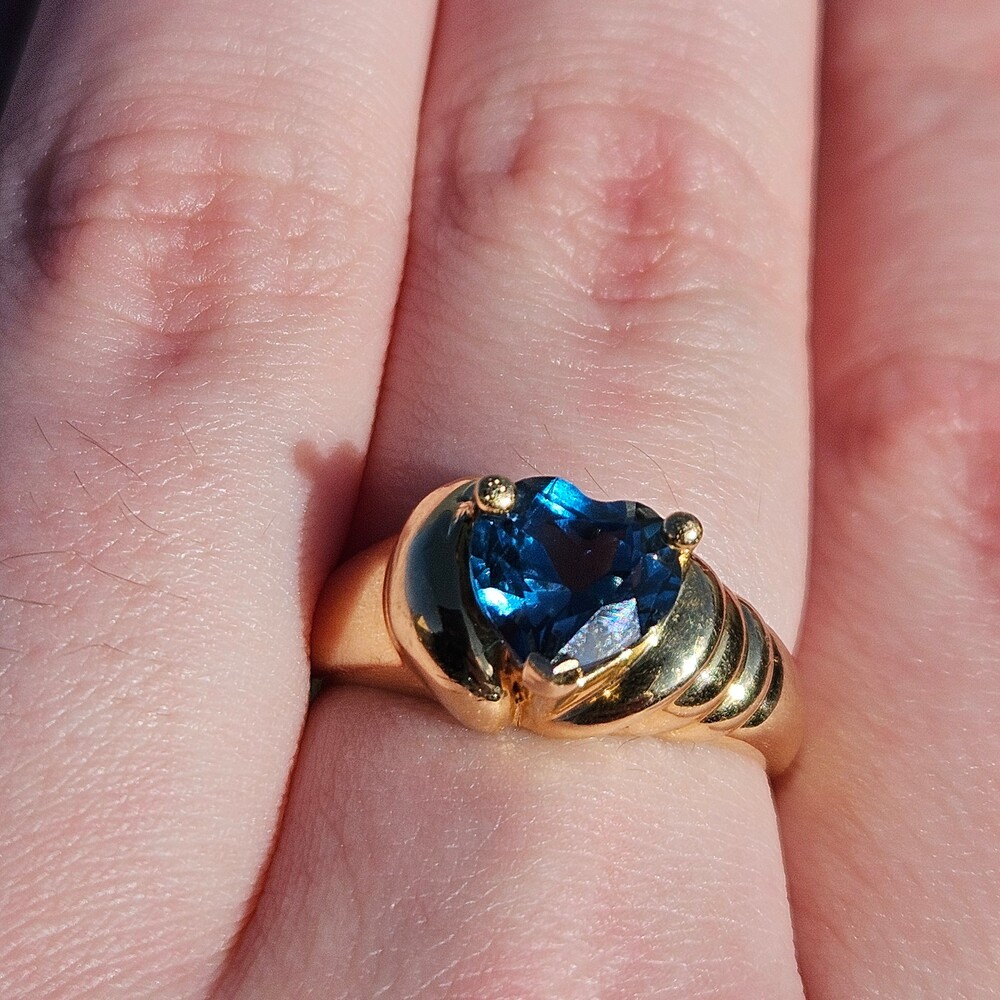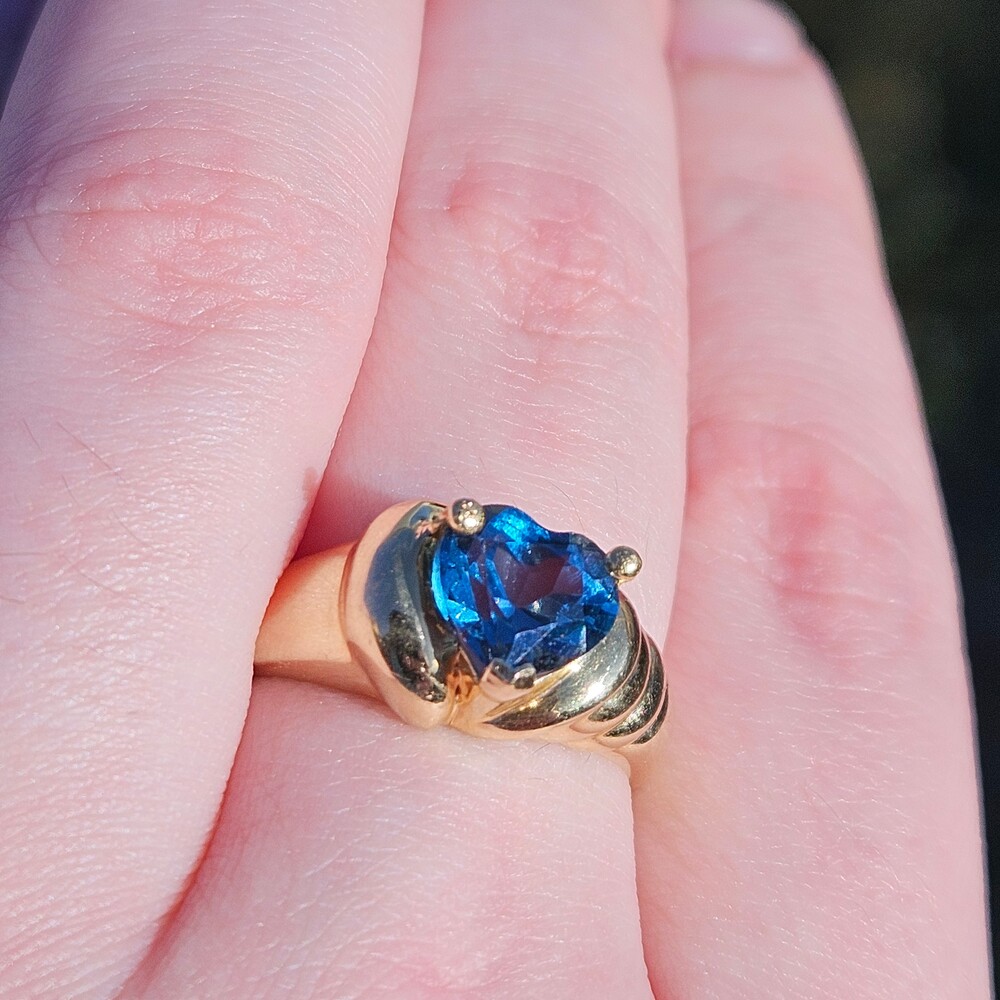 14K Yellow Gold Heart Shaped Blue Topaz Step Statement Cocktail Ring Size 7.75