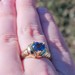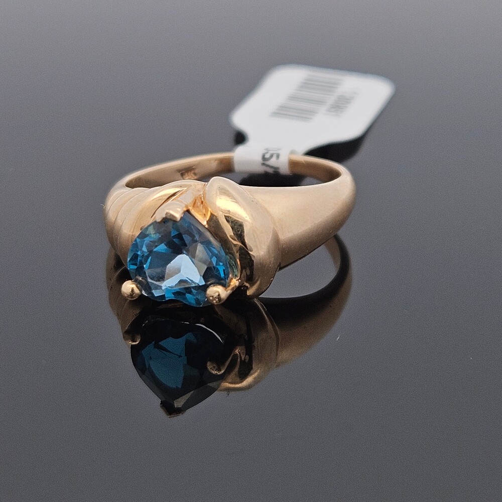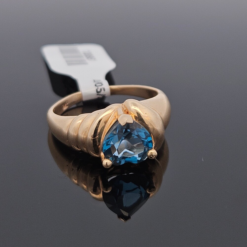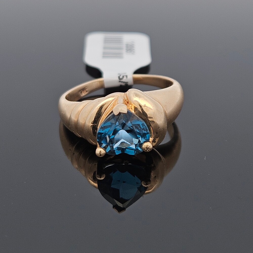 14K Yellow Gold Heart Shaped Blue Topaz Step Statement Cocktail Ring Size 7.75