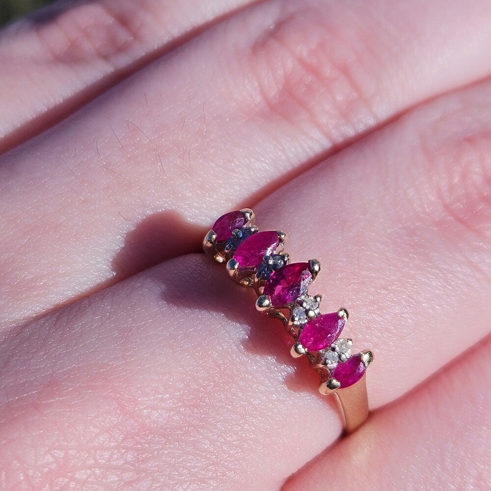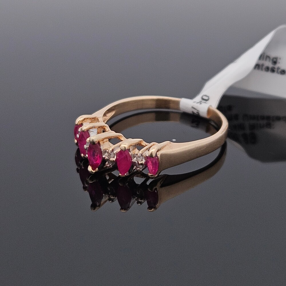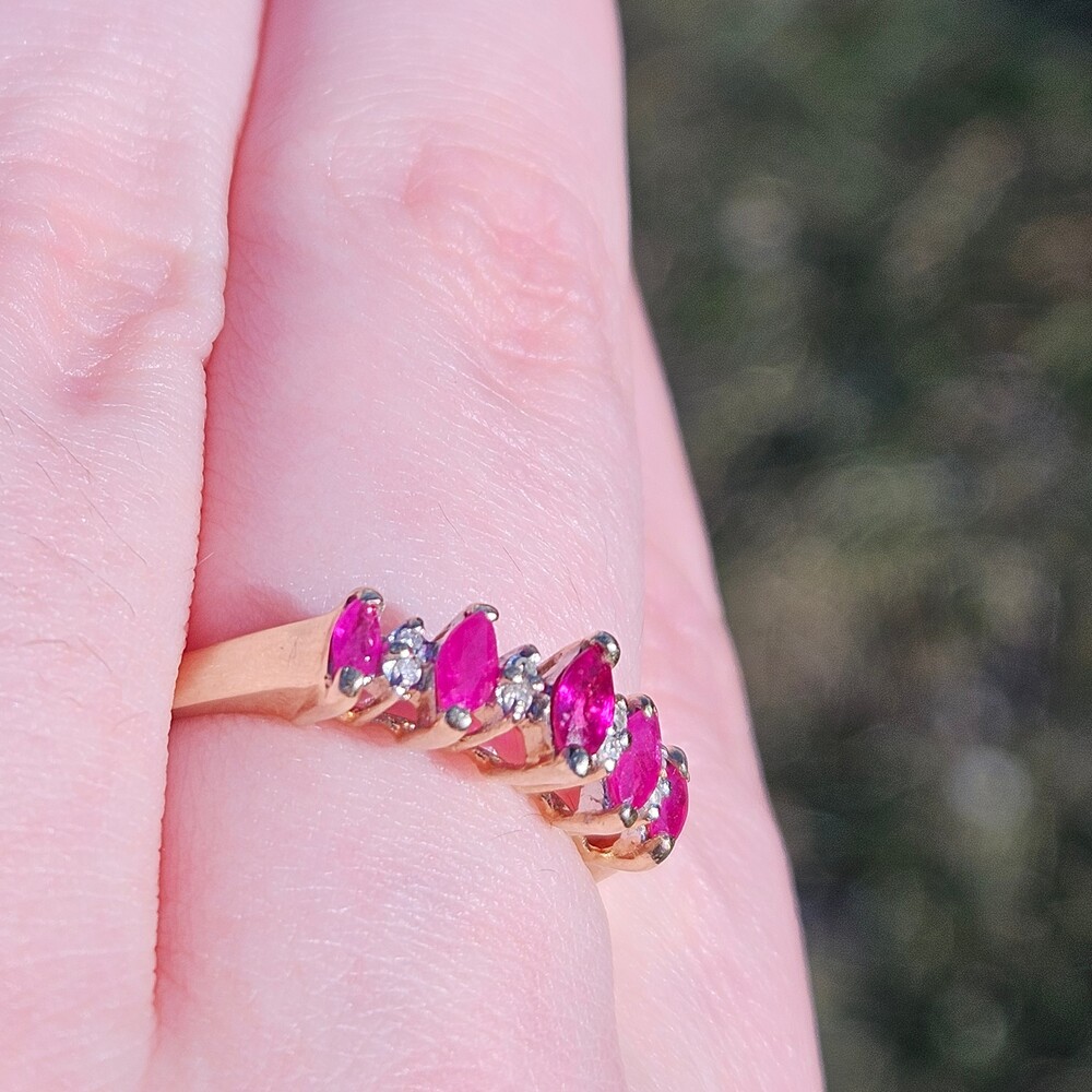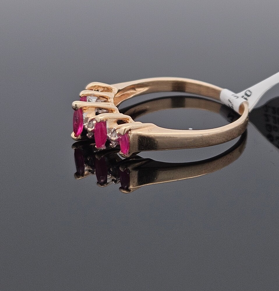 14K Yellow Gold Marquise Ruby Round Diamond Band Ring Size 8