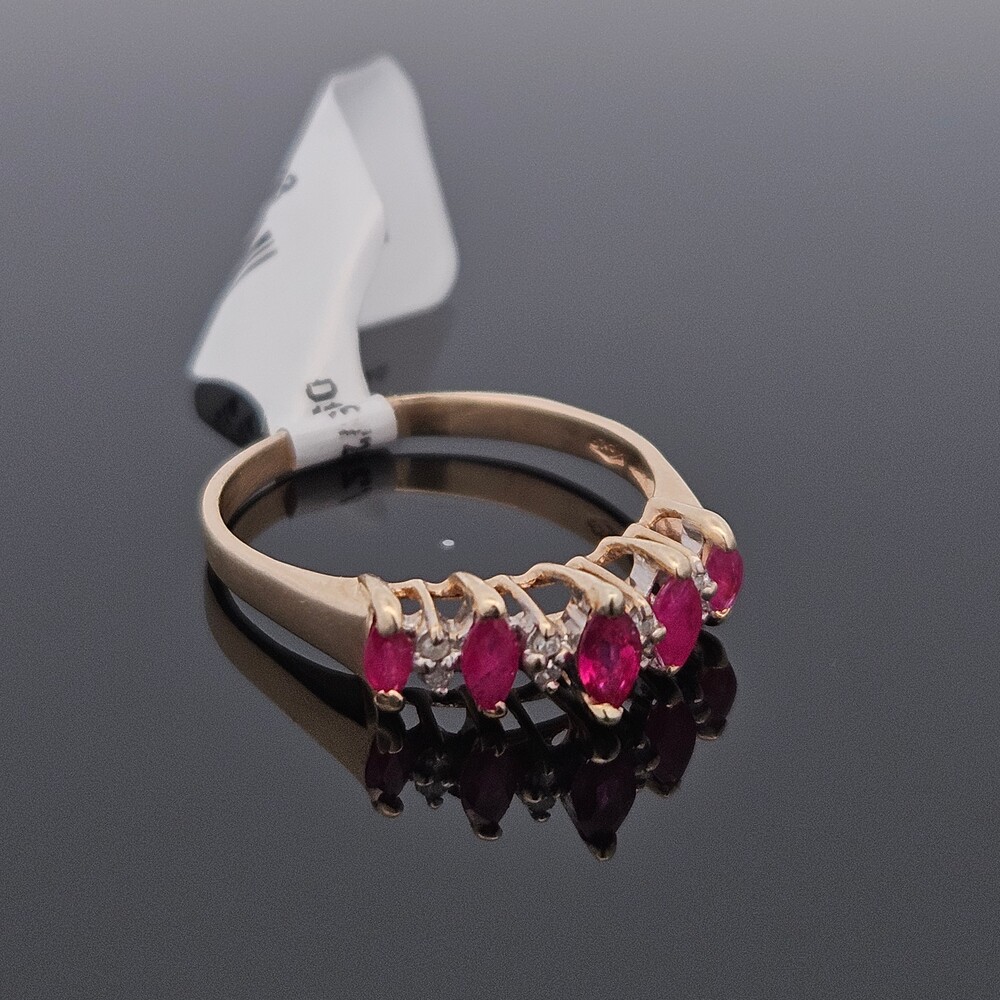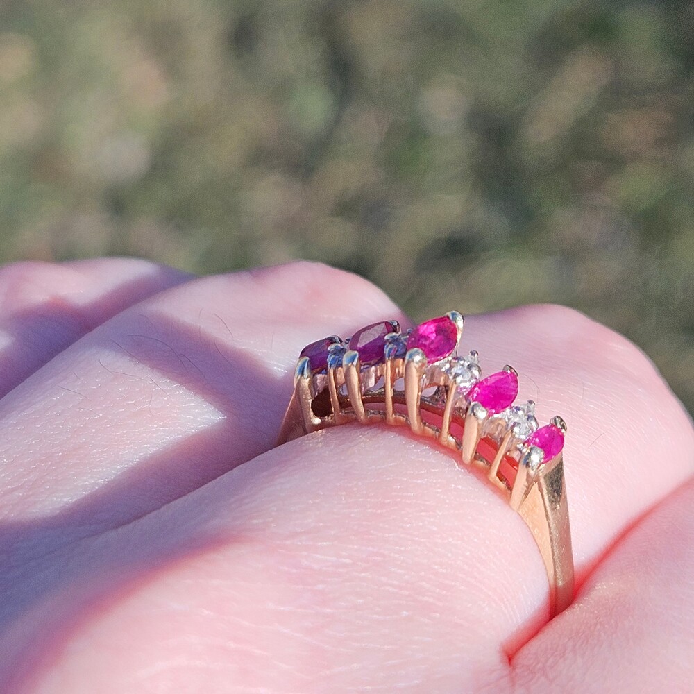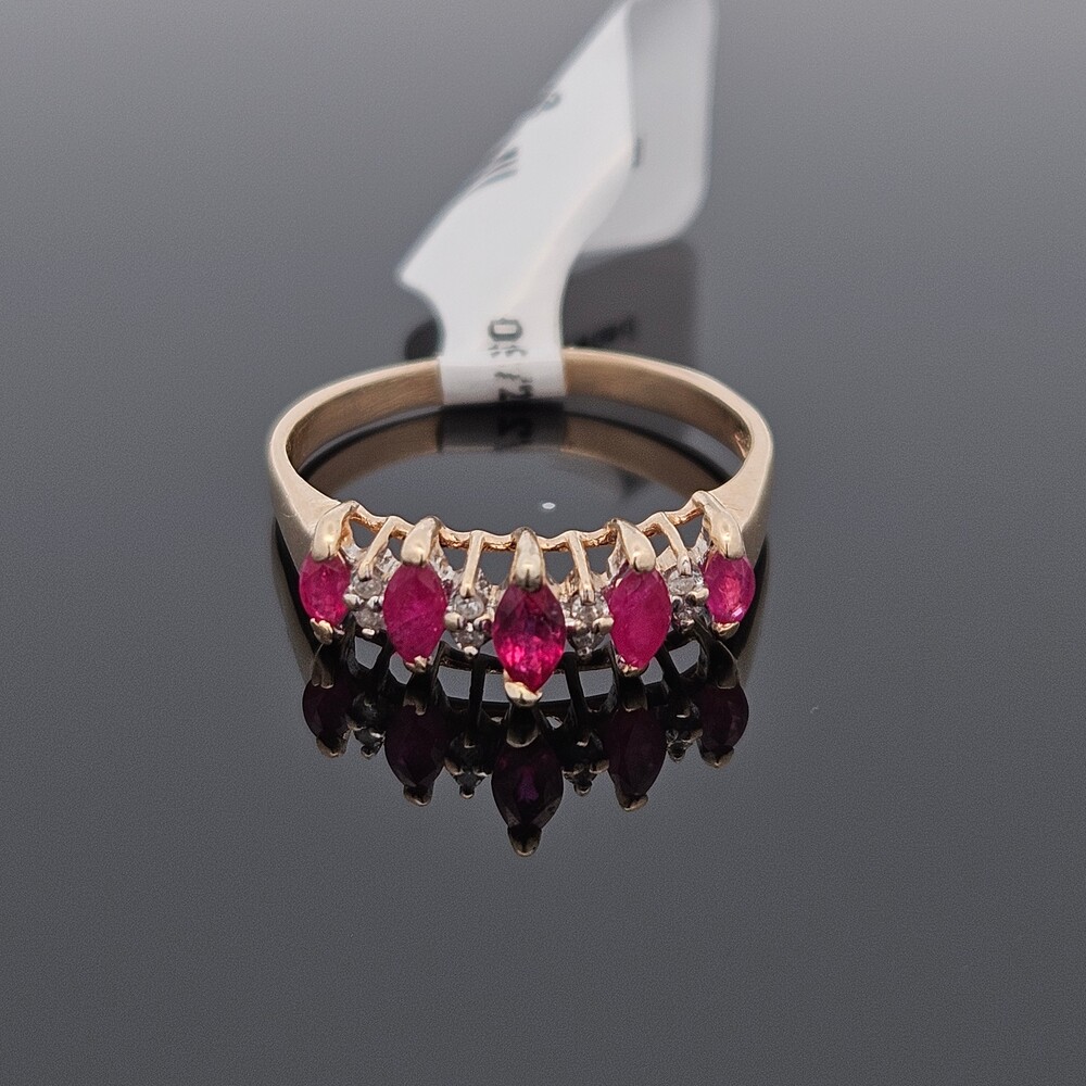 14K Yellow Gold Marquise Ruby Round Diamond Band Ring Size 8