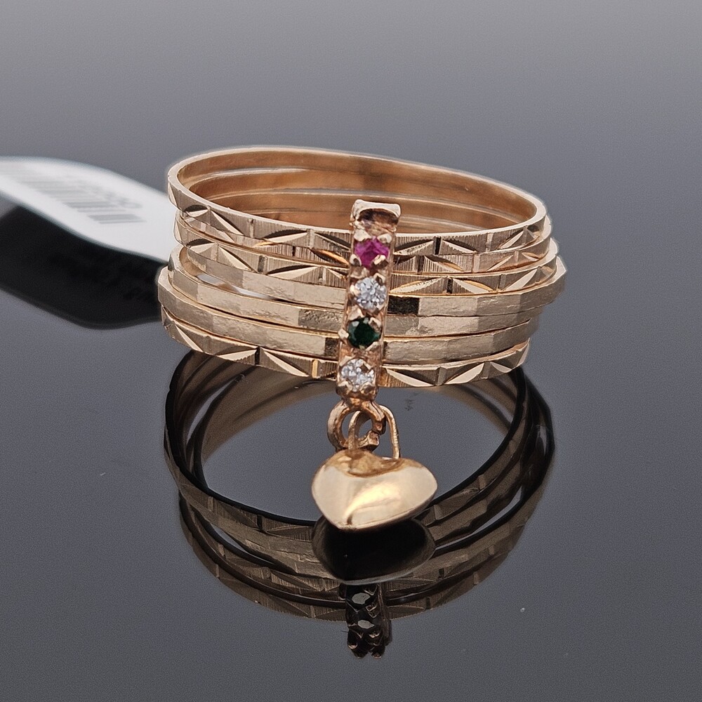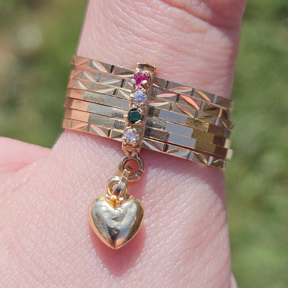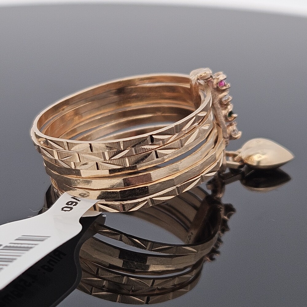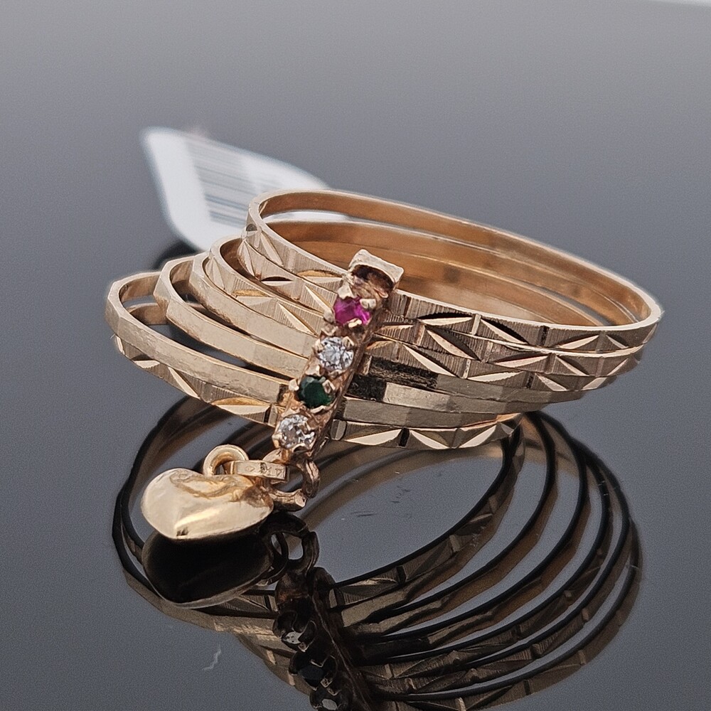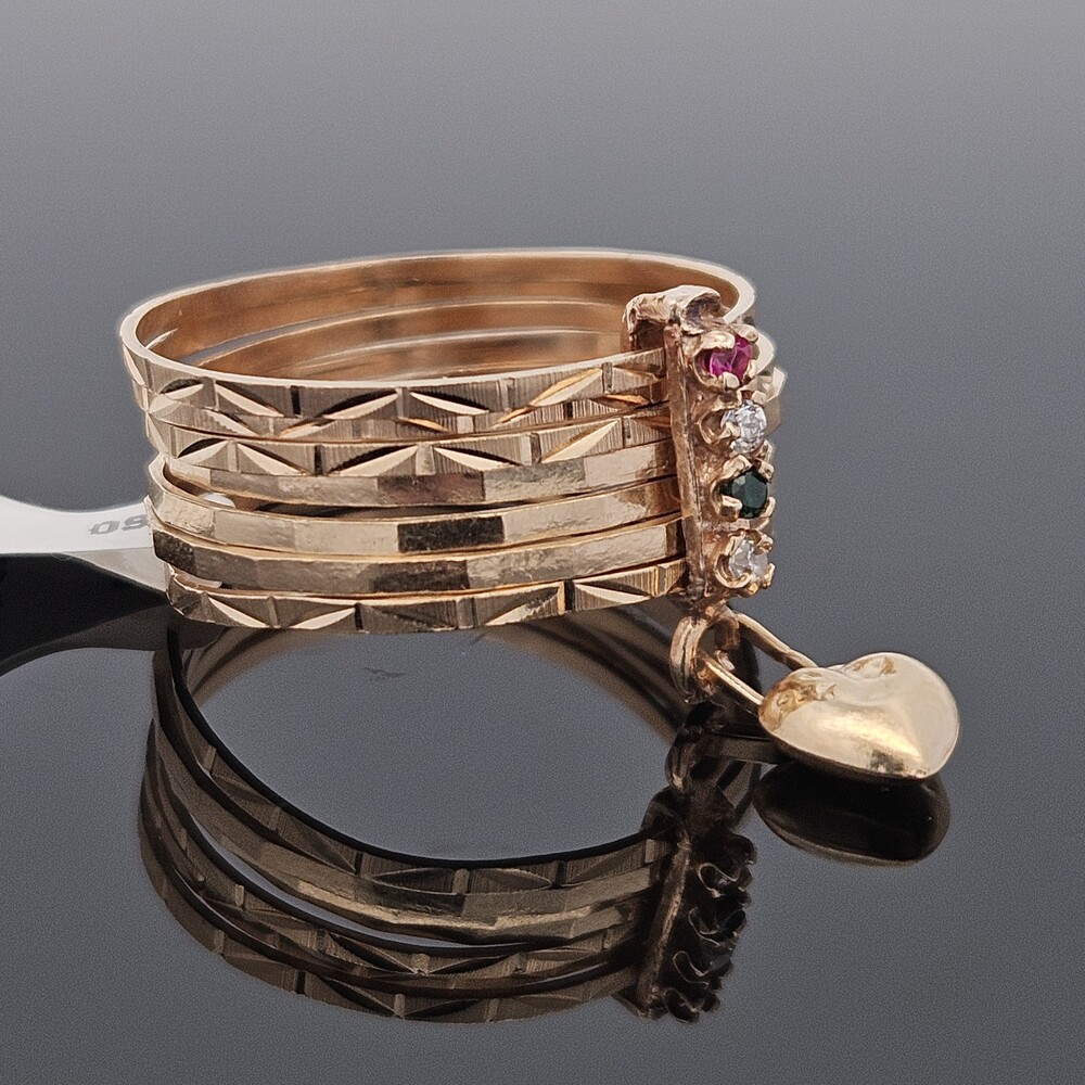 14K Yellow Gold Multi Band 7 Pc Ring with Emerald Ruby CZ Gold Slider Size 10.5