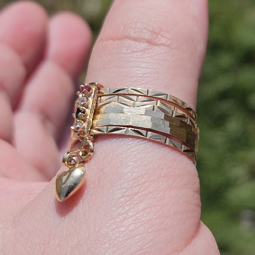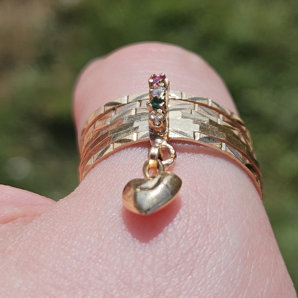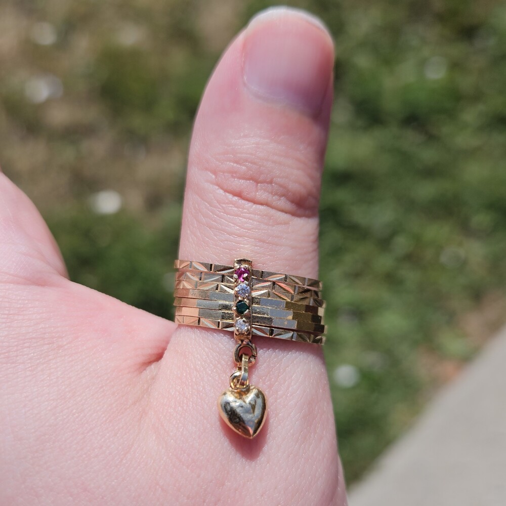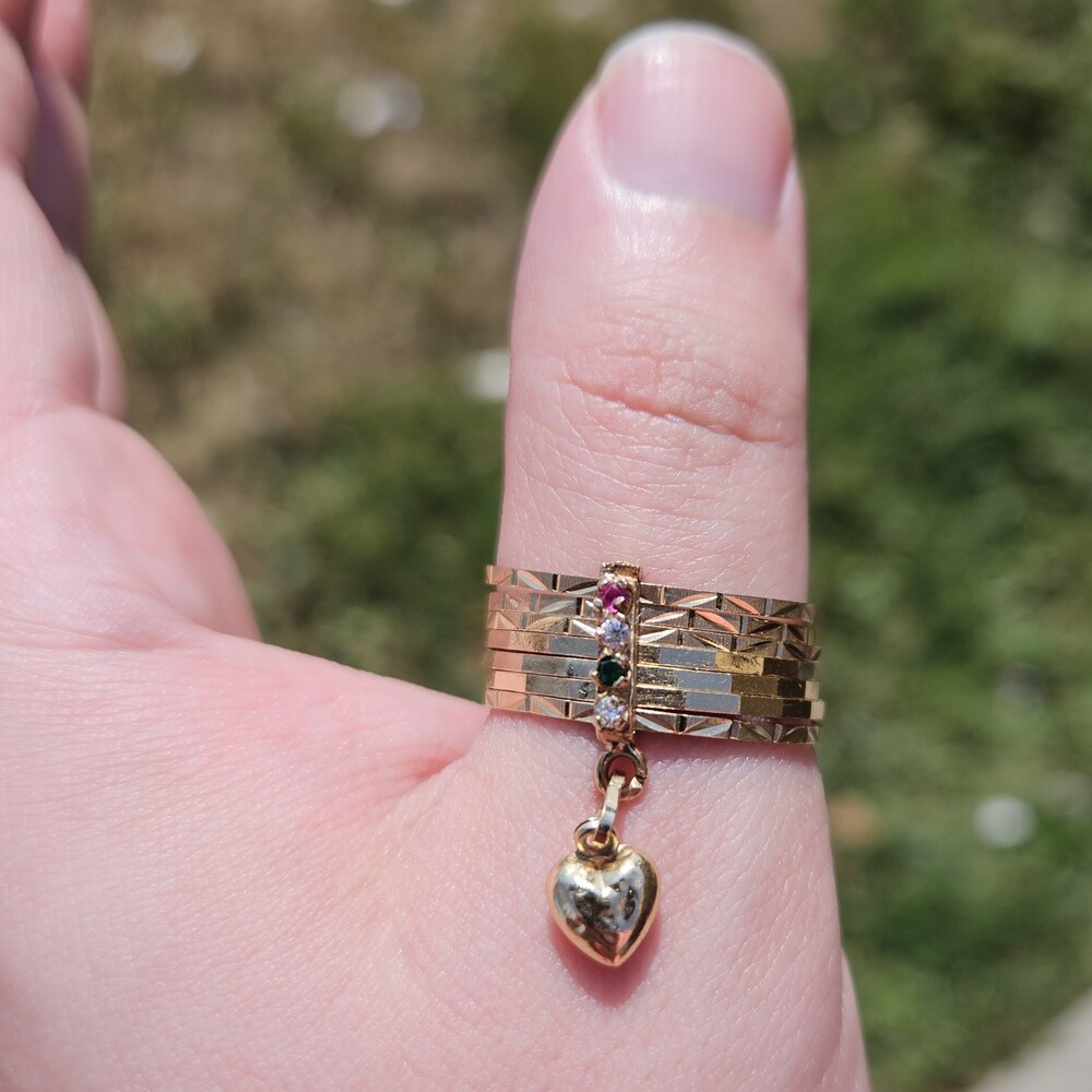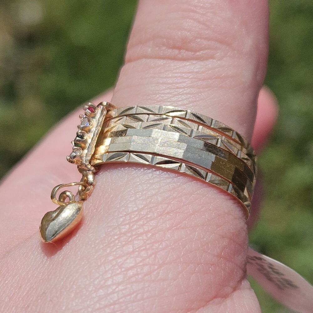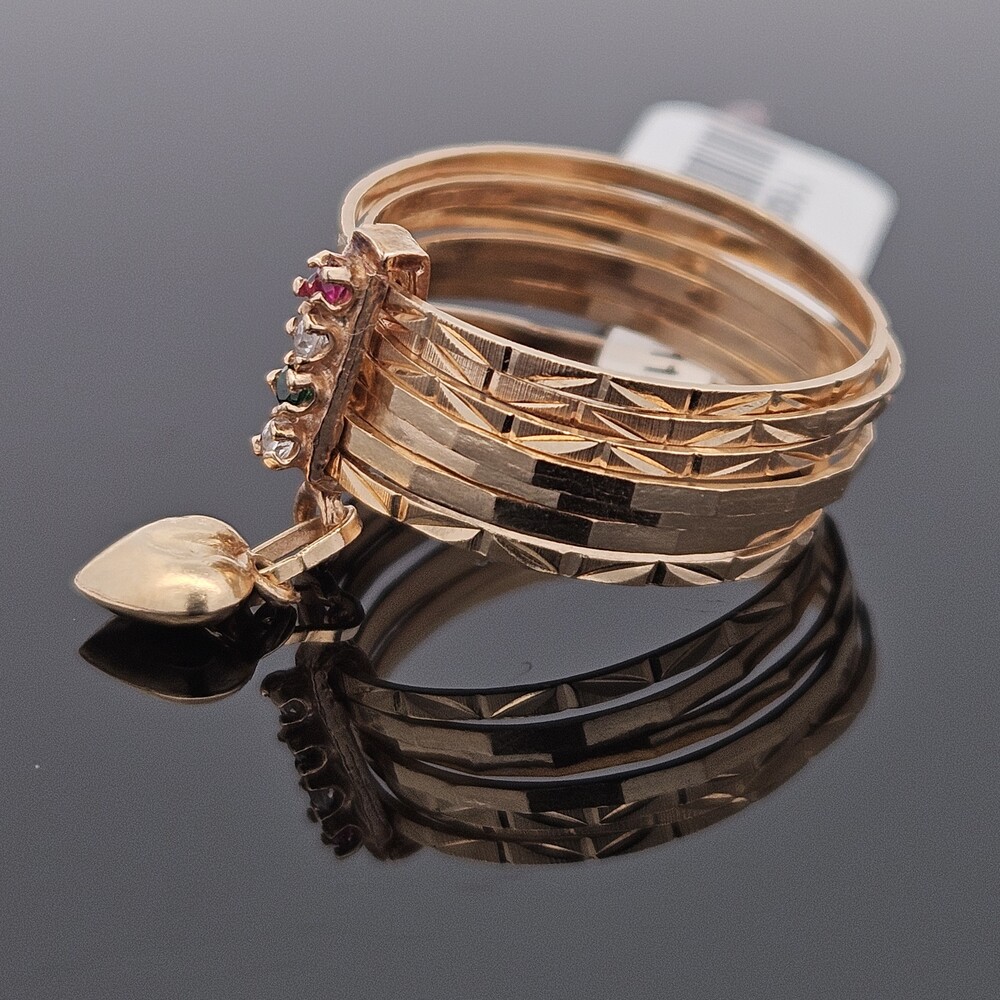 14K Yellow Gold Multi Band 7 Pc Ring with Emerald Ruby CZ Gold Slider Size 10.5