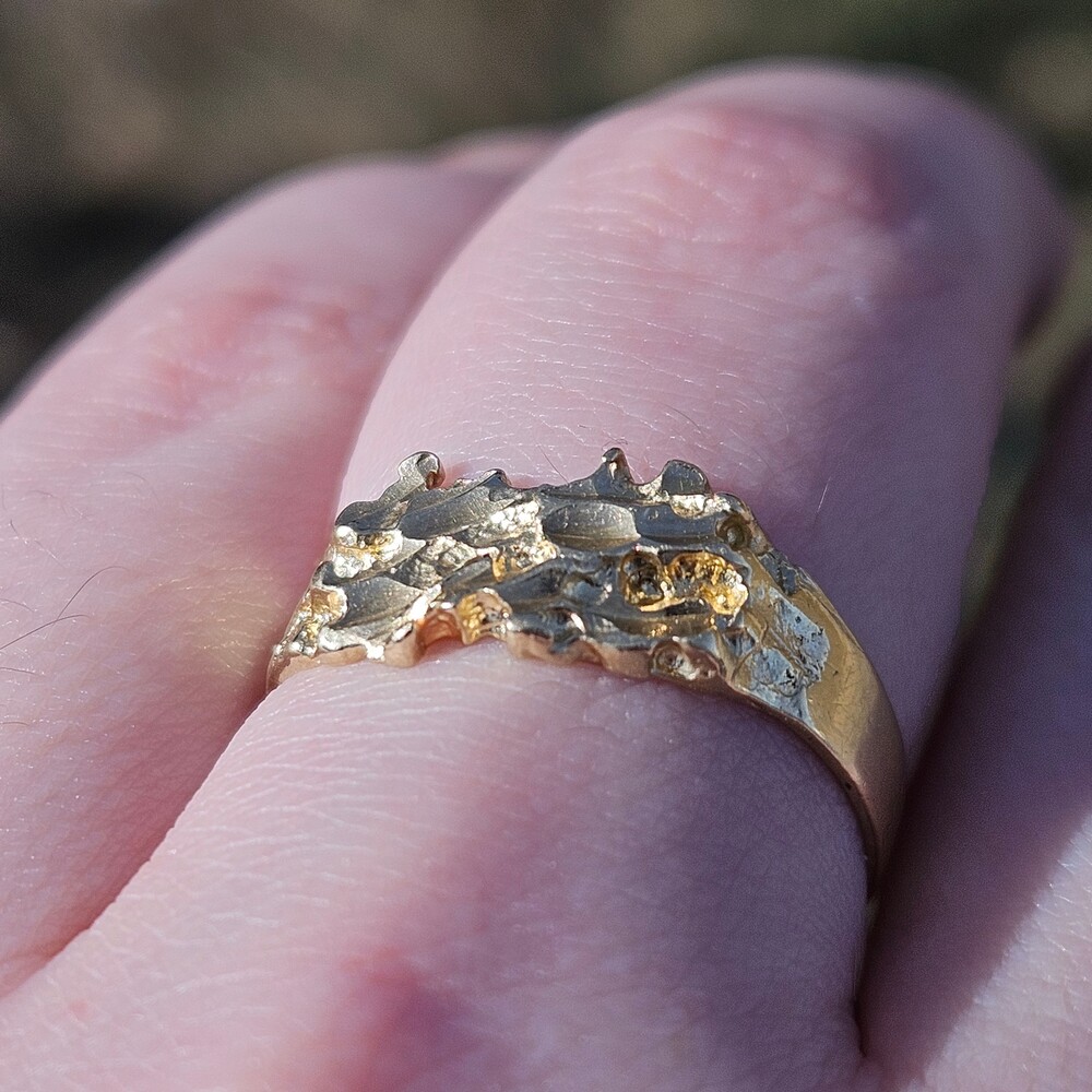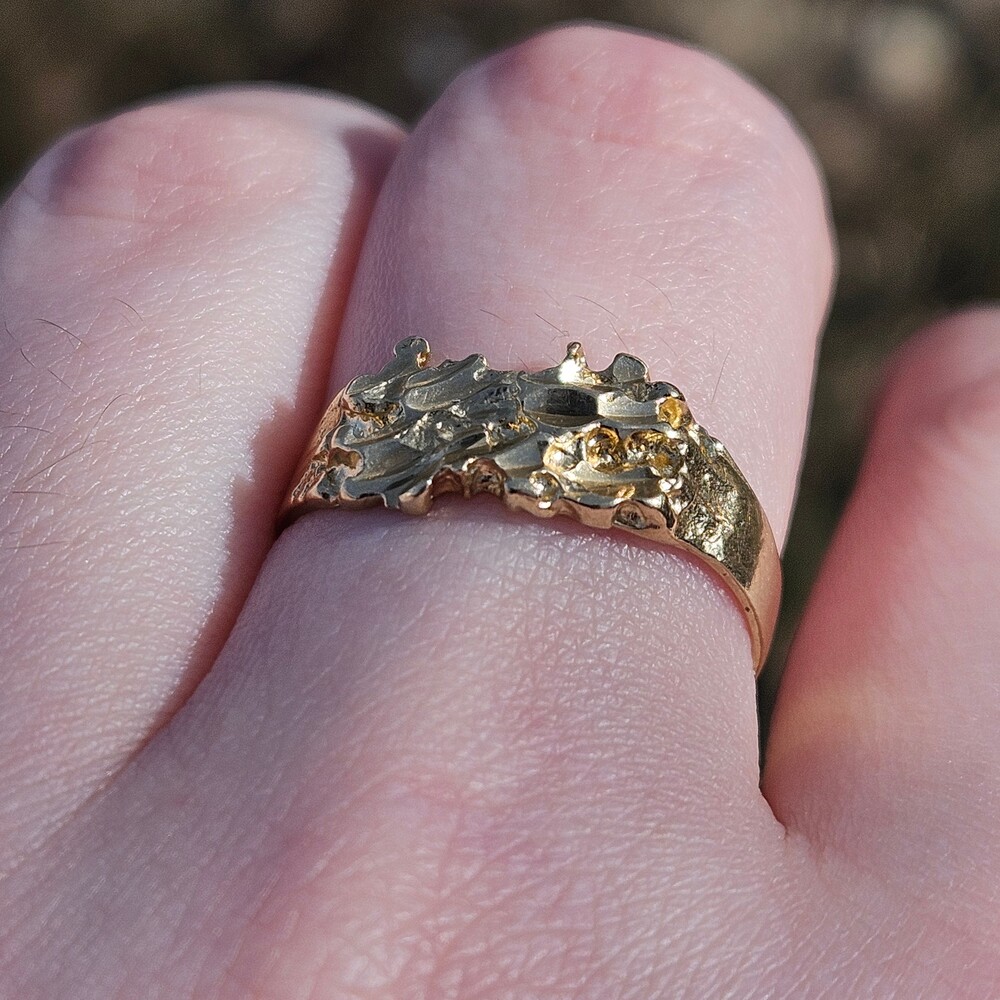 14K Yellow Gold Nugget Fashion Statement Ring Size 8.5
