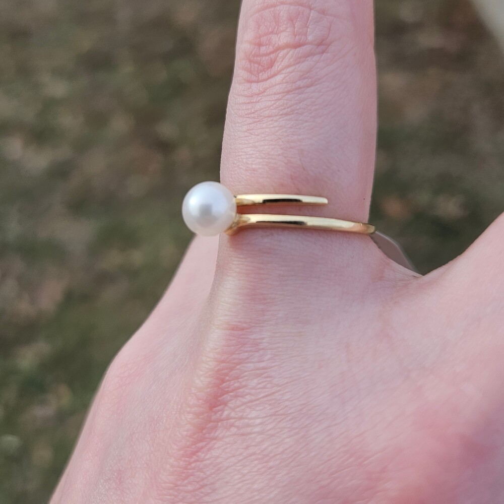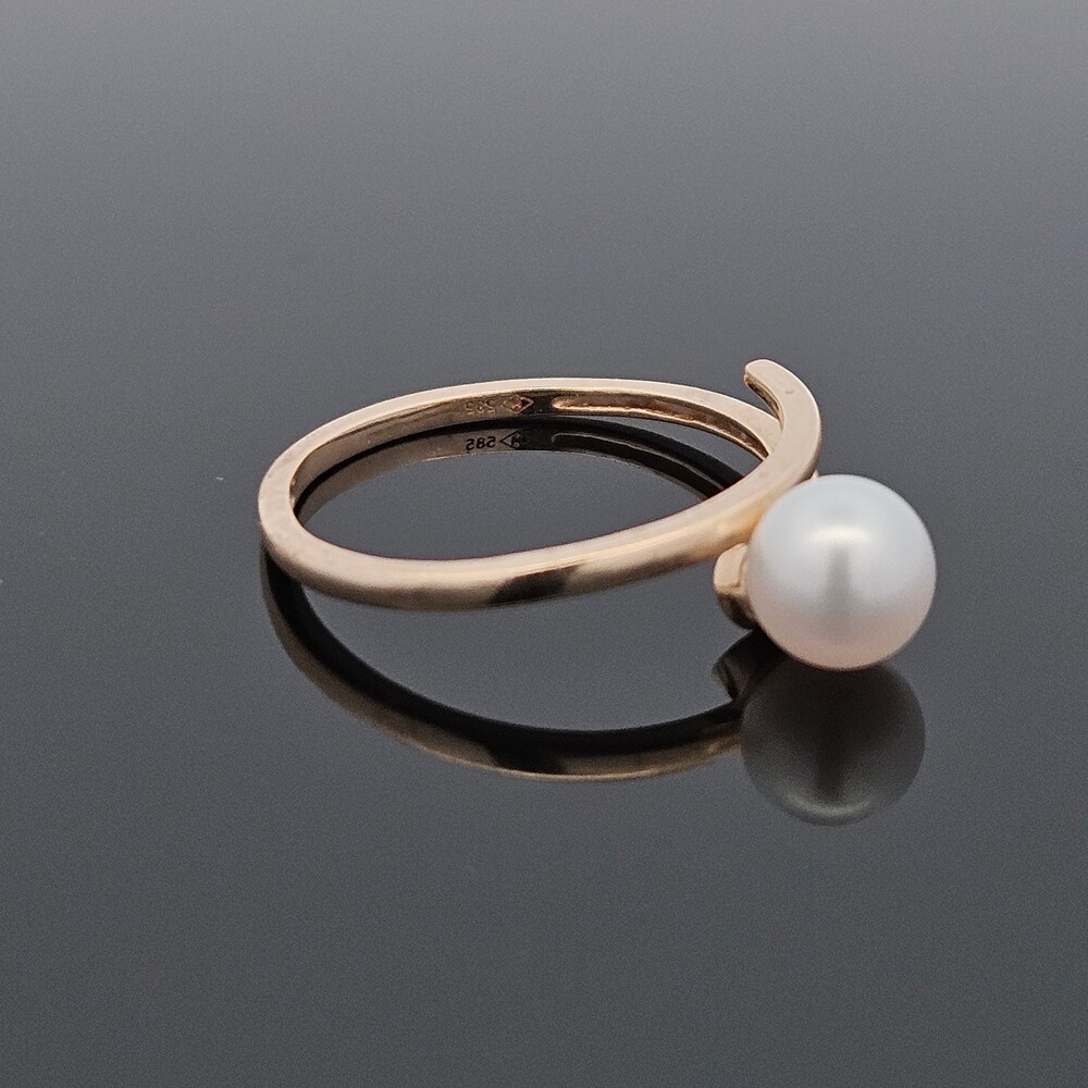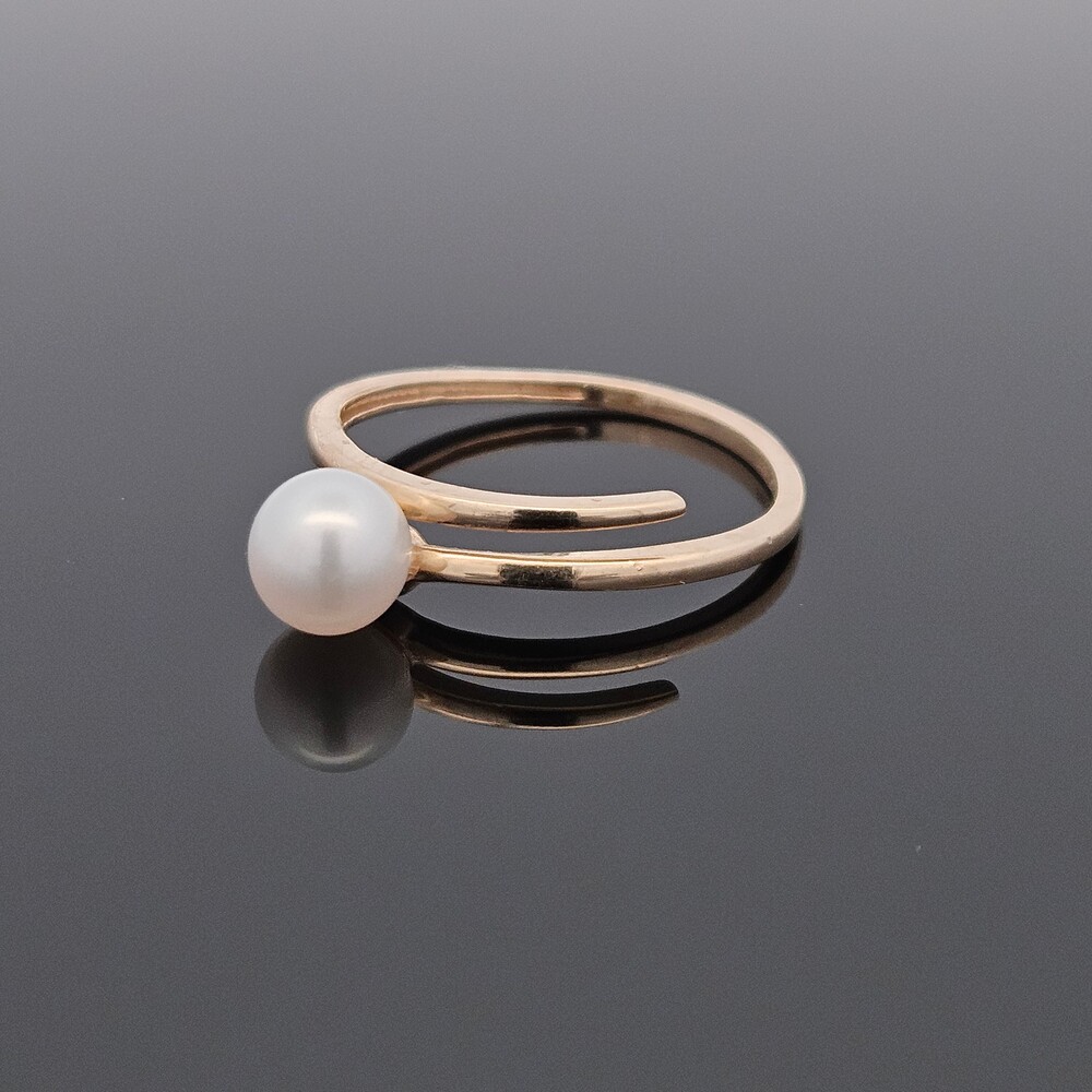 14K Yellow Gold Open Ended Bypass 6mm Pearl Solitaire Ring Size 7.25