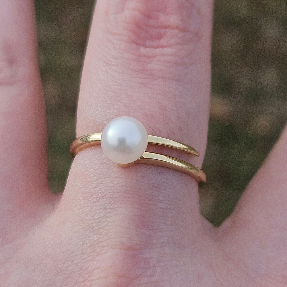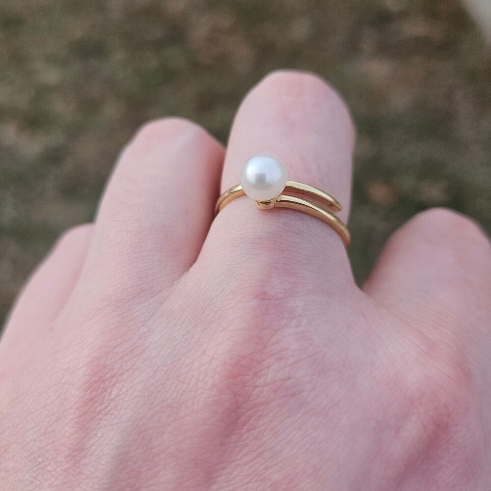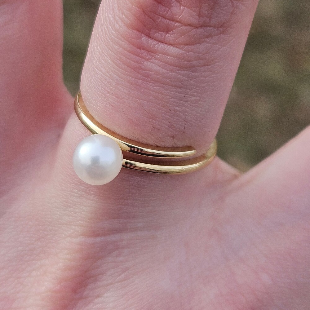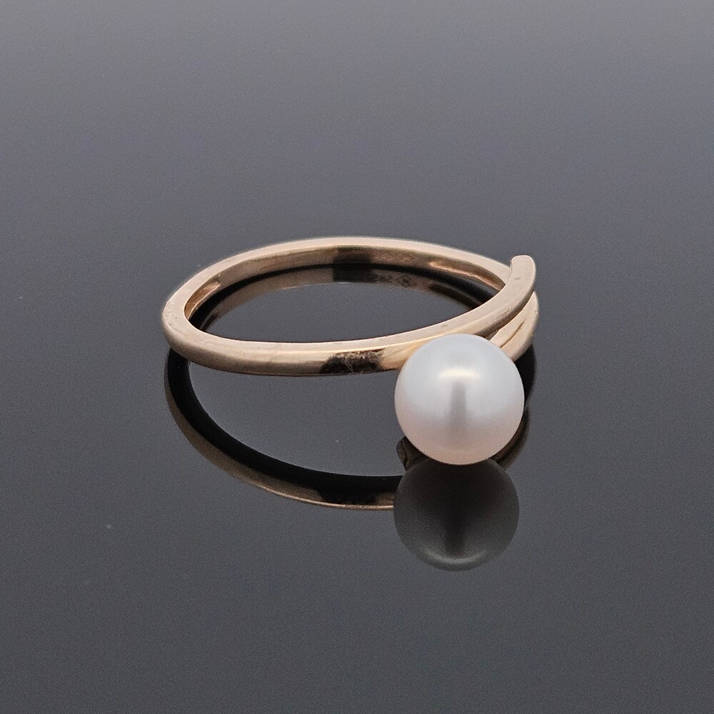 14K Yellow Gold Open Ended Bypass 6mm Pearl Solitaire Ring Size 7.25